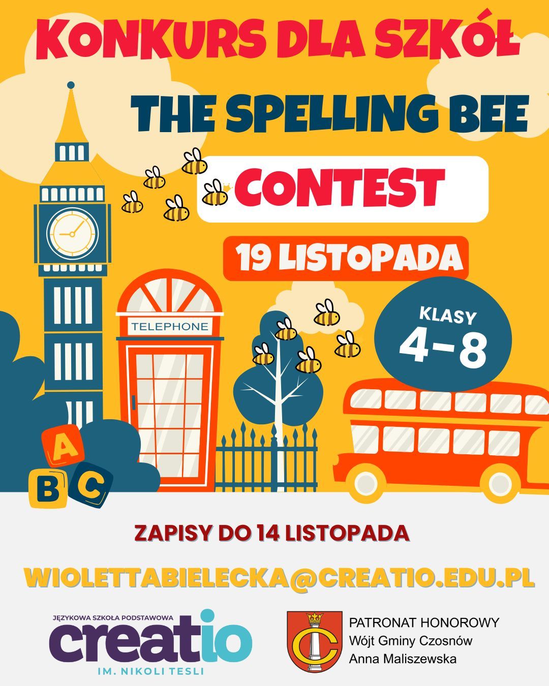 Językowa Szkoła Podstawowa „CREATIO” w Kaliszkach organizuje konkurs „THE SPELLING BEE” dla uczniów klas IV-VIII z terenu gminy Czosnów. Zawody odbędą się 19 XI 2025 r. w siedzibie szkoły. Zgłoszenia jednego reprezentanta z każdej klasy przyjmowane są do 14 XI 2025 r. pod adresem e-mail: wiolettabielecka@creatio.edu.pl.
