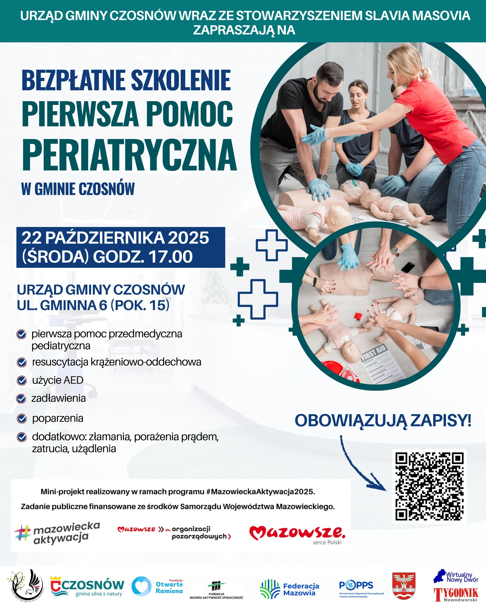 Dla opiekunów, nauczycieli i rodziców z powiatu nowodworskiego to szansa na zdobycie umiejętności, które mogą ocalić życie dziecka. Stowarzyszenie Slavia Masovia wraz z Leszkiem Gizińskim organizują cykl specjalistycznych szkoleń z pierwszej pomocy pediatrycznej.