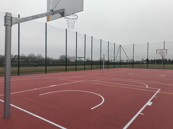 Zakres inwestycji obejmował wykonanie boiska wyposażonego w piłkochwyty, system drenażu francuskiego oraz trwałą nawierzchnię poliuretanową EPDM, ułożoną na solidnej podbudowie z kruszywa. Zastosowane rozwiązania techniczne mają zapewnić bezpieczeństwo użytkowników, odporność na intensywną eksploatację oraz możliwość korzystania z obiektu przez większą część roku.
