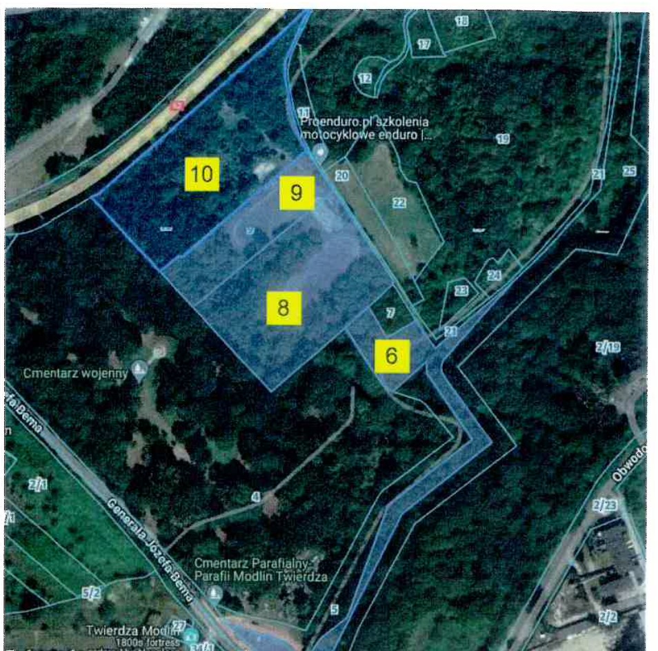 Załączona do interpelacji mapa (s. 3 dokumentu) przedstawiała działki 10, 9, 8 i 6 obręb 0004 jako teren planowanego cmentarza komunalnego. Na kolejnej stronie widniało oznaczenie działki nr 4 jako terenu cmentarza wojennego. Radny pytał wtedy, czy miasto planuje budowę nowego cmentarza komunalnego na tym obszarze i jakiej współpracy z władzami kościelnymi wymaga taki projekt.