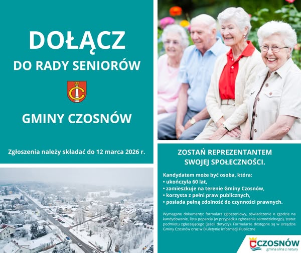 Nabór trwa do 12 III 2026 r. Zgłoszenia należy składać w Urzędzie Gminy Czosnów przy ul. Gminnej 6. Formularze dostępne są w urzędzie oraz w Biuletynie Informacji Publicznej (BIP). Wójt zachęca nie tylko do osobistego udziału, ale też do polecania tej roli innym – osobom, które mogą być reprezentantami swojego pokolenia.