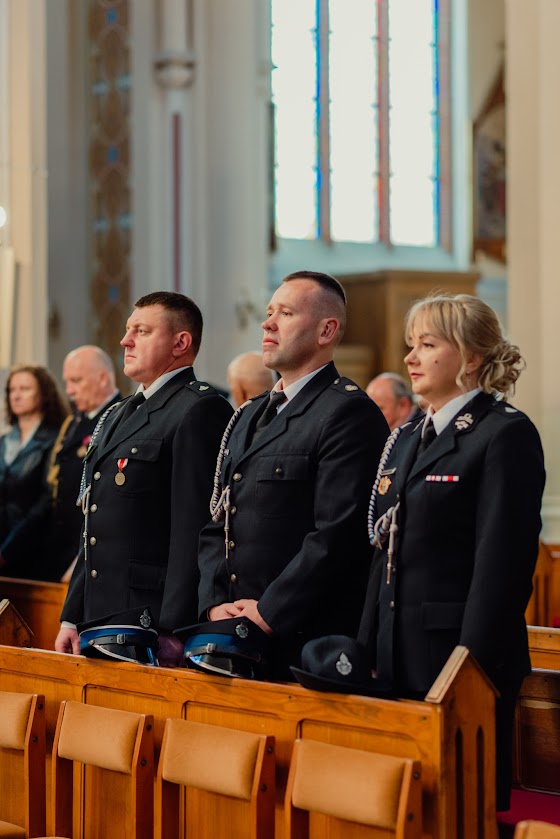 The day began with a Mass at St. Adalbert’s Church in Nasielsk, offered for the intention of firefighters by Canon Szczepan Bugaj, Pastor of the Parish of St. Adalbert in Nasielsk, and Canon Tomasz Cymerman, Pastor of the Parish of St. Anne in Pomiechowo. Afterwards, firefighters and invited guests proceeded to the square by the OSP Psucin station. The ceremony was commanded by firefighter Wojciech Dobrowolski from OSP Jackowo, who submitted a report of readiness to firefighter Mariusz Torbus, Board Member of the Provincial Division of ZOSP RP for the Mazovian Voivodeship.
