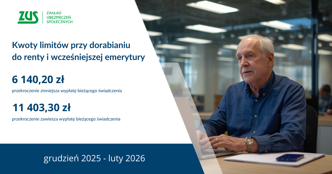Nowe limity będą obowiązywać od 1 XII 2025 r. do końca lutego 2026 r. Szczegółowe informacje ZUS udostępnia na stronie internetowej oraz w swoich placówkach.