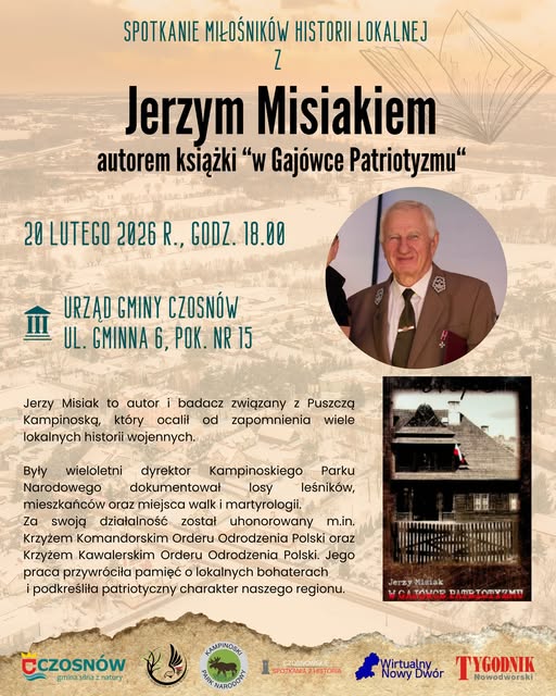 Już 20 lutego (piątek) w siedzibie Gmina Czosnów odbędzie się spotkanie z Jerzym Misiakiem – emerytowanym dyrektorem Kampinoski Park Narodowy oraz autorem książki „W Gajówce Patriotyzmu”.
