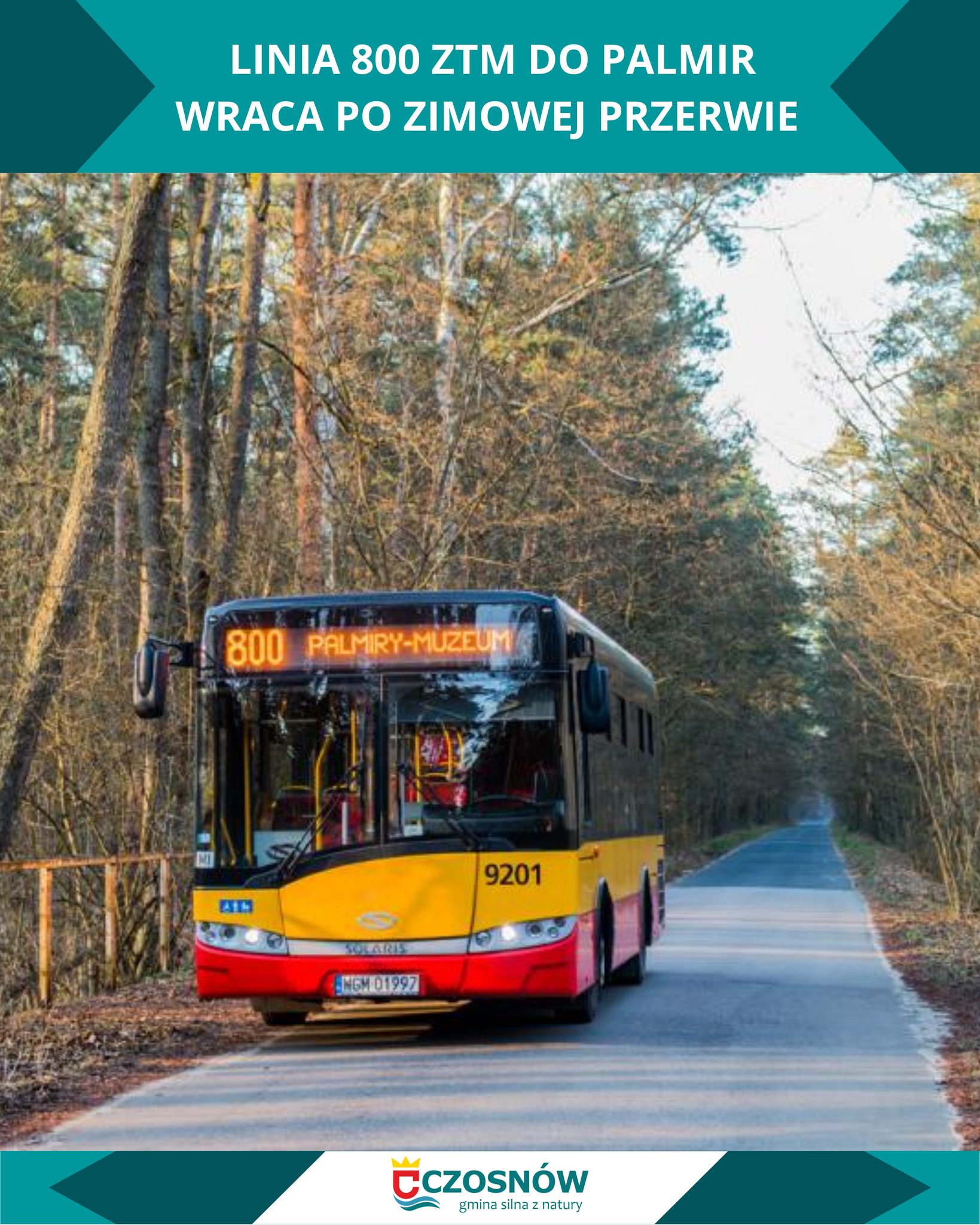 Od 11 III autobusy linii 800 ponownie rozpoczęły kursowanie po przerwie zimowej. To istotna informacja zarówno dla mieszkańców Palmir, jak i dla turystów planujących wizytę w jednym z najważniejszych miejsc pamięci oraz na terenach Kampinoskiego Parku Narodowego.