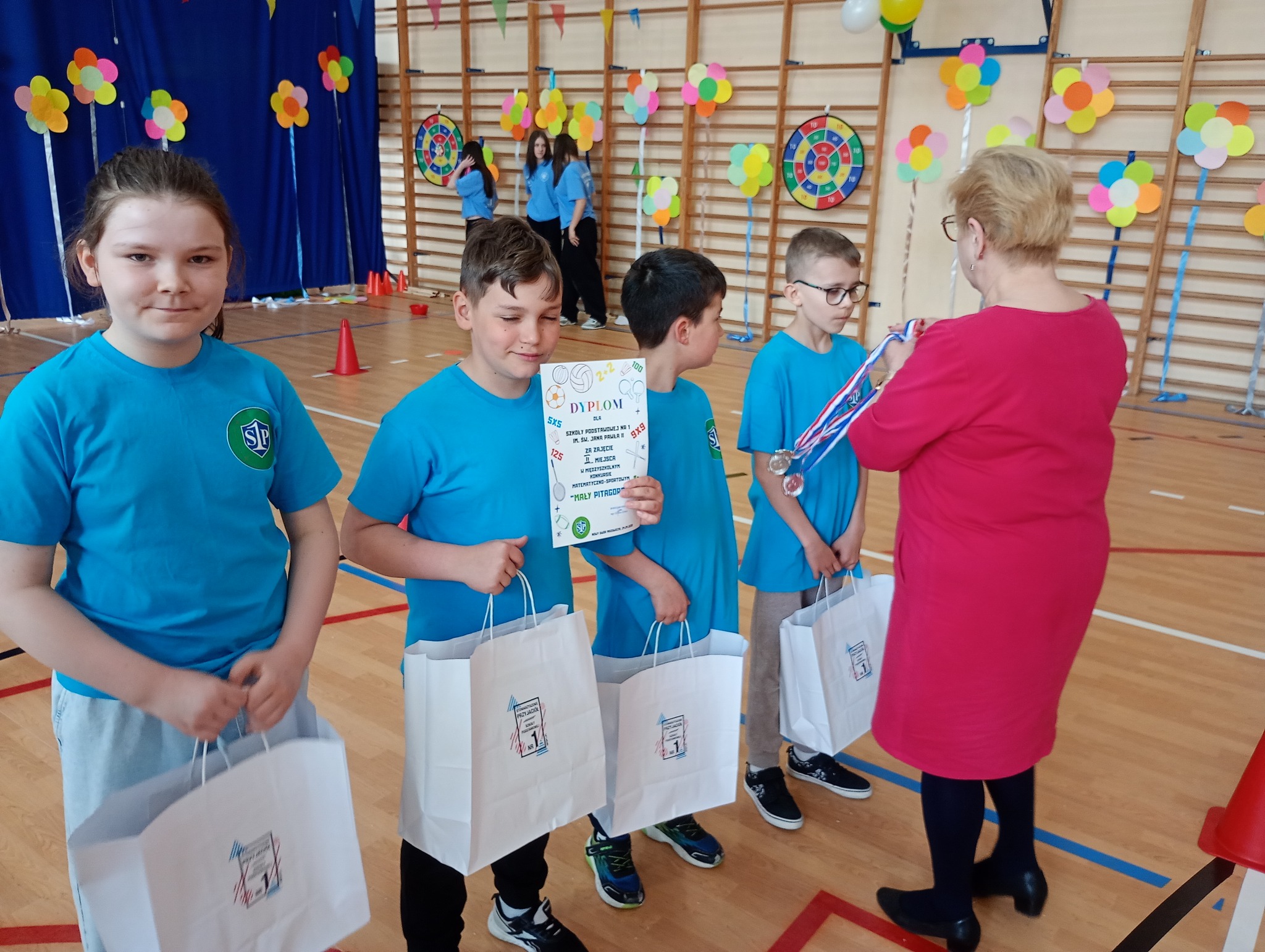 Uczniowie klas III zmierzyli się w nietypowej rywalizacji łączącej naukę z ruchem. 24 IV 2026 r. odbyła się II edycja międzyszkolnego konkursu matematyczno-sportowego „Mały Pitagoras”, który po raz kolejny przyciągnął młodych uczestników do wspólnej zabawy i sprawdzianu umiejętności.