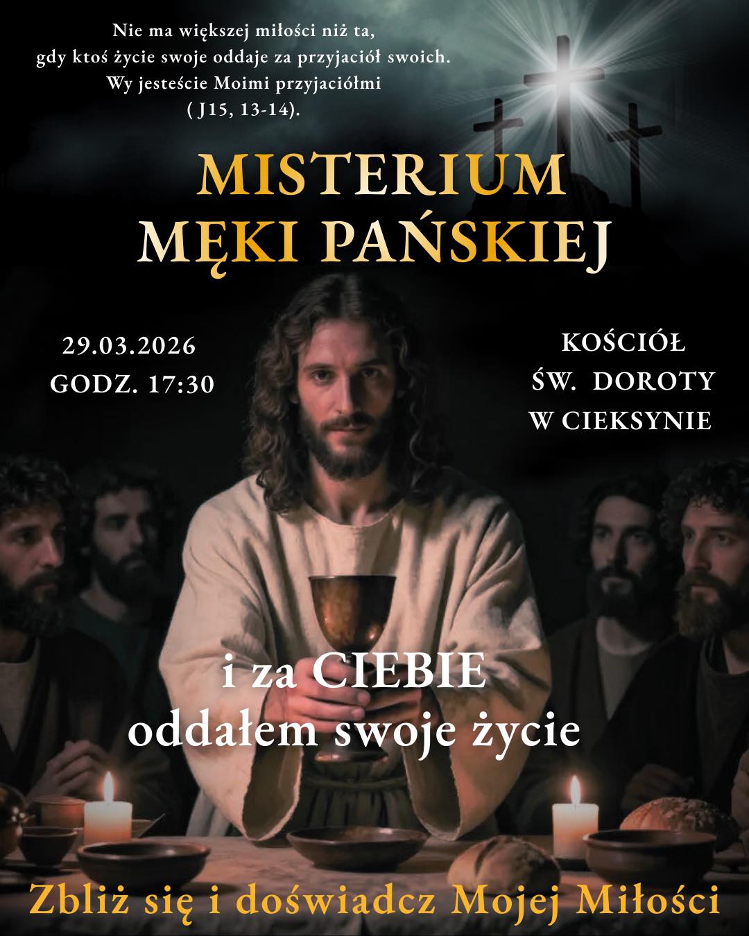 On March 29, 2026, a Passion play will take place at St. Dorothy’s Church in Cieksyn. The event is scheduled for 5:30 p.m. and has a religious and reflective character. The organizers invite all faithful who wish to experience this time in contemplation.