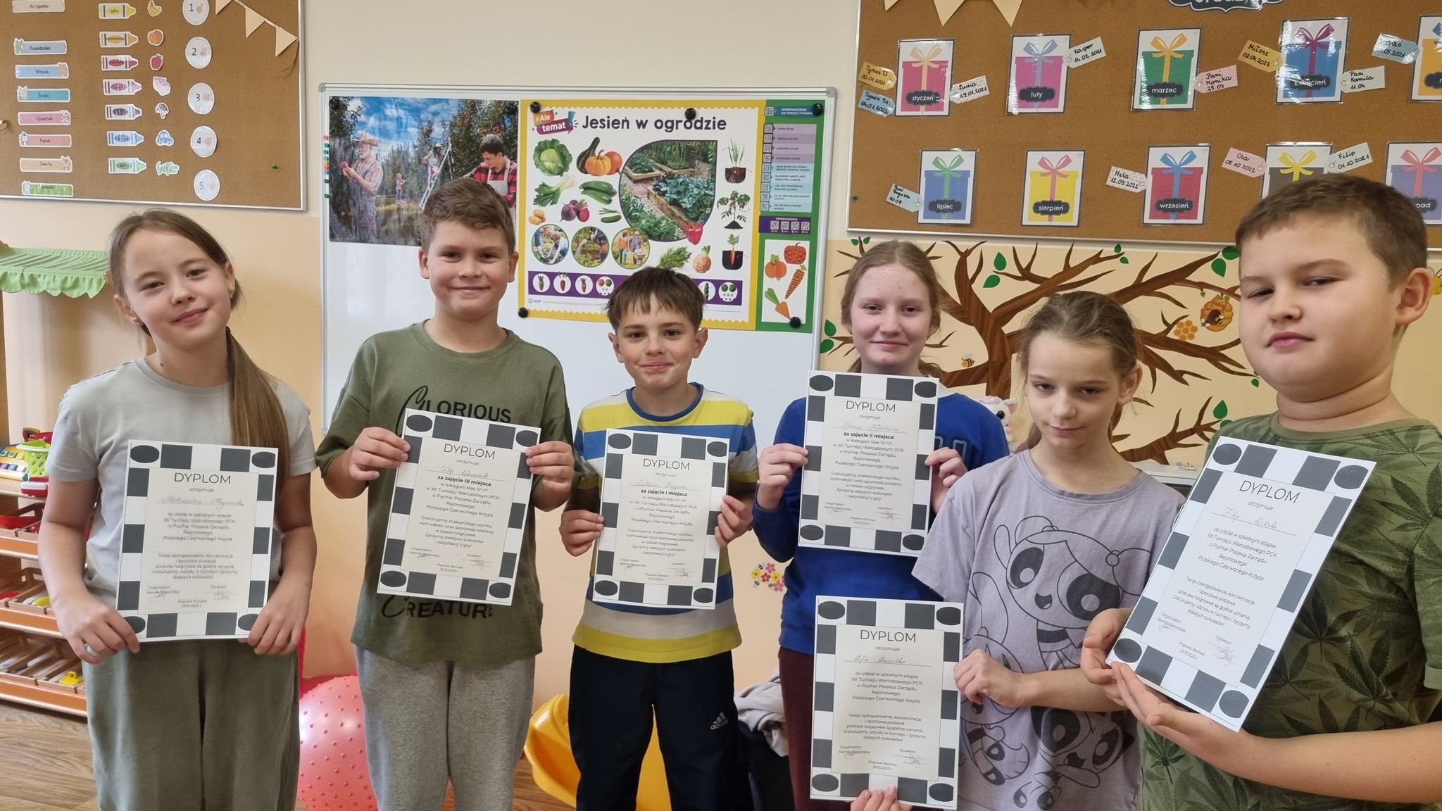 Wszyscy uczestnicy otrzymali pamiątkowe dyplomy. Zwycięzcy I i II miejsca będą reprezentować szkołę w etapie rejonowym w Nowym Dworze Mazowieckim.