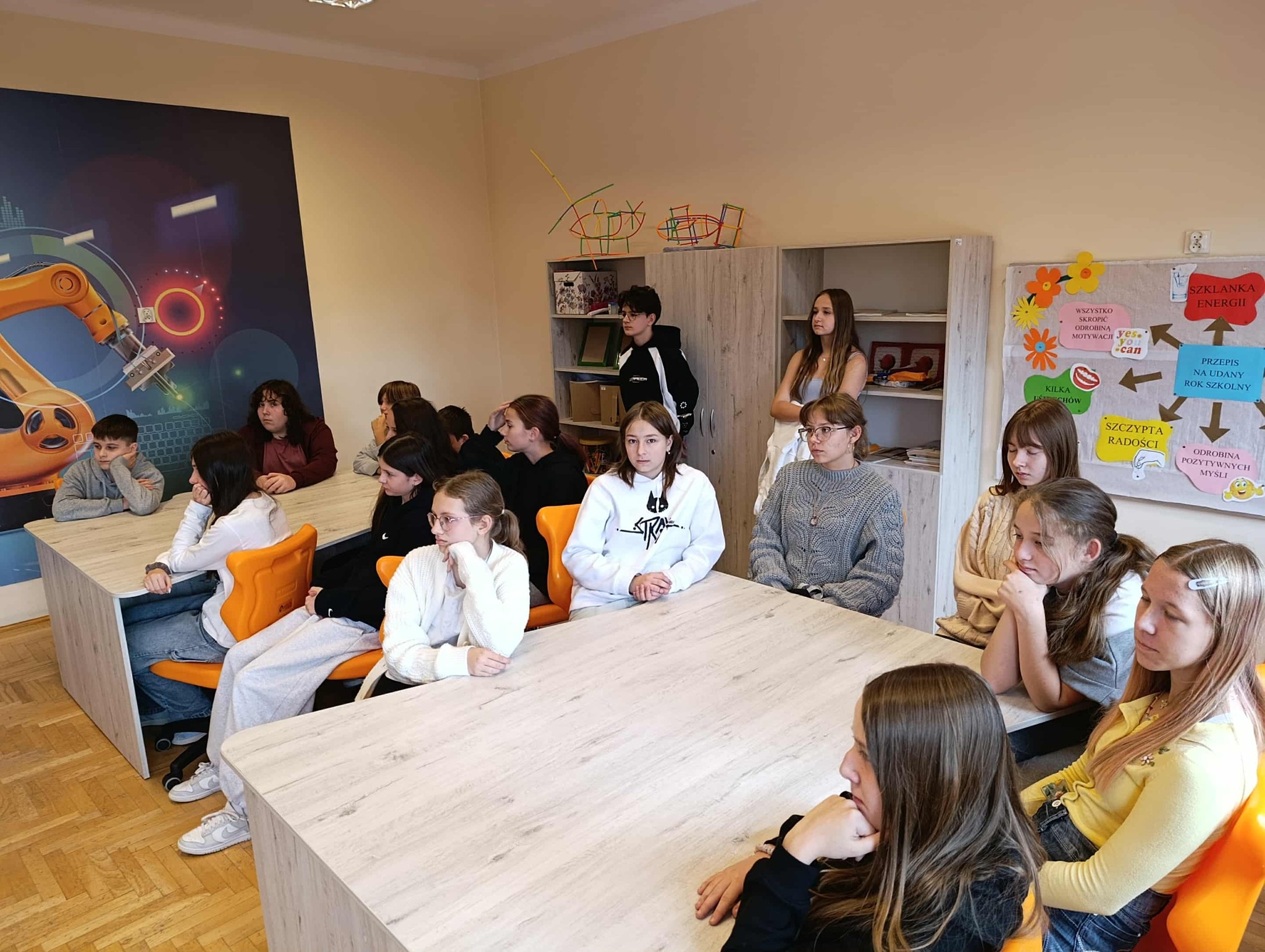 Officer Kamil Maciejko, the community police officer, met with 7th and 8th-grade students on October 7, 2025. During the lecture, he discussed the phenomenon of cyberbullying in its various forms – from offensive comments and online ridicule, to distributing compromising content, and taking and sharing photos without the consent of the victim.