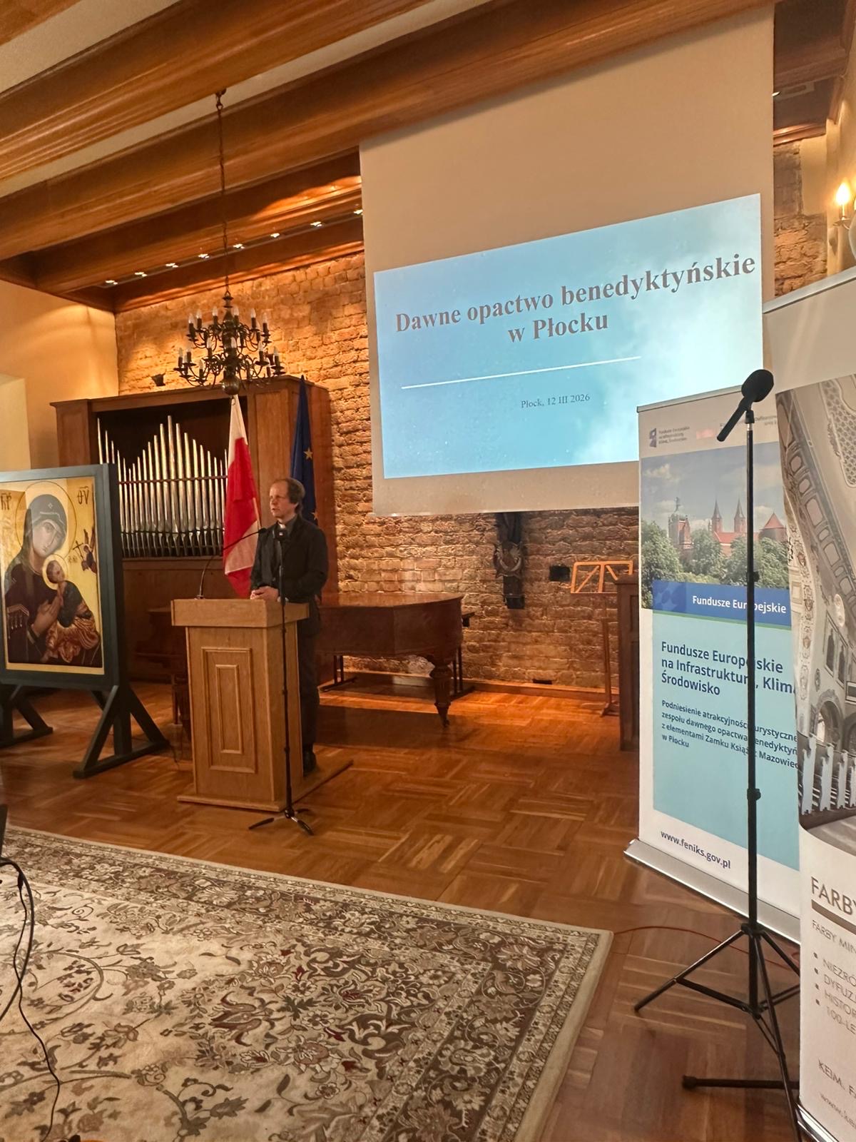 On March 12, 2026, press conference inaugurating the project titled “Enhancing the Tourist Attractiveness of the Former Benedictine Abbey Complex with Elements of the Dukes of Mazovia Castle in Płock” took place in the Baroque Hall of the former Benedictine Abbey. The project is implemented by the Diocese of Płock and co-financed by the European Union under the program European Funds for Infrastructure, Climate, Environment 2021–2027 (FEnIKS), action FENX.07.01 Infrastructure of culture and cultural tourism.