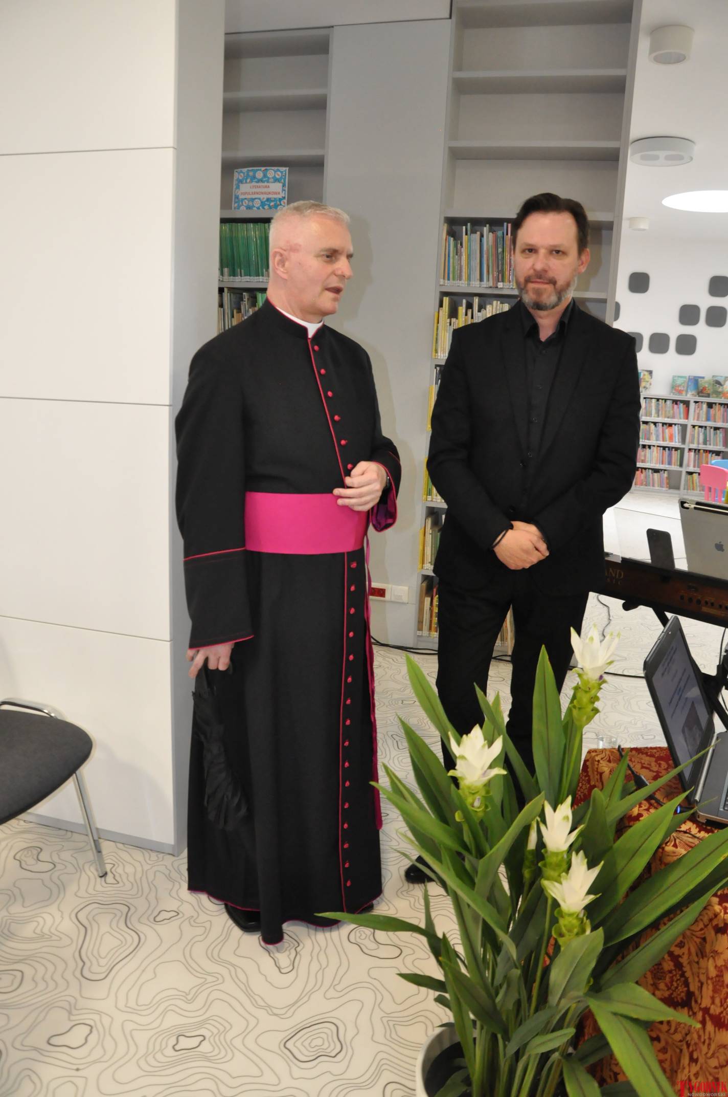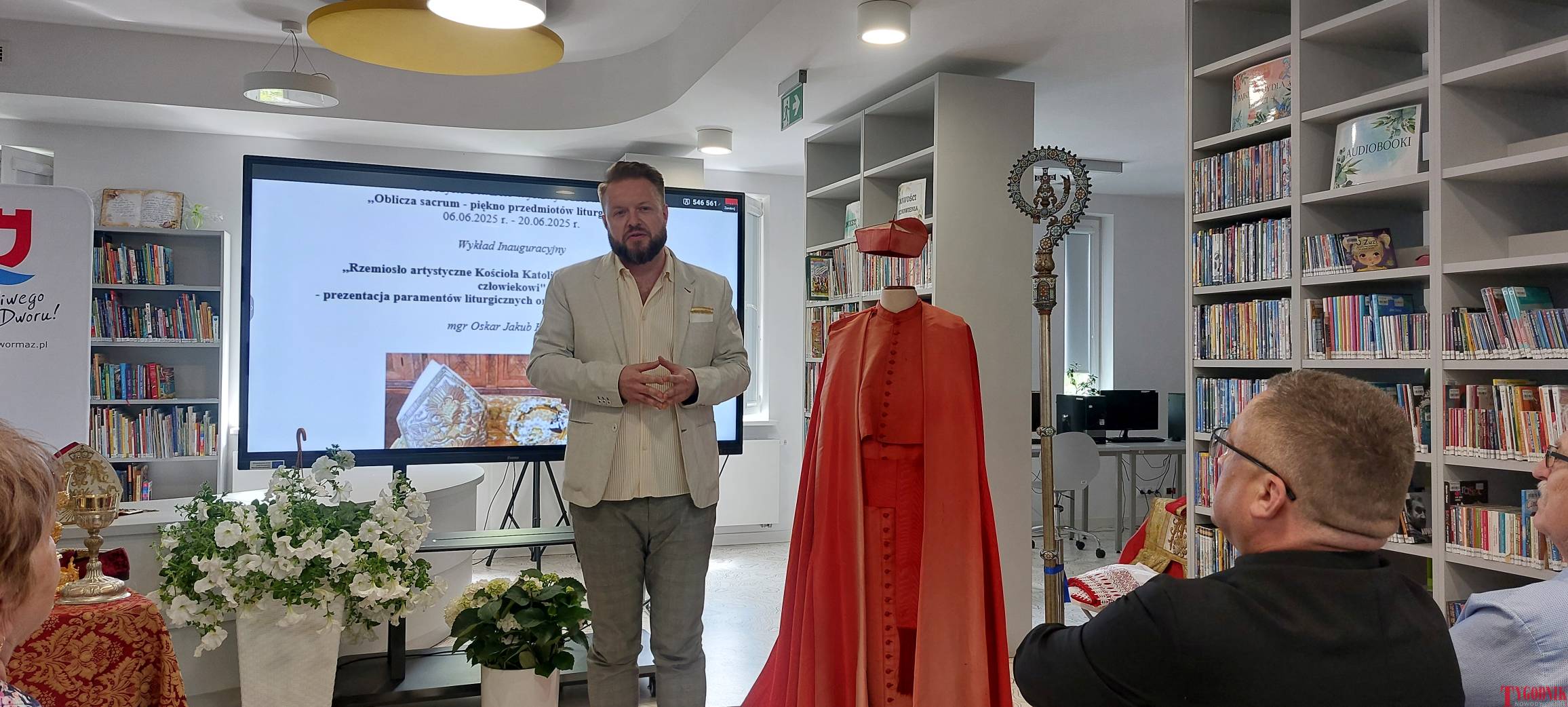 The event opened with remarks from library director Ewa Borkowska and featured an inaugural lecture by the exhibition’s curator, Mr. Oskar Jakub Halkiew, titled “The Artistic Craft of the Catholic Church in Service to God and Man.” His lecture provided historical and theological insight into the sacred objects on display.