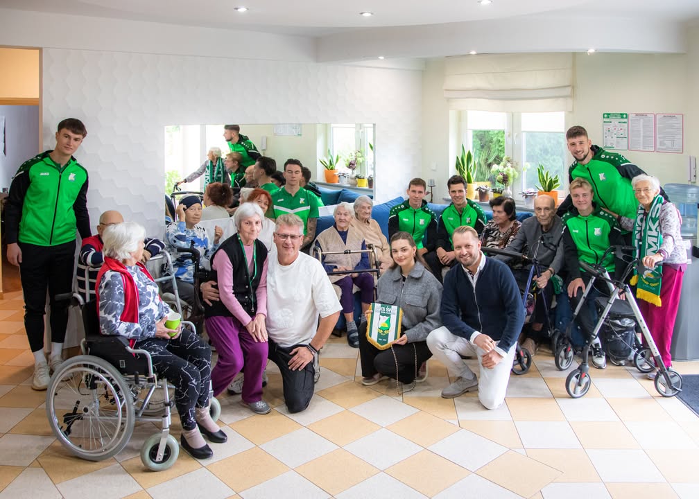 Football players from MKS Świt Nowy Dwór Mazowiecki visited the residents of the Marion Care Home in Trębki Stare. On the occasion of the International Day of Older Persons, the players brought small gifts and good energy to the residents.