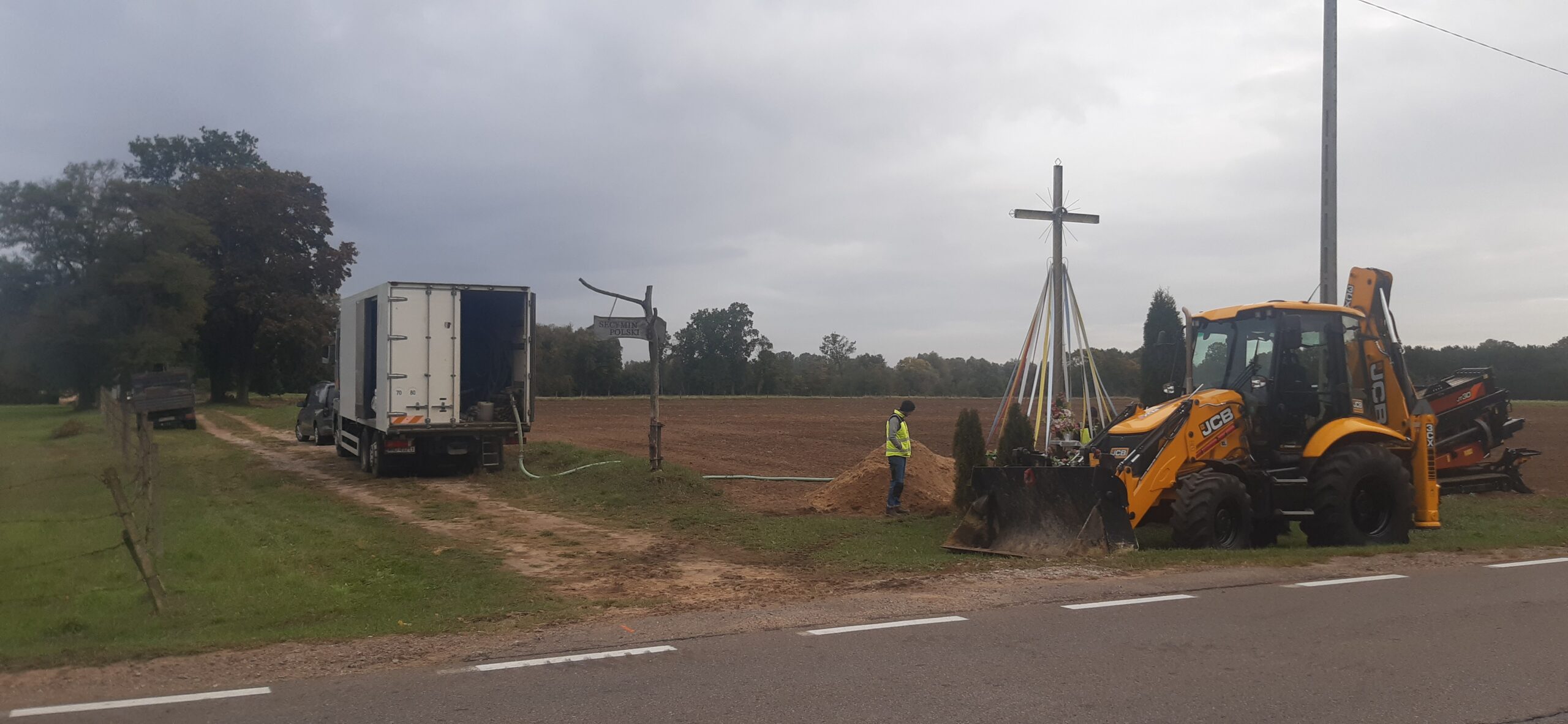 The investment covered several towns. Sewage systems were built in Stanisławów, Nowe Grochale, and Nowe Gniewniewice, while water mains were installed in Krubiczew, Stare Grochale, Secymin Polski, and Nowiny. The completion of the task is evidenced by characteristic red and blue hydrants and inspection chambers.