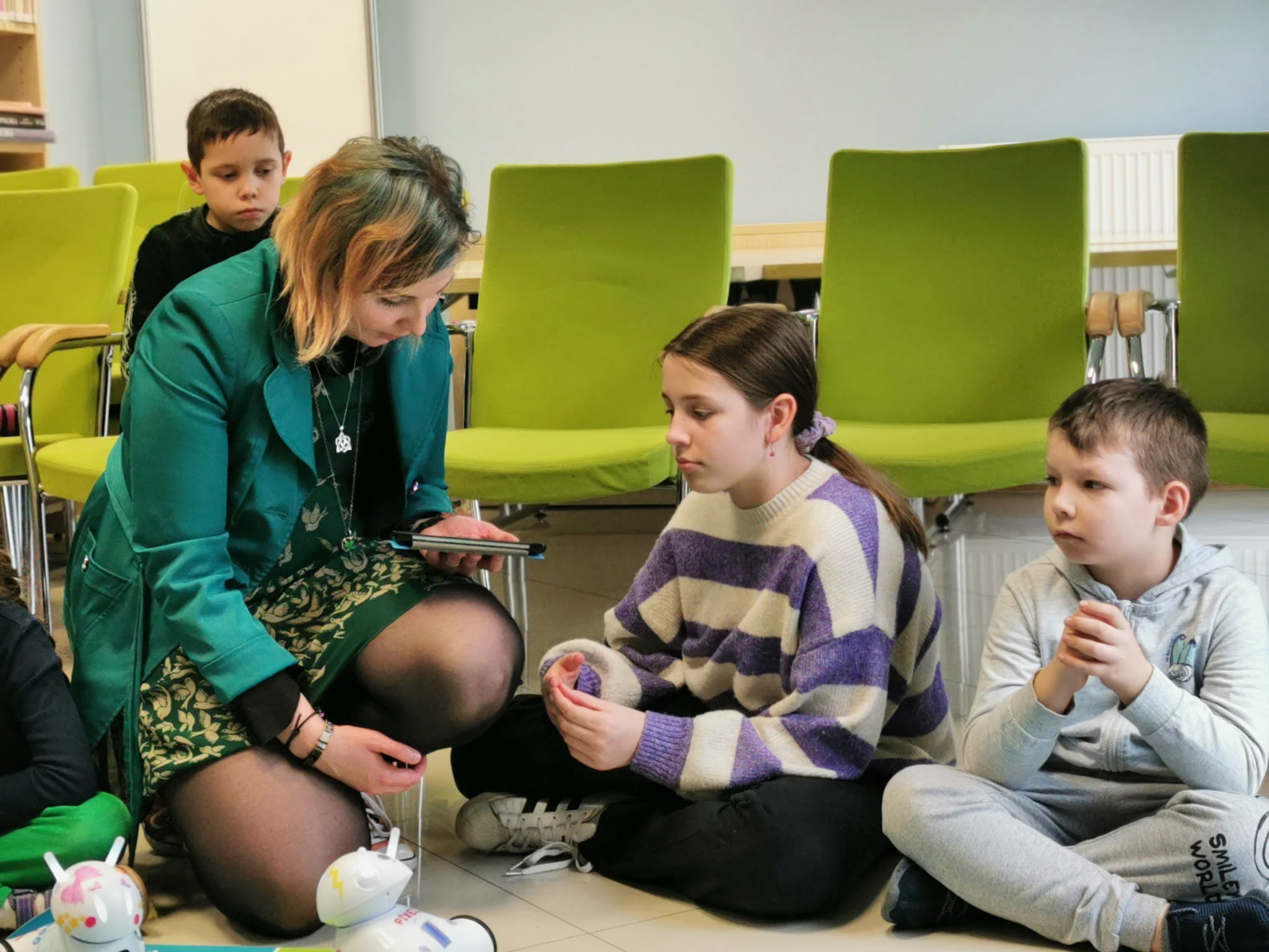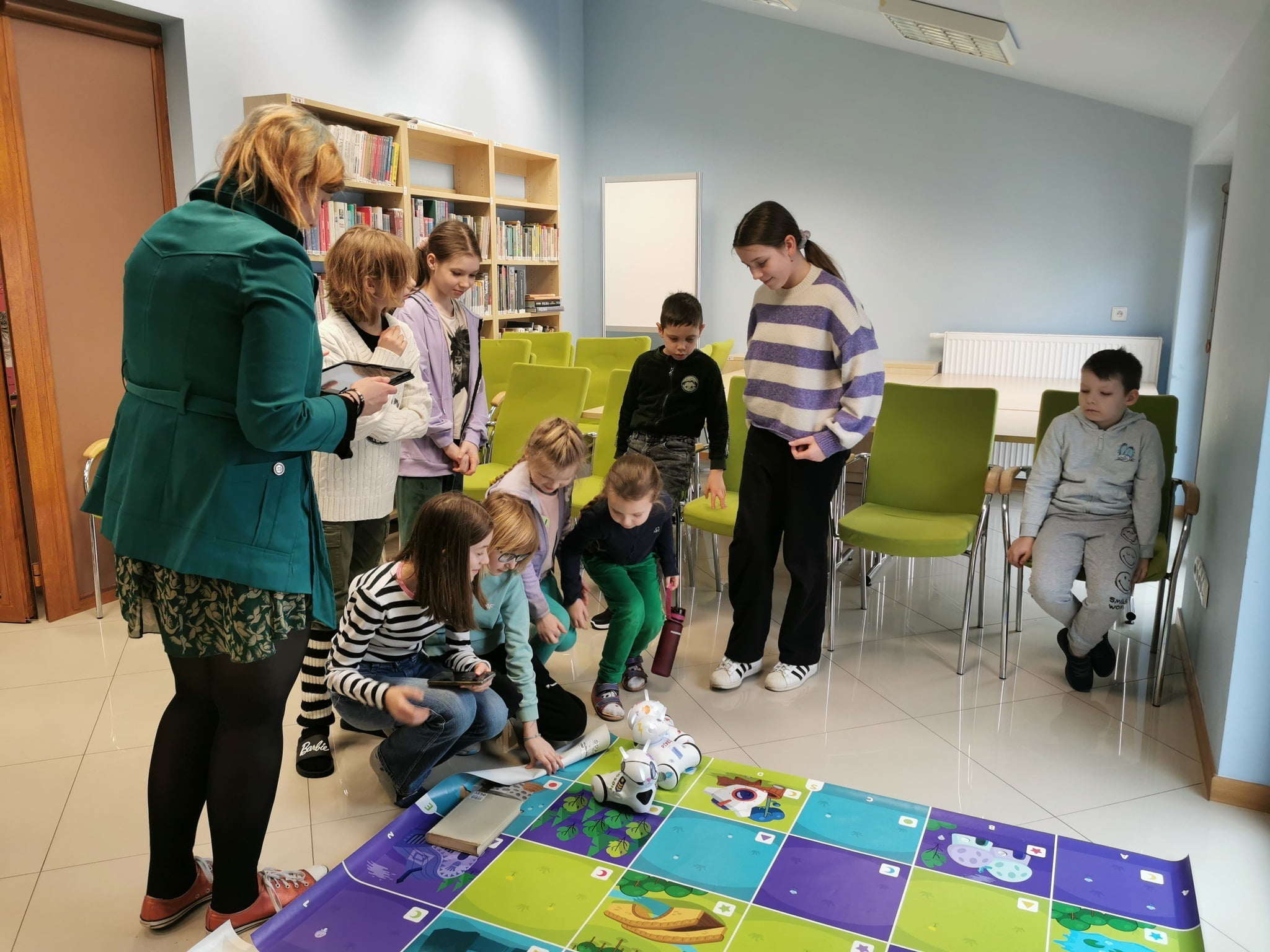 Zajęcia „Zauroczeni kodowaniem” rozpoczęły i później zakończyły tegoroczną przygodę z feriami. Prowadząca zajęcia Kalina Skudniewska starała się przekazać najważniejsze informacje dotyczące kodowania oraz przydatne definicje i narzędzia, które są niezbędne w późniejszej pracy programisty. Dzieci miały też możliwość przekonać się na czym polega kodowanie sterując roboty za pomocą tabletów.