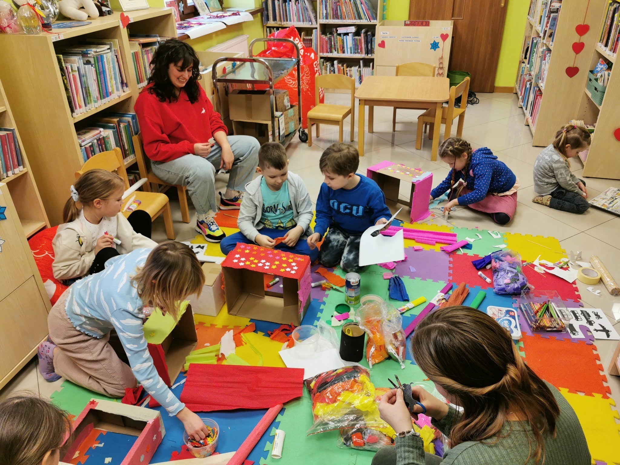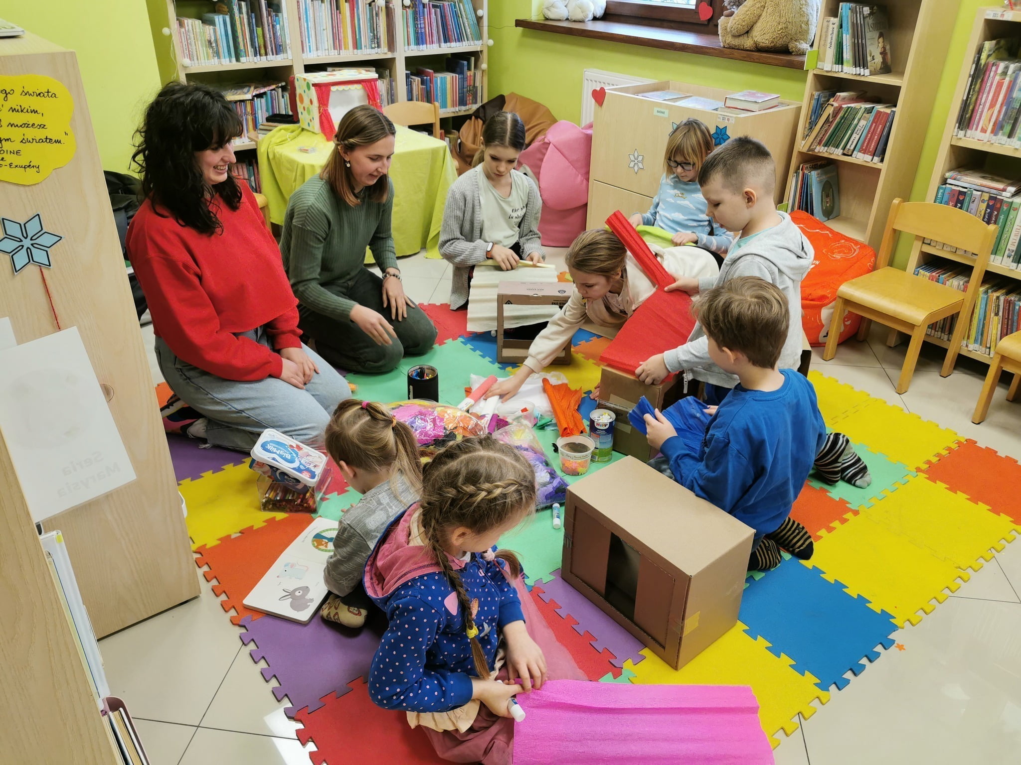 W czasie pierwszego tygodnia ferii zimowych (13 – 17 lutego 2023r.) wszystkie chętne dzieci mogły uczestniczyć z bezpłatnych zajęciach organizowanych przez pracowników pomiechowskiej biblioteki oraz wolontariuszki Europejskiego Korpusu Solidarności – Julii Ripper i Leonor Guise Carvalho, która na co dzień pracuje w Gminnym Ośrodku Kultury w Pomiechówku