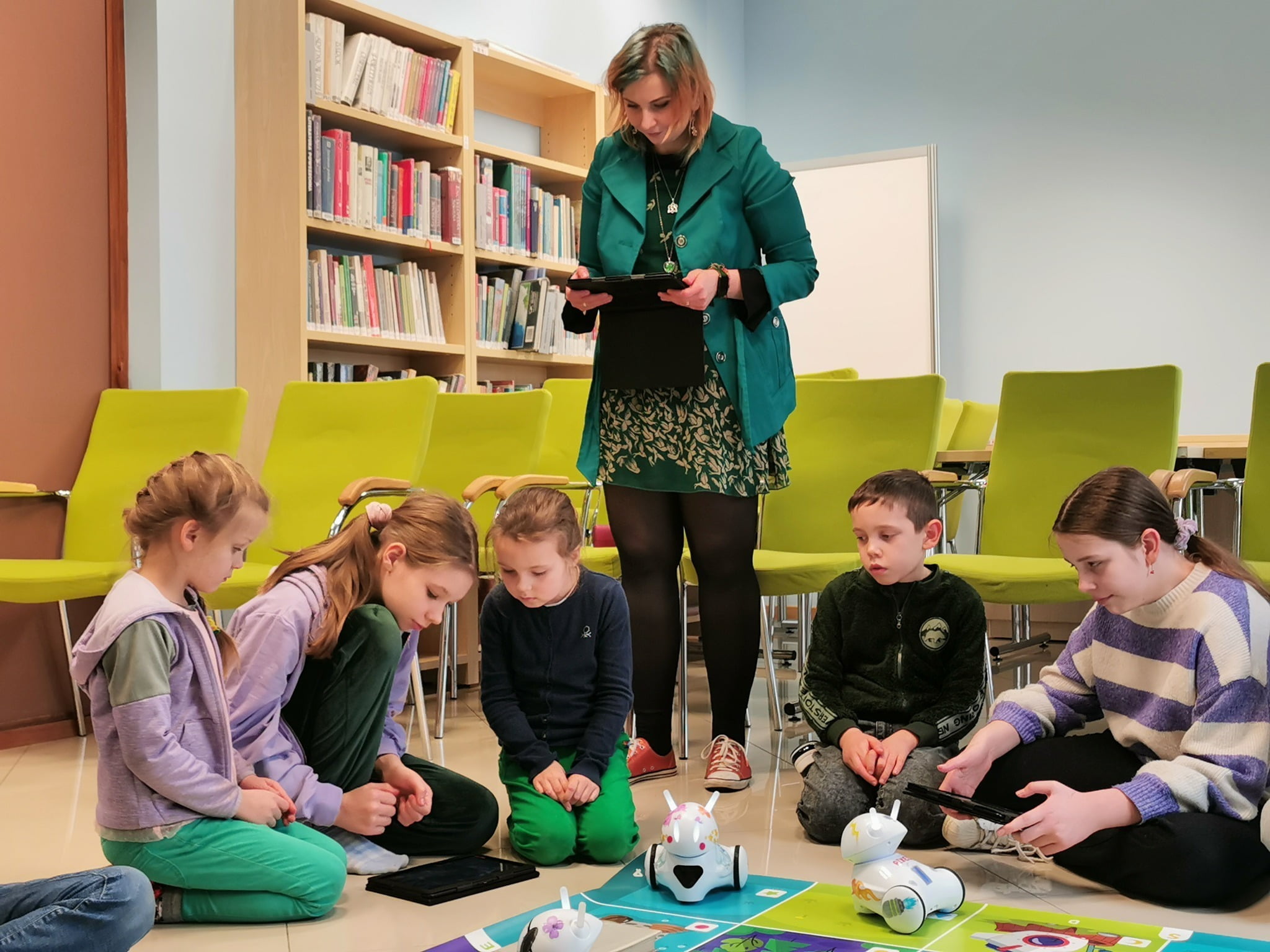 Zajęcia „Zauroczeni kodowaniem” rozpoczęły i później zakończyły tegoroczną przygodę z feriami. Prowadząca zajęcia Kalina Skudniewska starała się przekazać najważniejsze informacje dotyczące kodowania oraz przydatne definicje i narzędzia, które są niezbędne w późniejszej pracy programisty. Dzieci miały też możliwość przekonać się na czym polega kodowanie sterując roboty za pomocą tabletów.