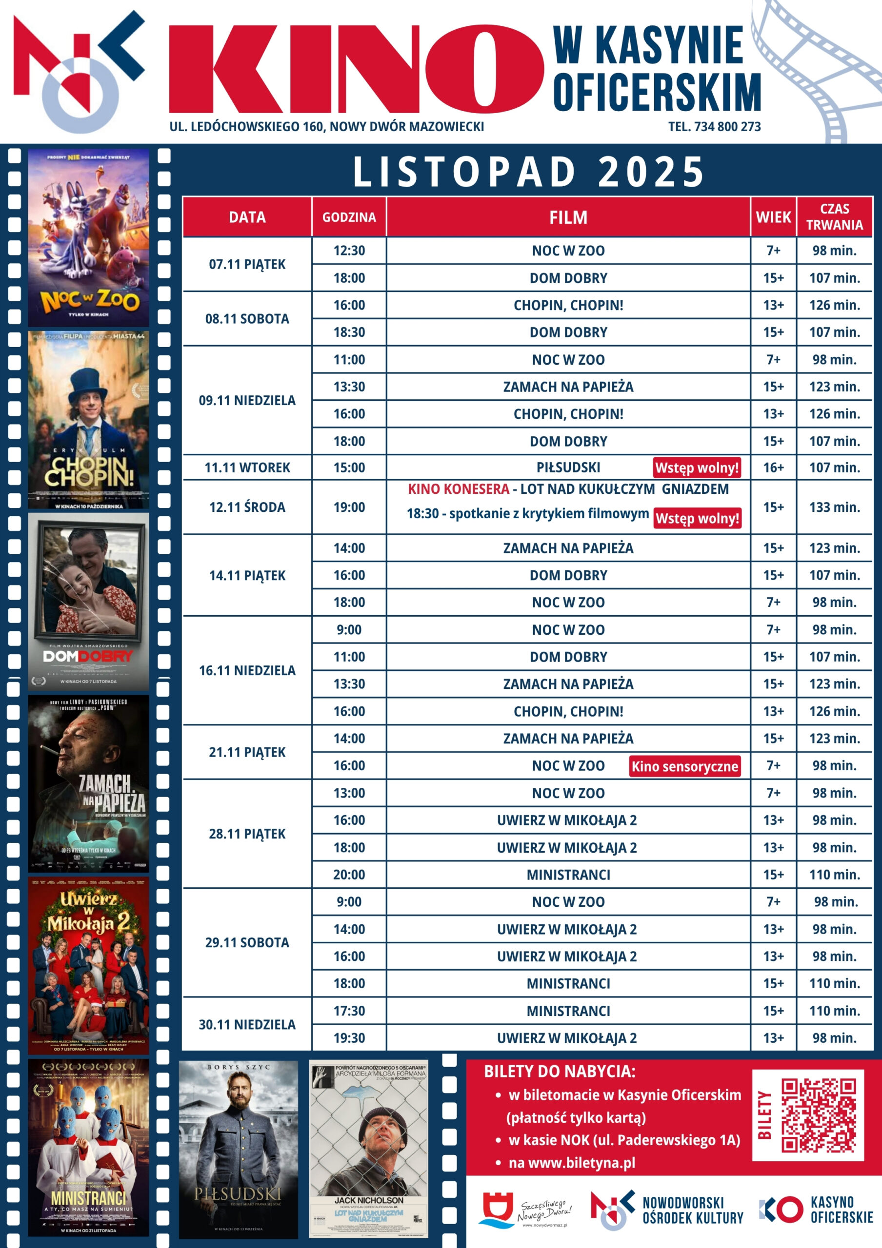 Nowodworski Ośrodek Kultury przedstawia repertuar Kina w Kasynie Oficerskim na listopad.