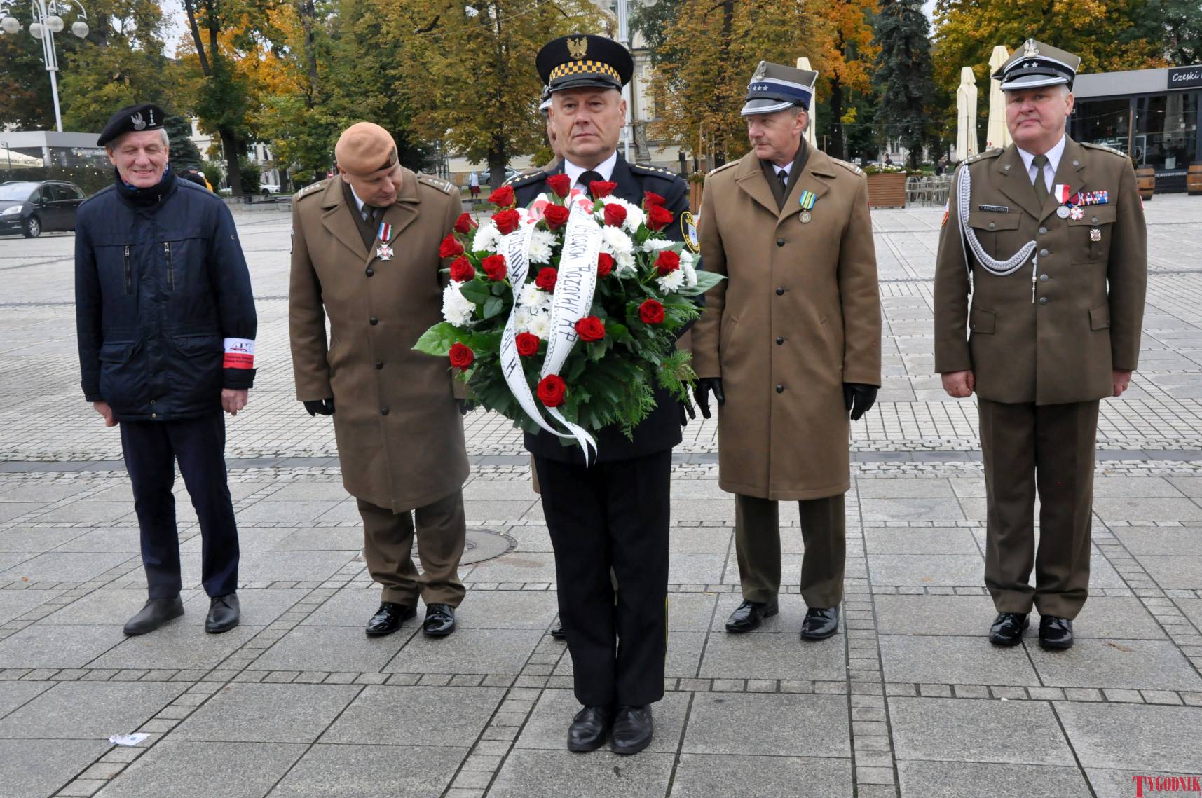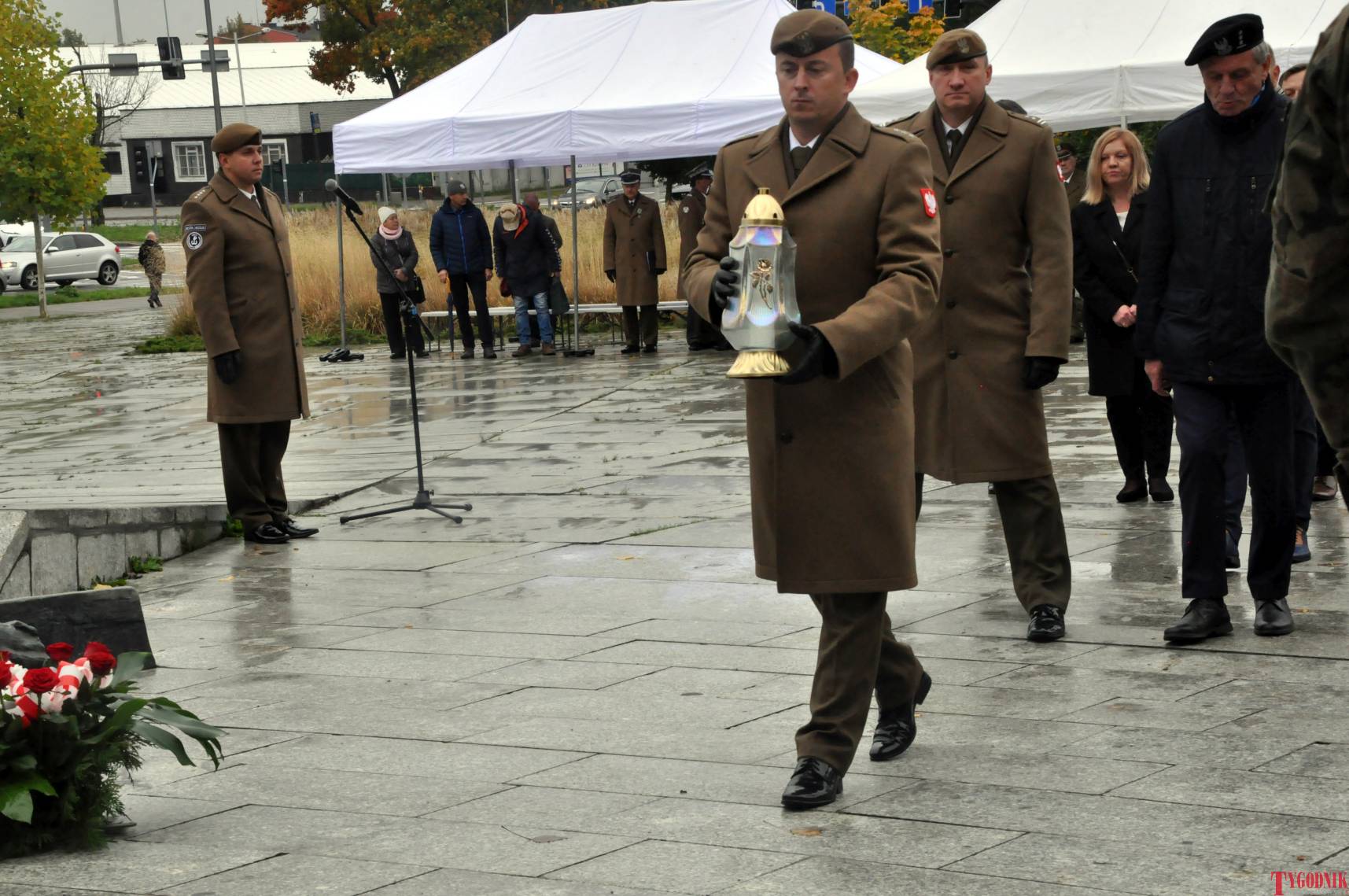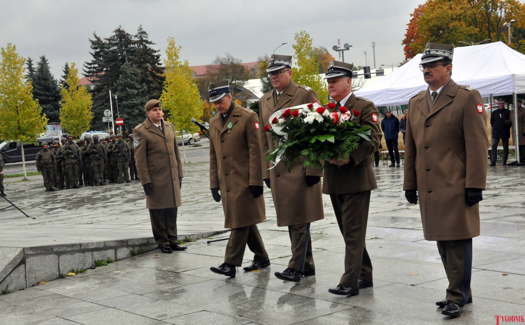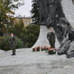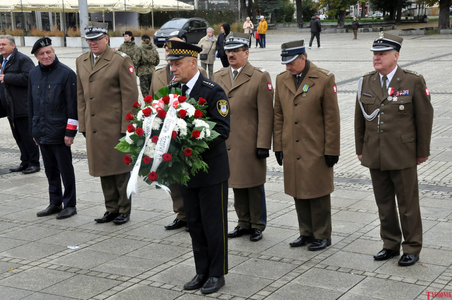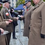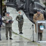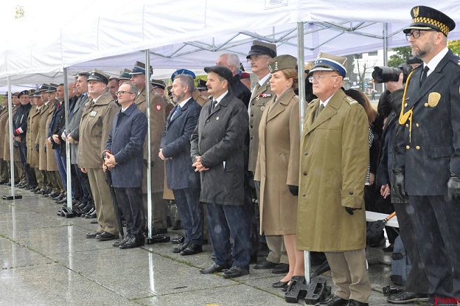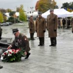 The Roll Call of the Fallen was read by Lt. Adam Dłużniak, after which the honor company of the 132nd Light Infantry Battalion fired a triple honorary volley. Then, wreaths were laid at the Monument of the Defenders of the Fatherland. The first to lay flowers was the delegation of the Association of Reserve Officers of the Republic of Poland together with Brig. Gen. Cezary Janowski and Brig. Gen. Piotr Waniek. After the laying of wreaths, the signal „Sleep, Comrade” and the representative song of the Polish Army were played. The ceremony on the square concluded with a parade of subunits and students from uniformed classes.