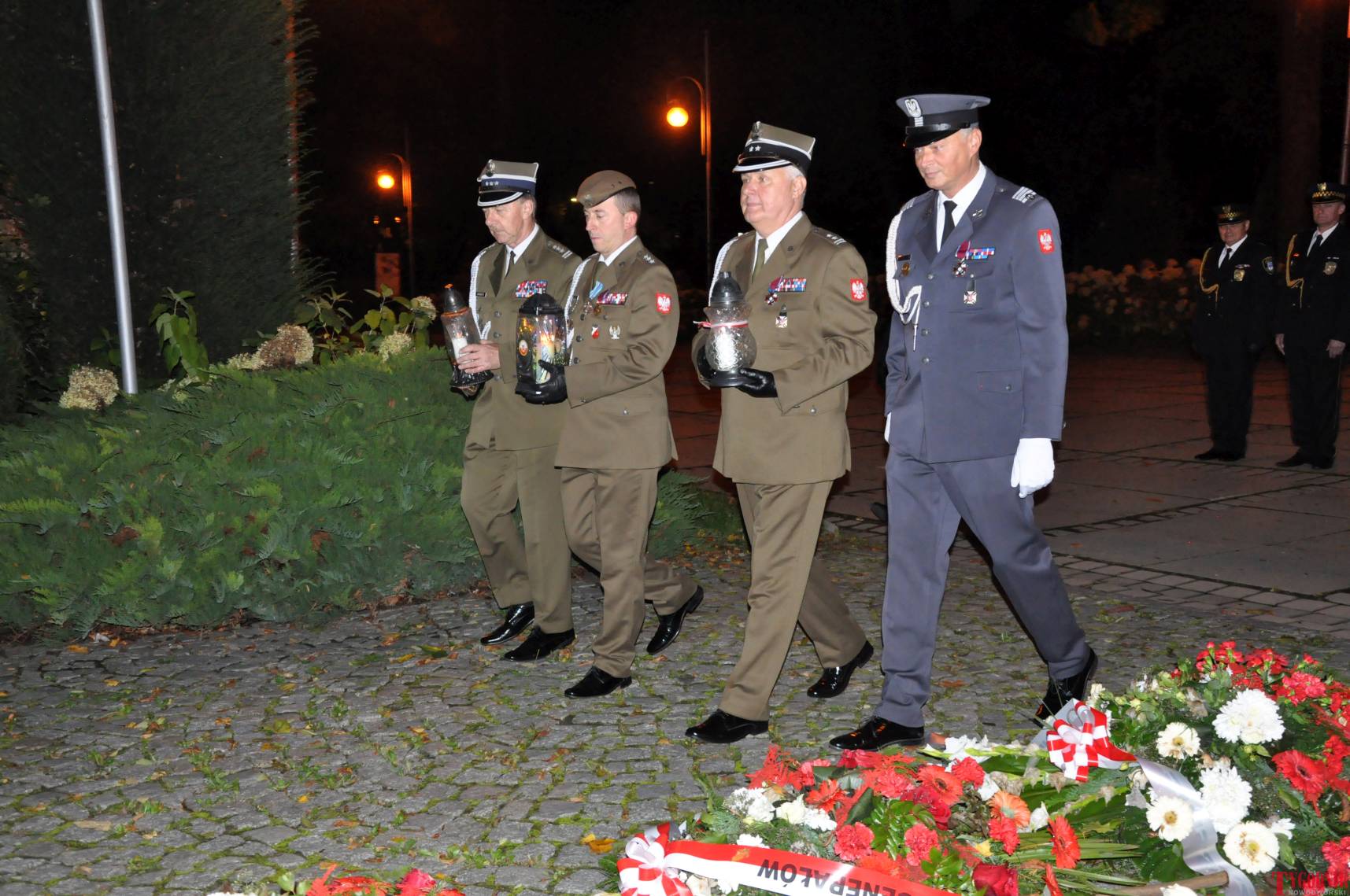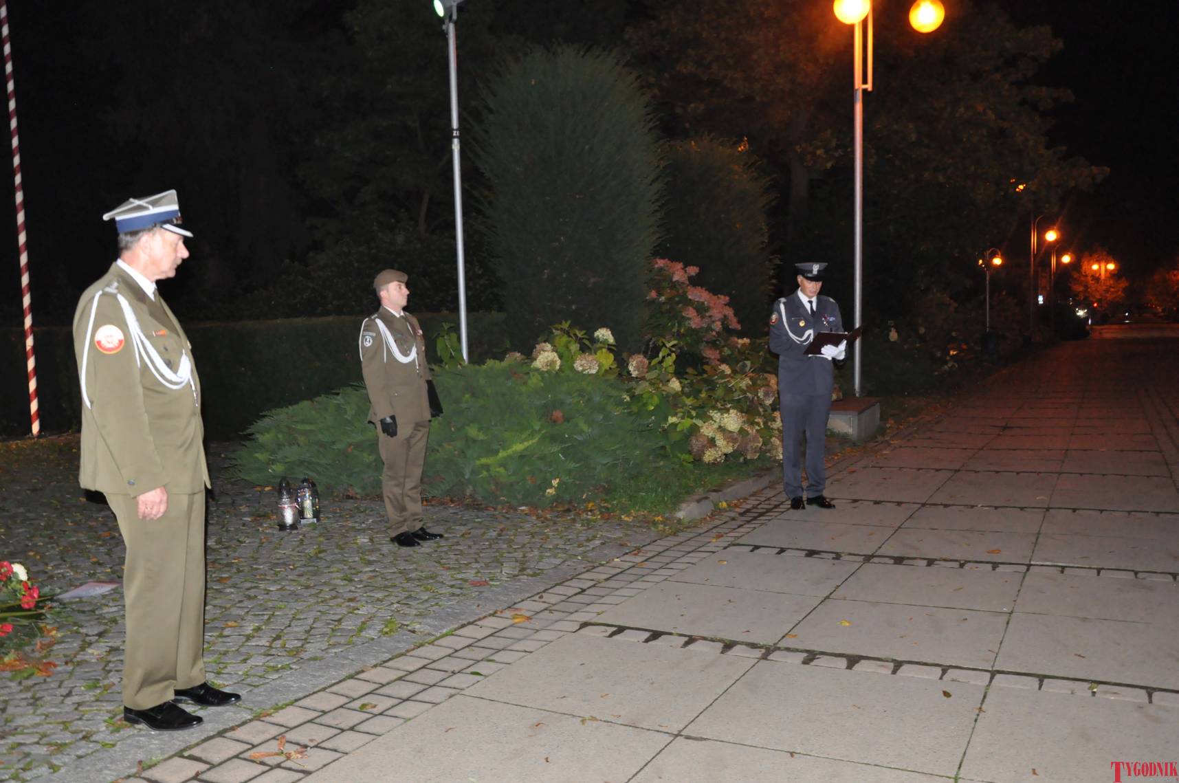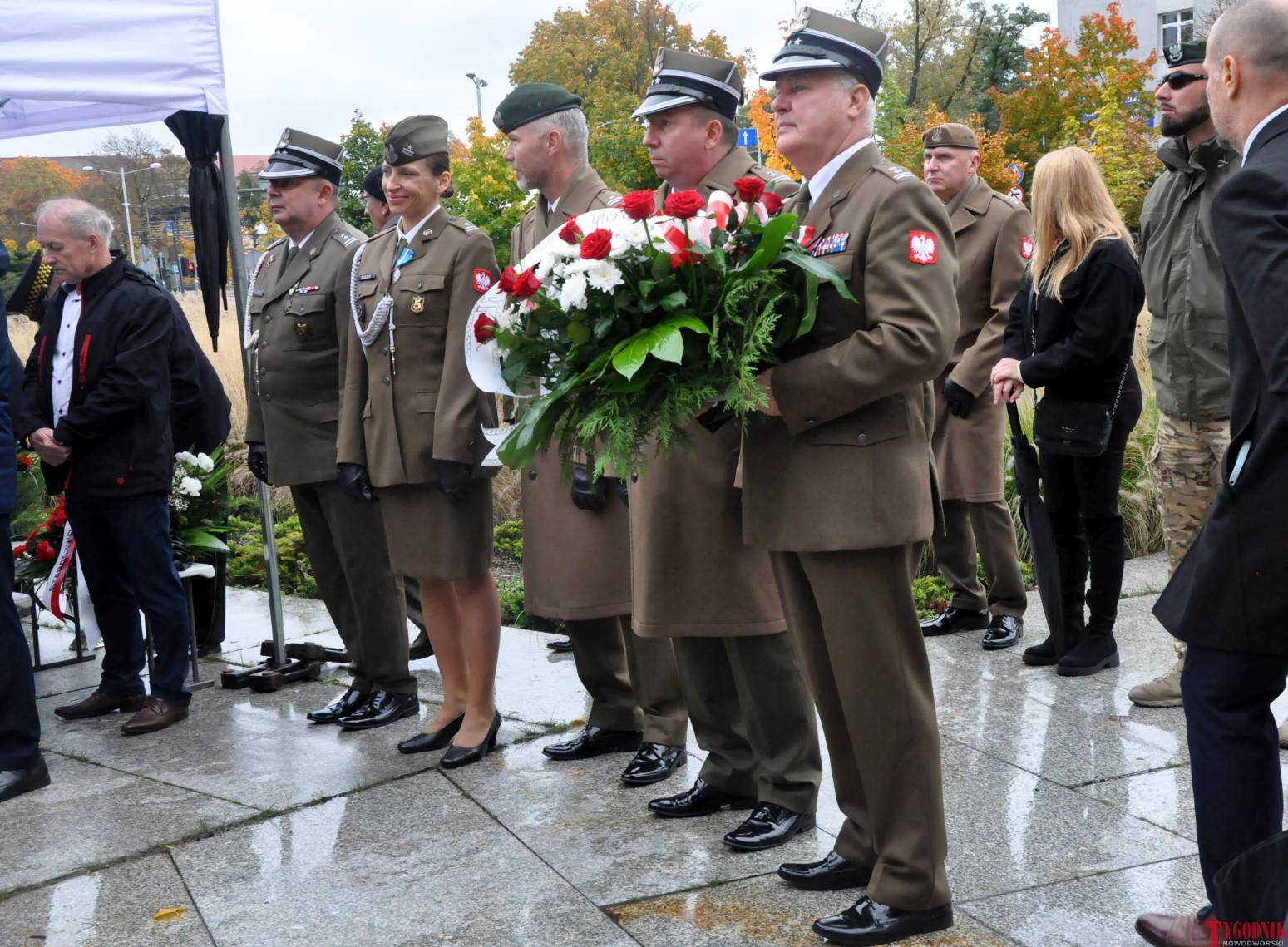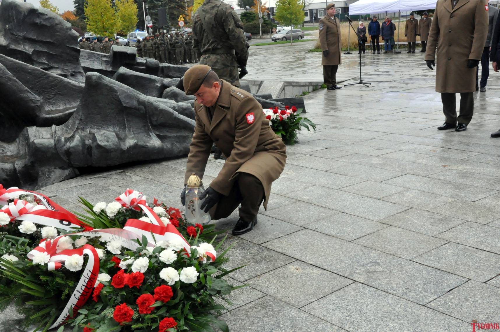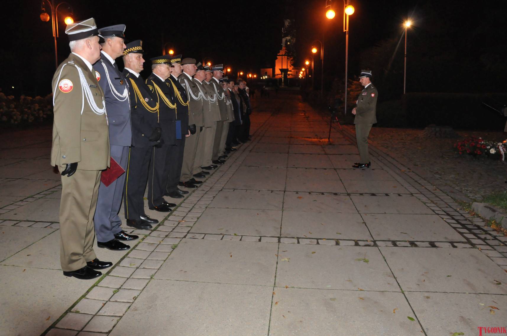 The Roll Call of the Fallen was read by Lt. Adam Dłużniak, after which the honor company of the 132nd Light Infantry Battalion fired a triple honorary volley. Then, wreaths were laid at the Monument of the Defenders of the Fatherland. The first to lay flowers was the delegation of the Association of Reserve Officers of the Republic of Poland together with Brig. Gen. Cezary Janowski and Brig. Gen. Piotr Waniek. After the laying of wreaths, the signal „Sleep, Comrade” and the representative song of the Polish Army were played. The ceremony on the square concluded with a parade of subunits and students from uniformed classes.