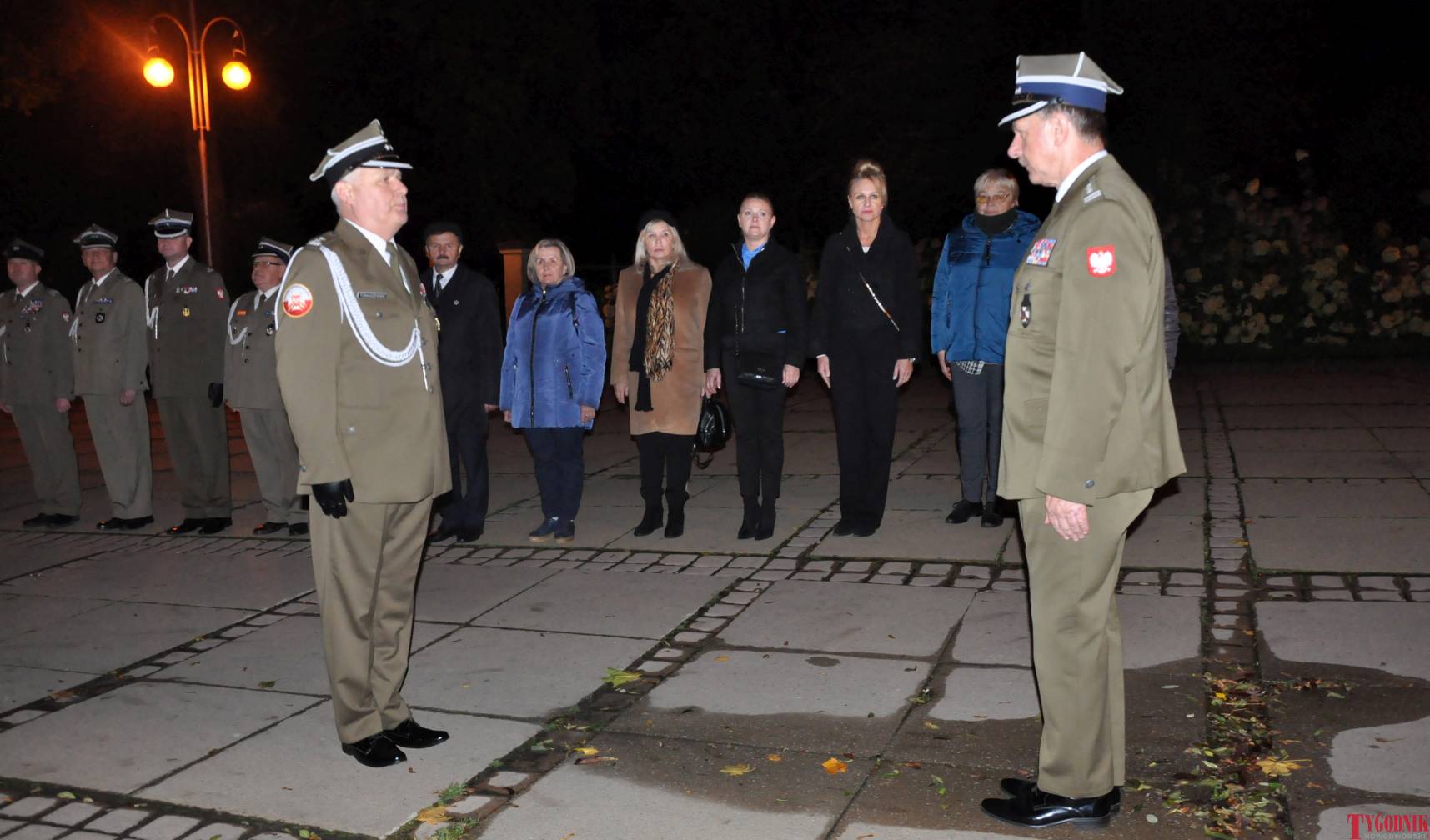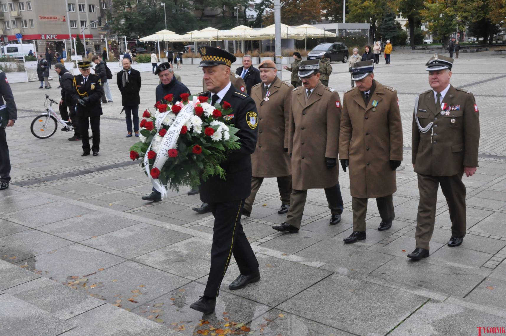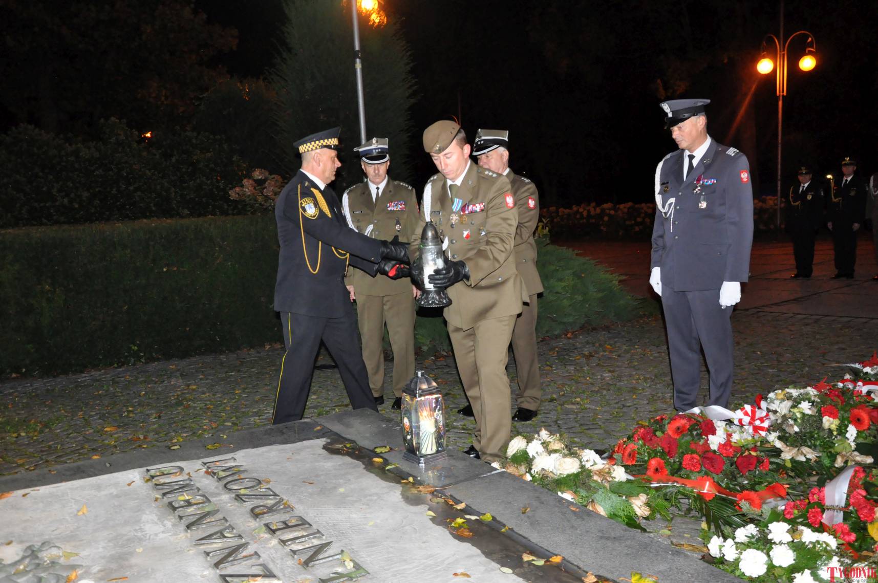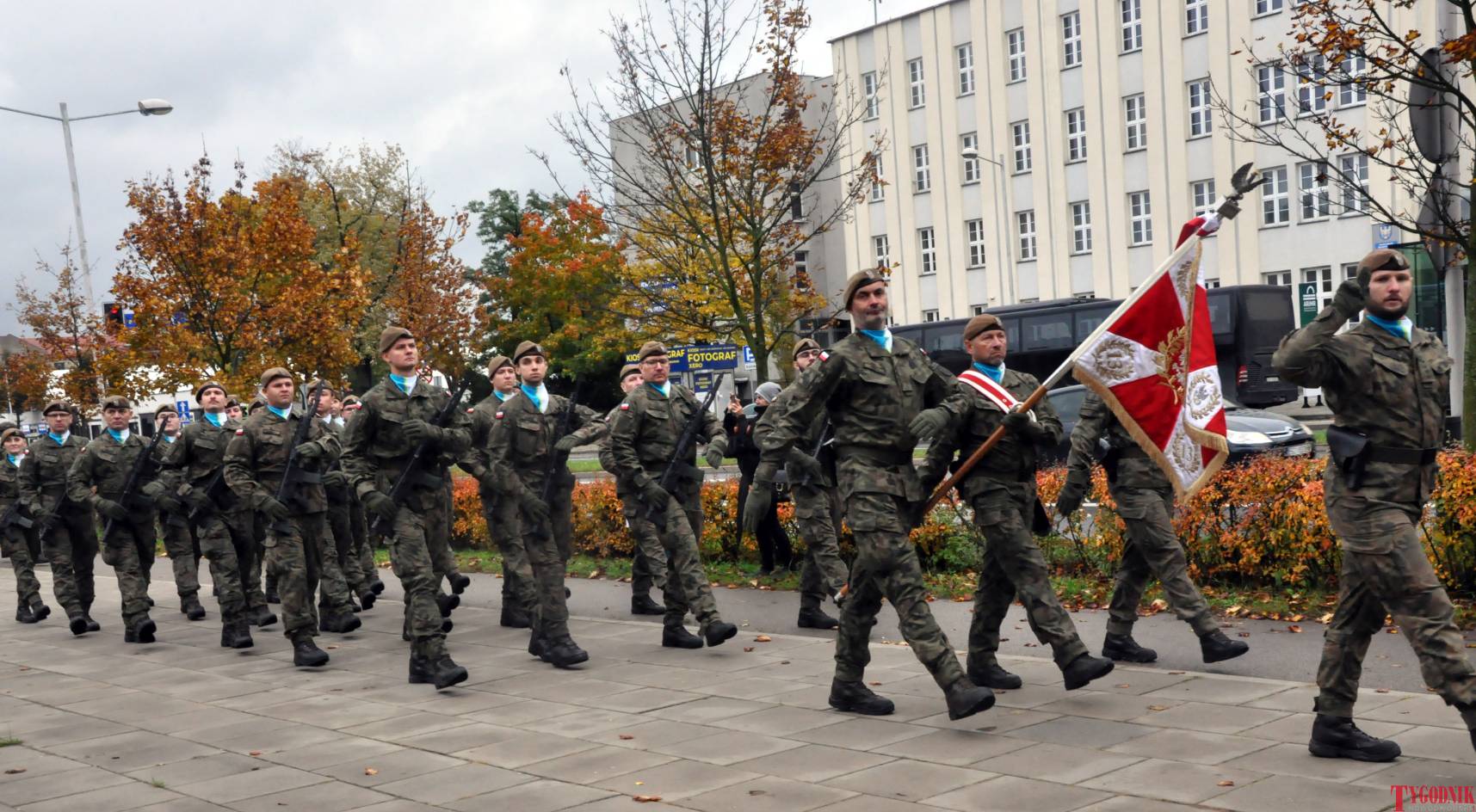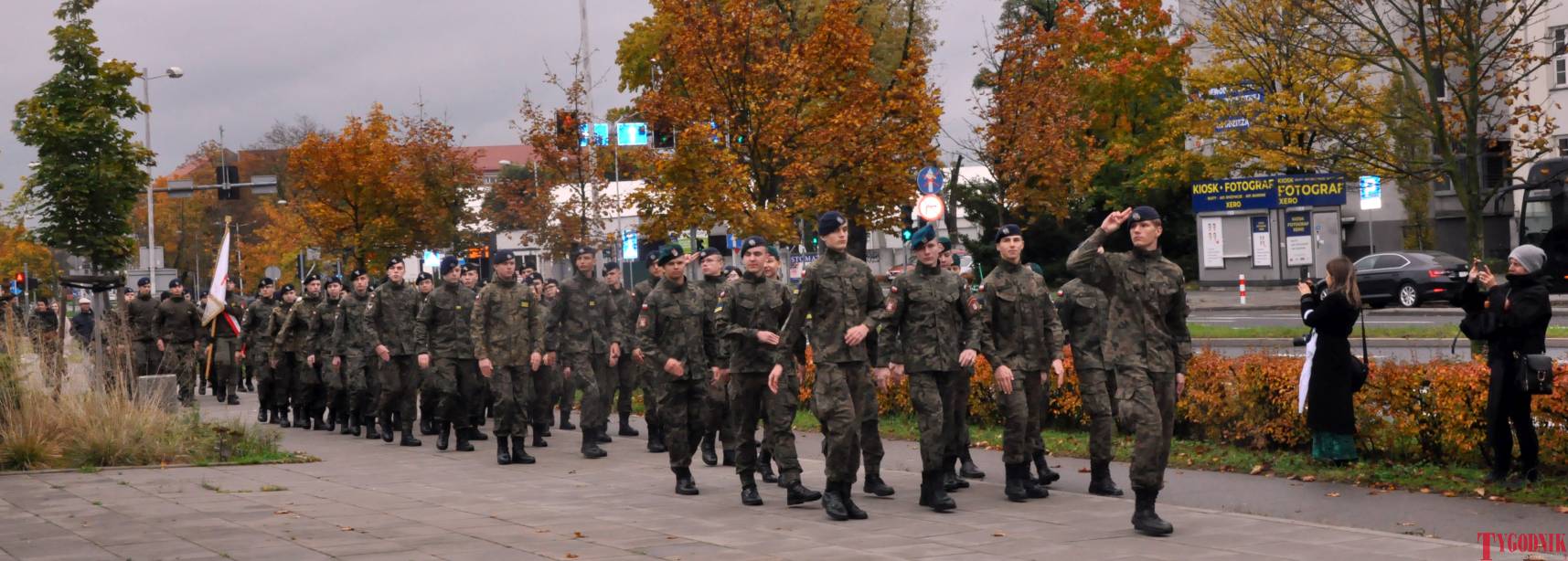The Roll Call of the Fallen was read by Lt. Adam Dłużniak, after which the honor company of the 132nd Light Infantry Battalion fired a triple honorary volley. Then, wreaths were laid at the Monument of the Defenders of the Fatherland. The first to lay flowers was the delegation of the Association of Reserve Officers of the Republic of Poland together with Brig. Gen. Cezary Janowski and Brig. Gen. Piotr Waniek. After the laying of wreaths, the signal „Sleep, Comrade” and the representative song of the Polish Army were played. The ceremony on the square concluded with a parade of subunits and students from uniformed classes.