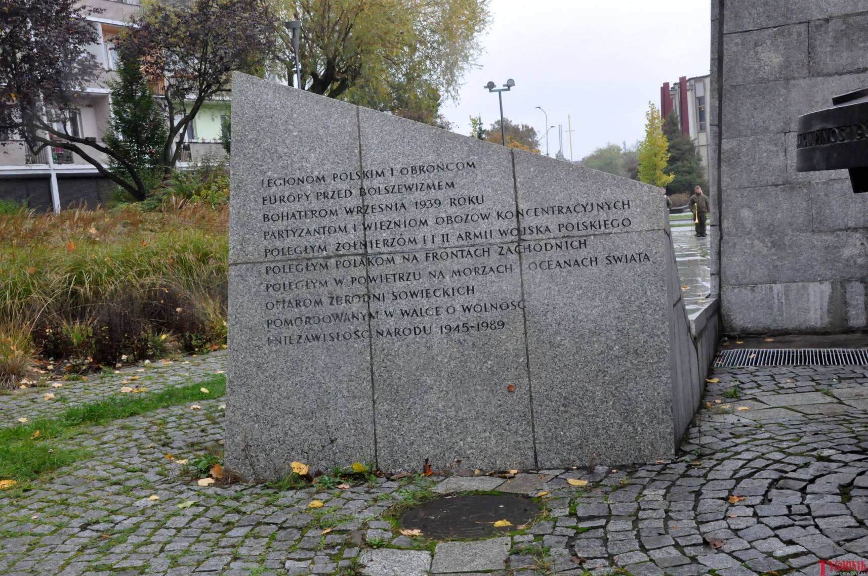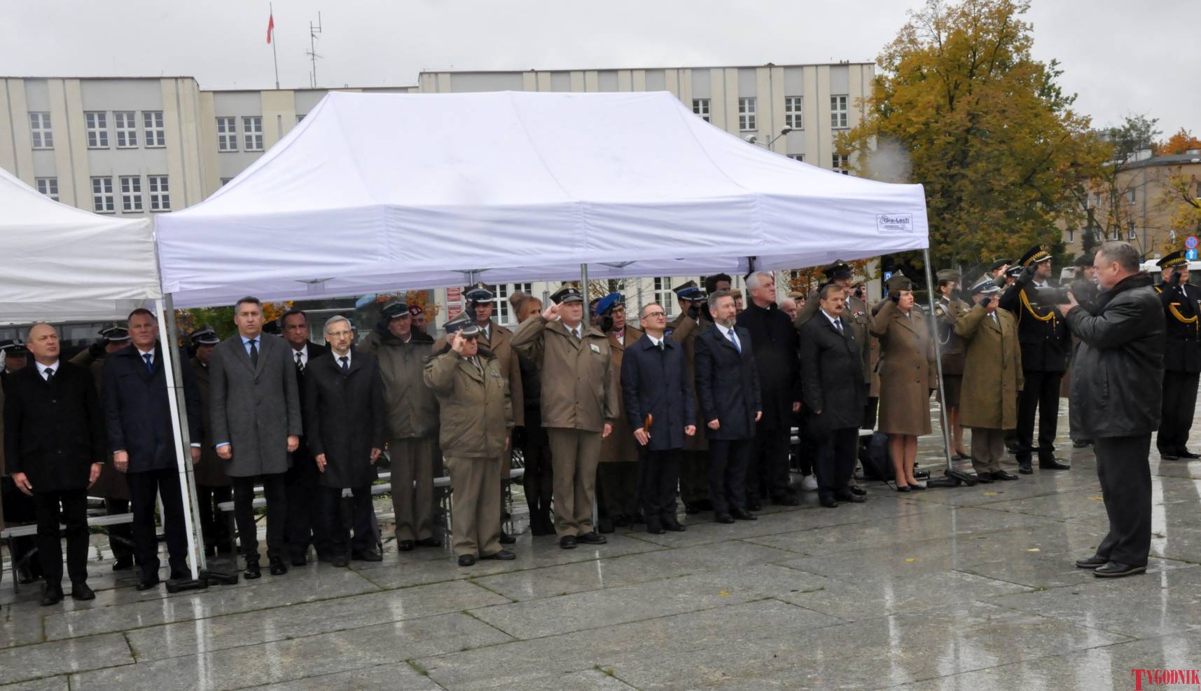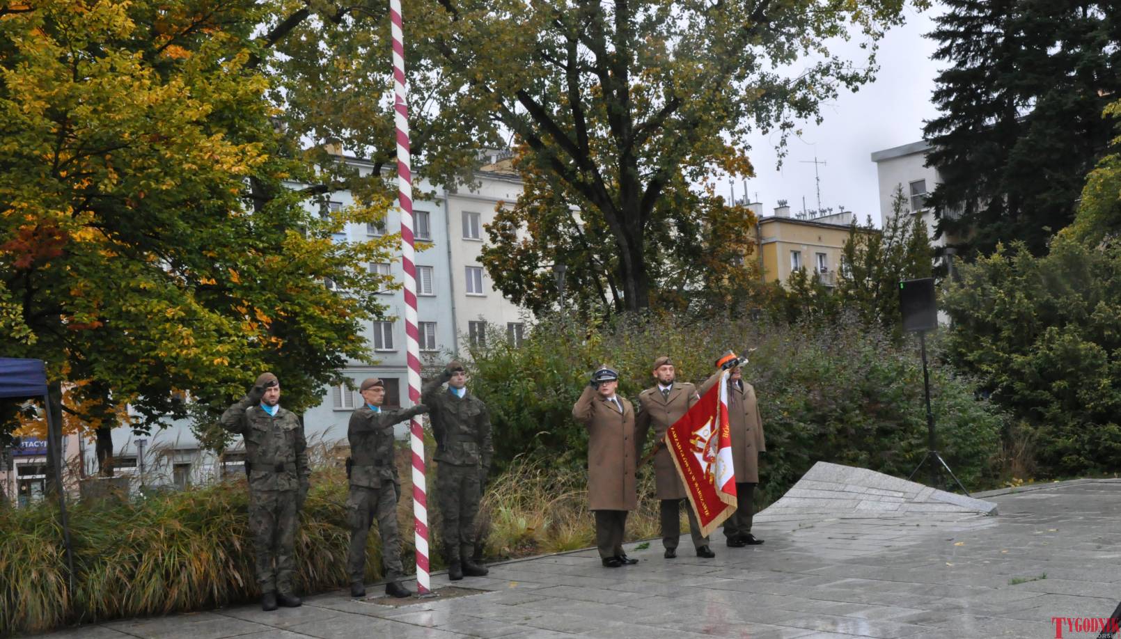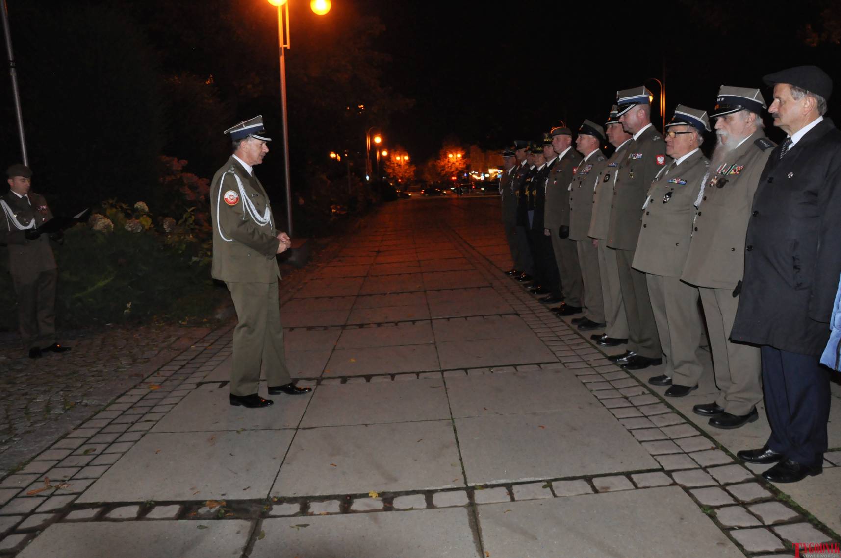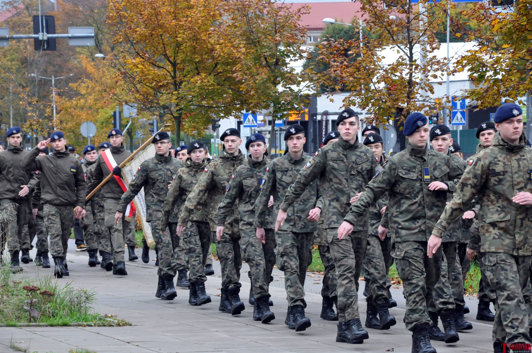 The Roll Call of the Fallen was read by Lt. Adam Dłużniak, after which the honor company of the 132nd Light Infantry Battalion fired a triple honorary volley. Then, wreaths were laid at the Monument of the Defenders of the Fatherland. The first to lay flowers was the delegation of the Association of Reserve Officers of the Republic of Poland together with Brig. Gen. Cezary Janowski and Brig. Gen. Piotr Waniek. After the laying of wreaths, the signal „Sleep, Comrade” and the representative song of the Polish Army were played. The ceremony on the square concluded with a parade of subunits and students from uniformed classes.