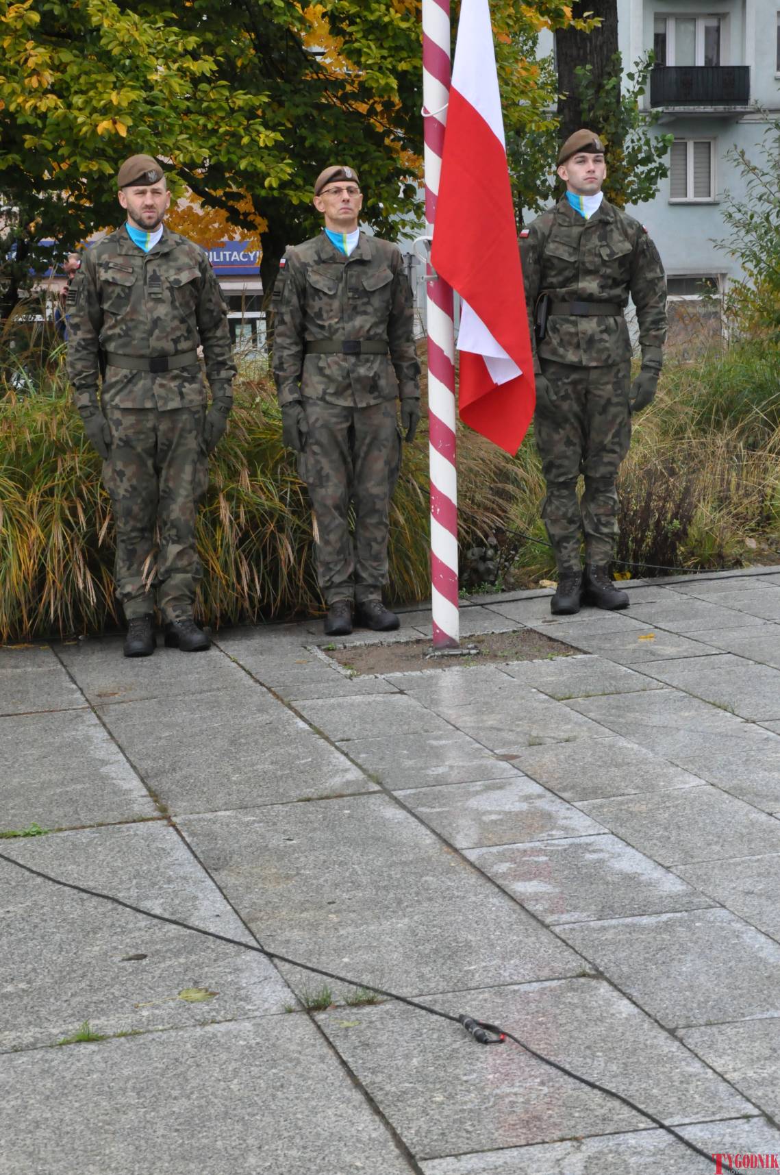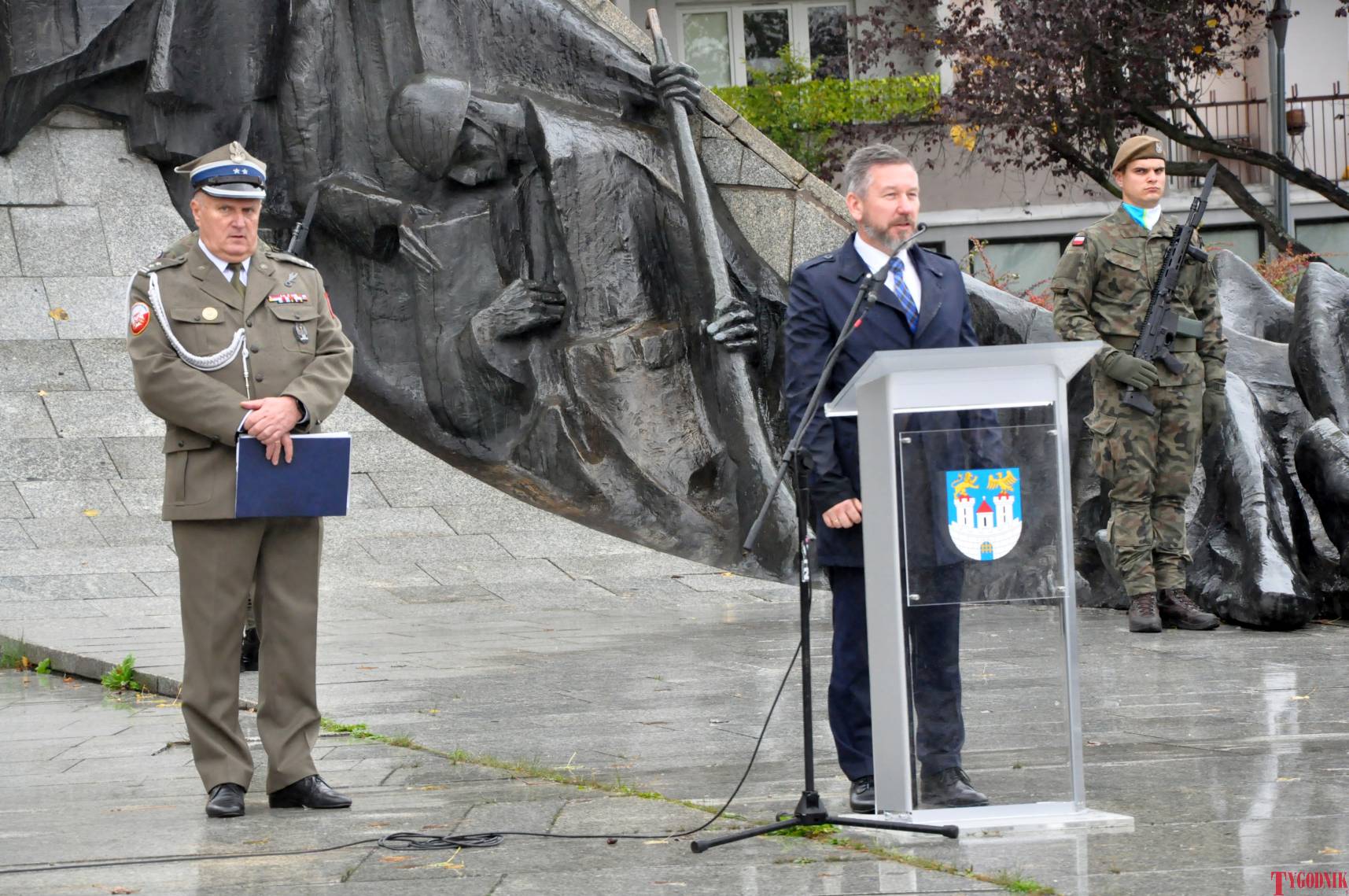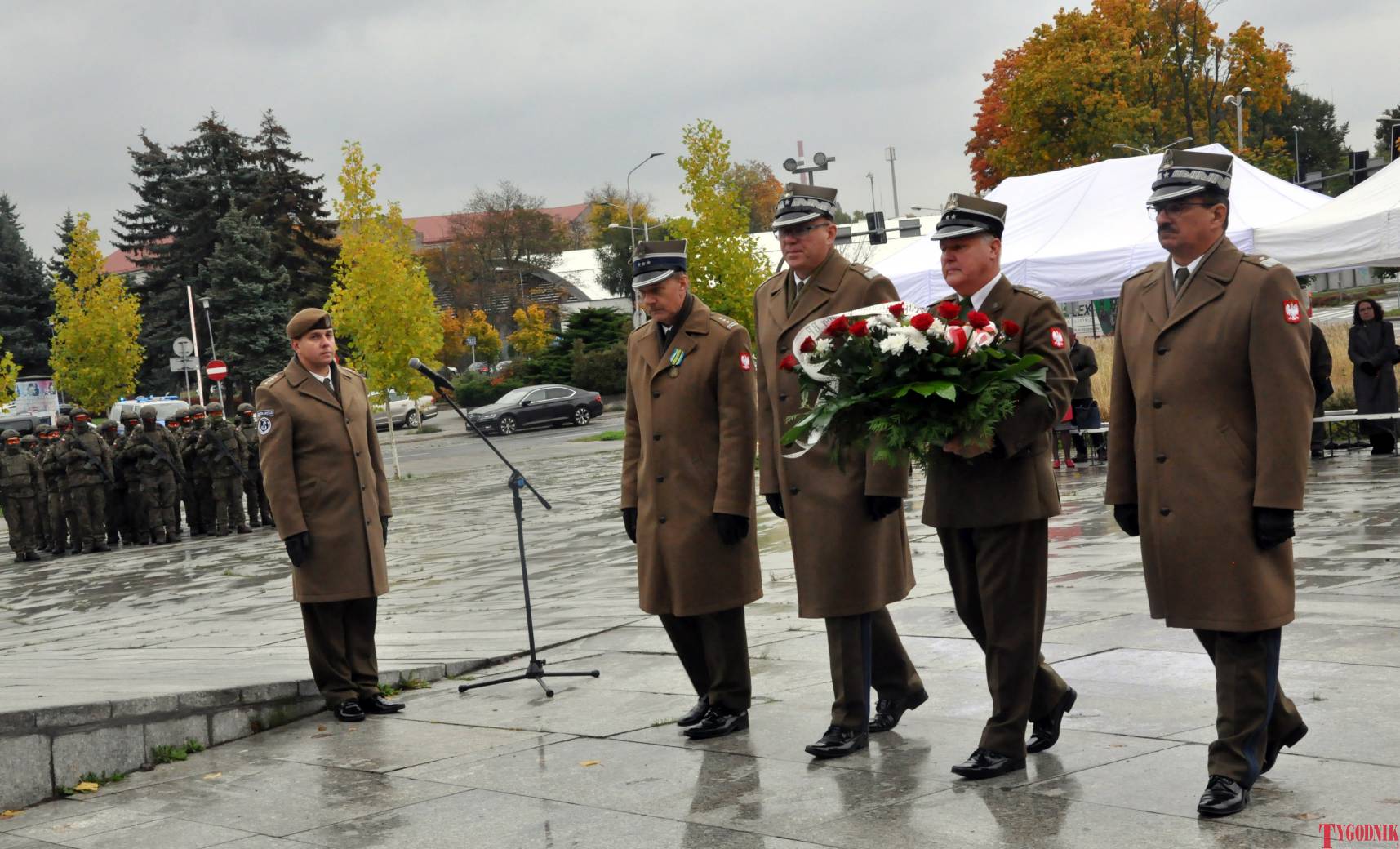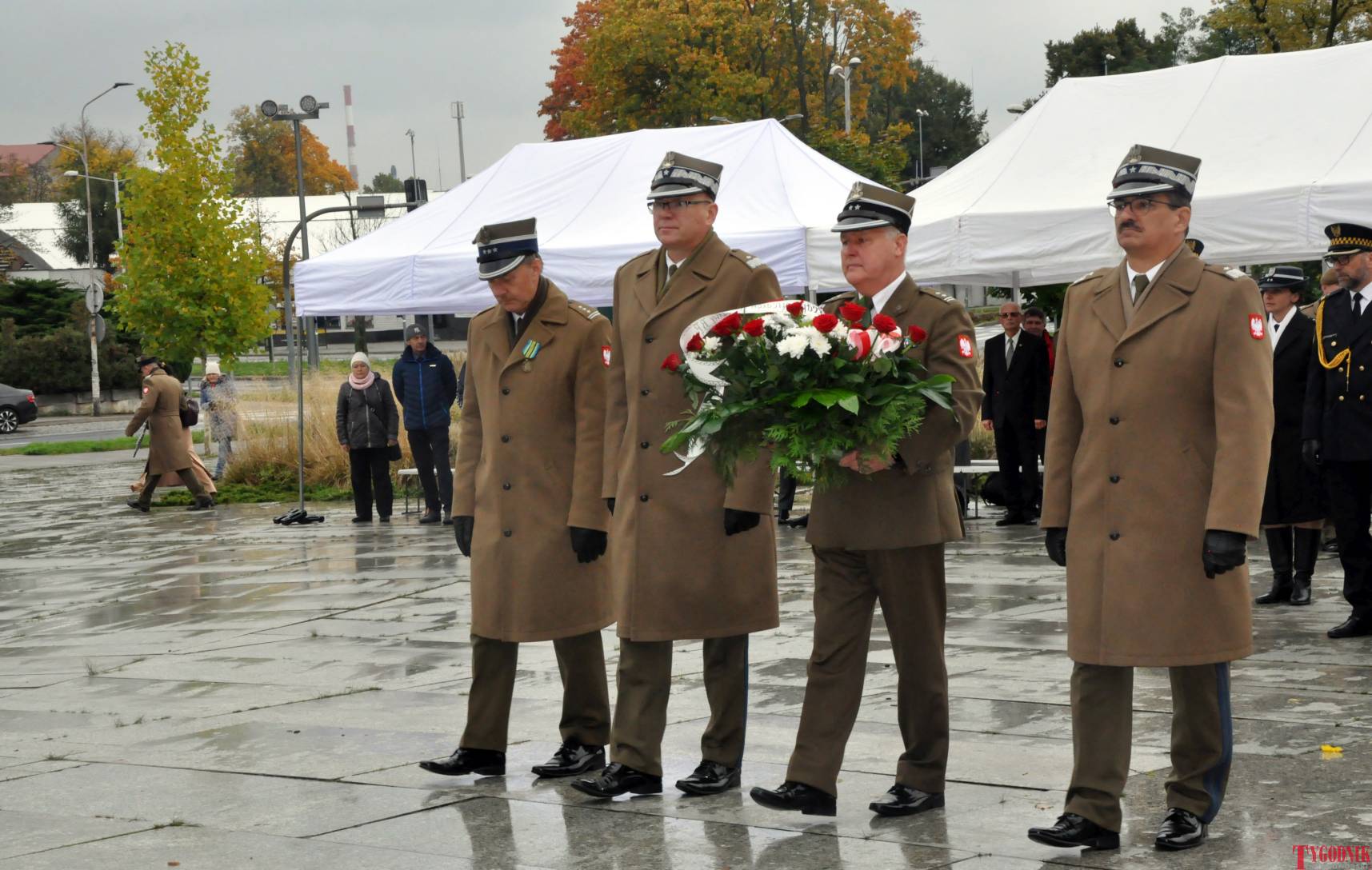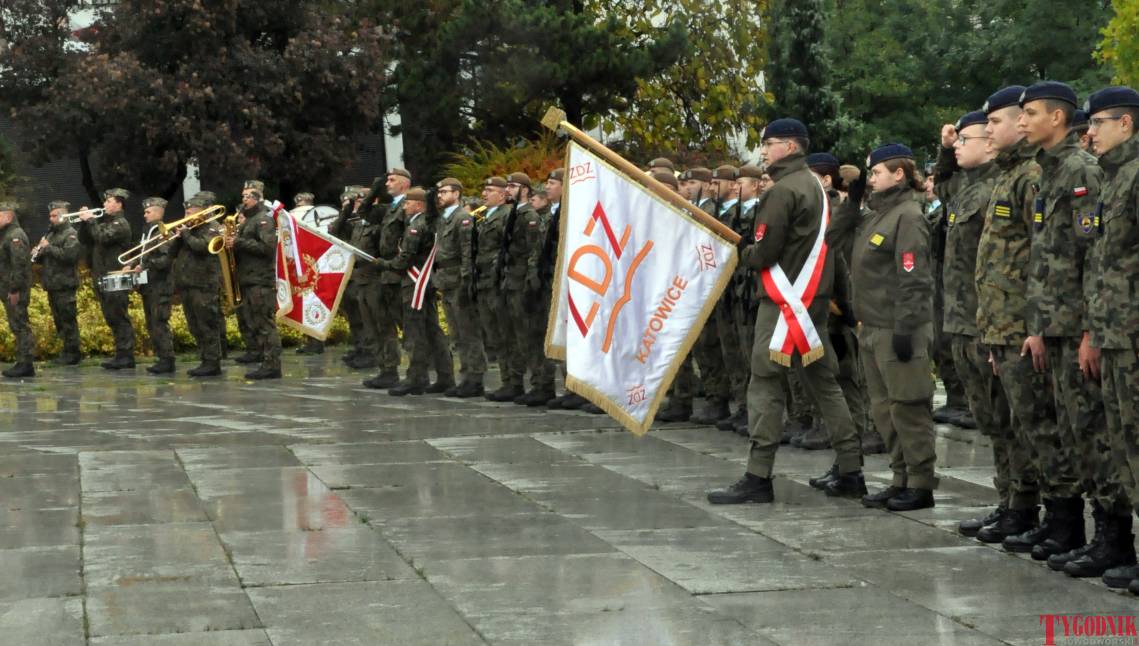 The ceremony began with military precision. The honor guard was provided by the 132nd Light Infantry Battalion from Częstochowa, part of the 13th Silesian Territorial Defense Brigade. The ceremony commander was Captain Krzysztof Brusznicki, and the narrator was Lt. Col. (ret.) Cezary Kubiak. The musical setting was provided by the Military Orchestra in Bytom under the baton of Captain Krystian Siwek.