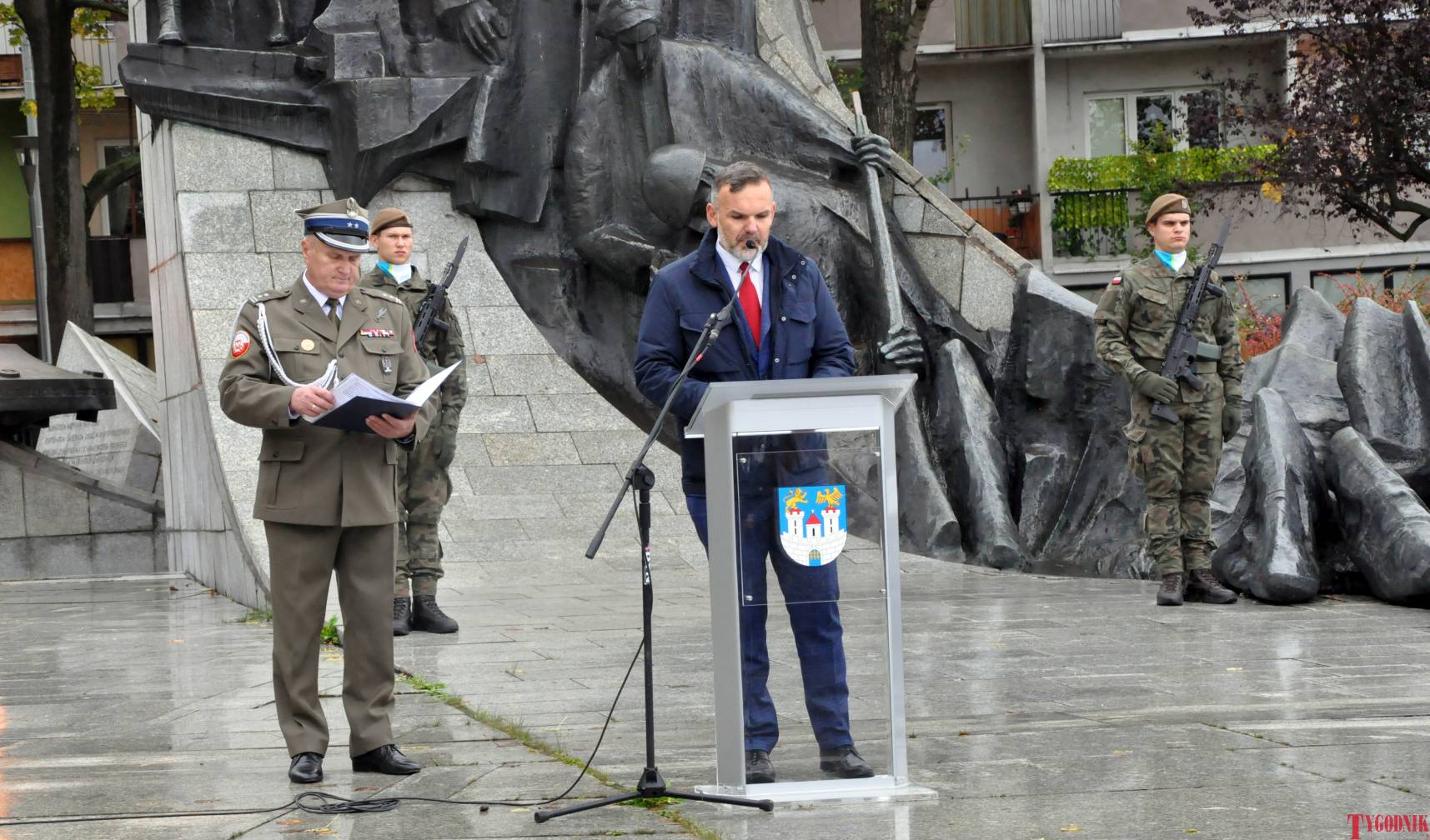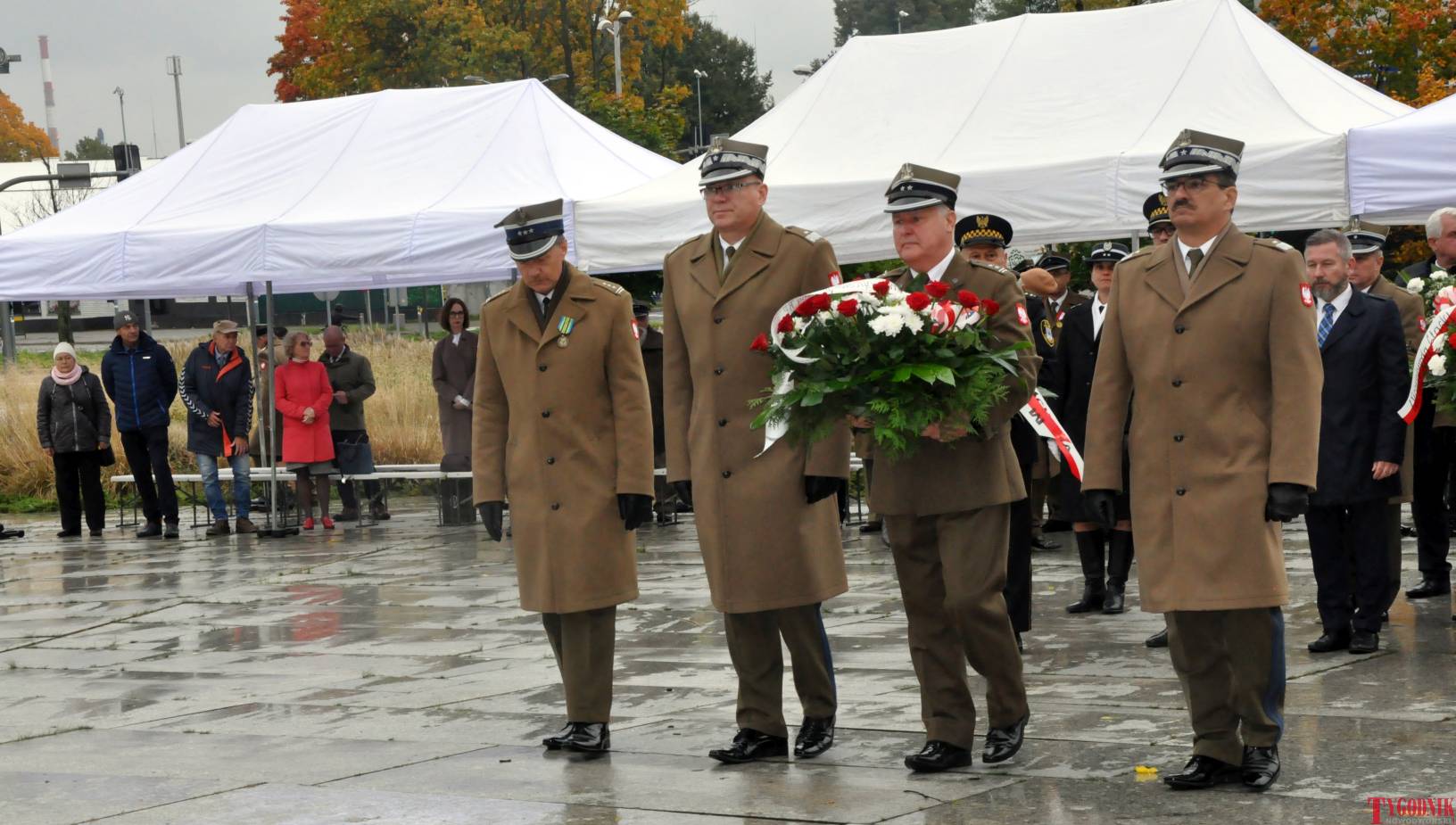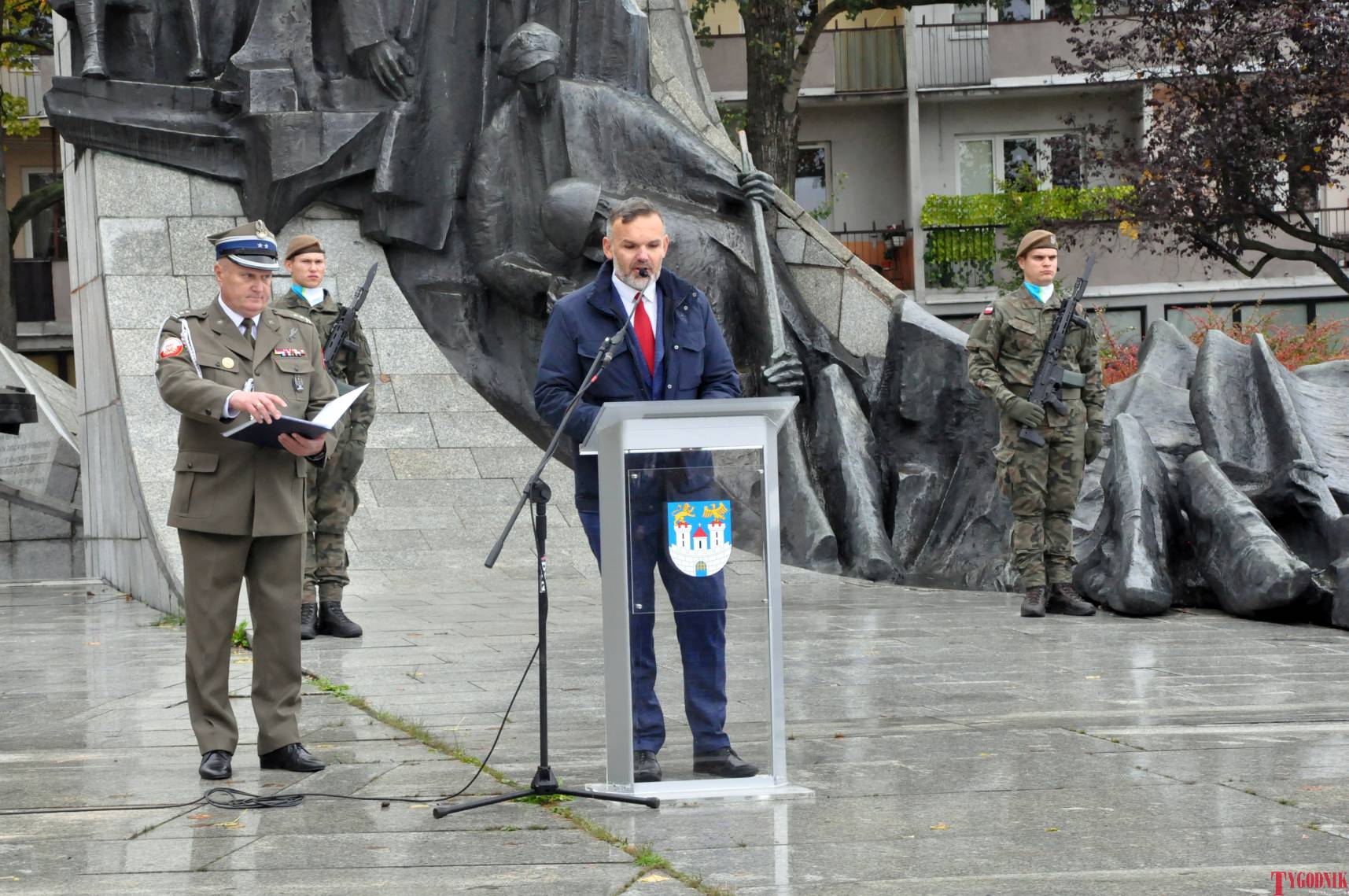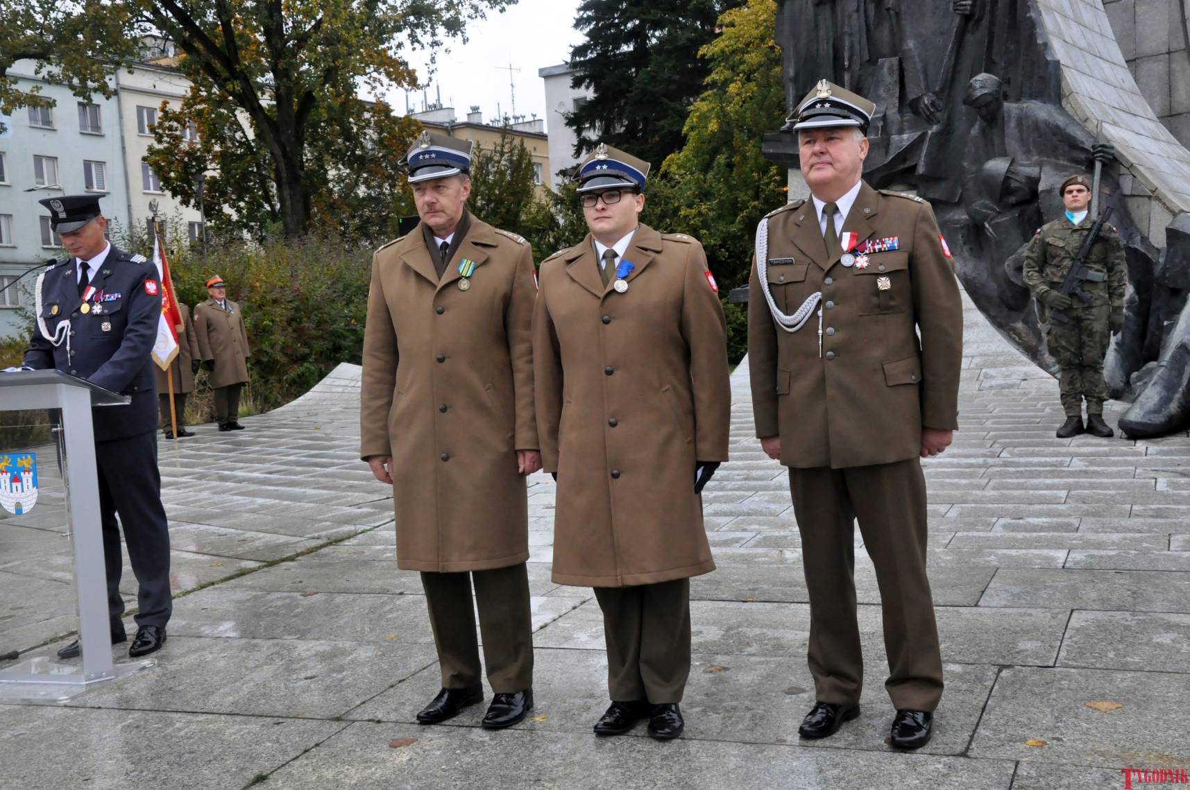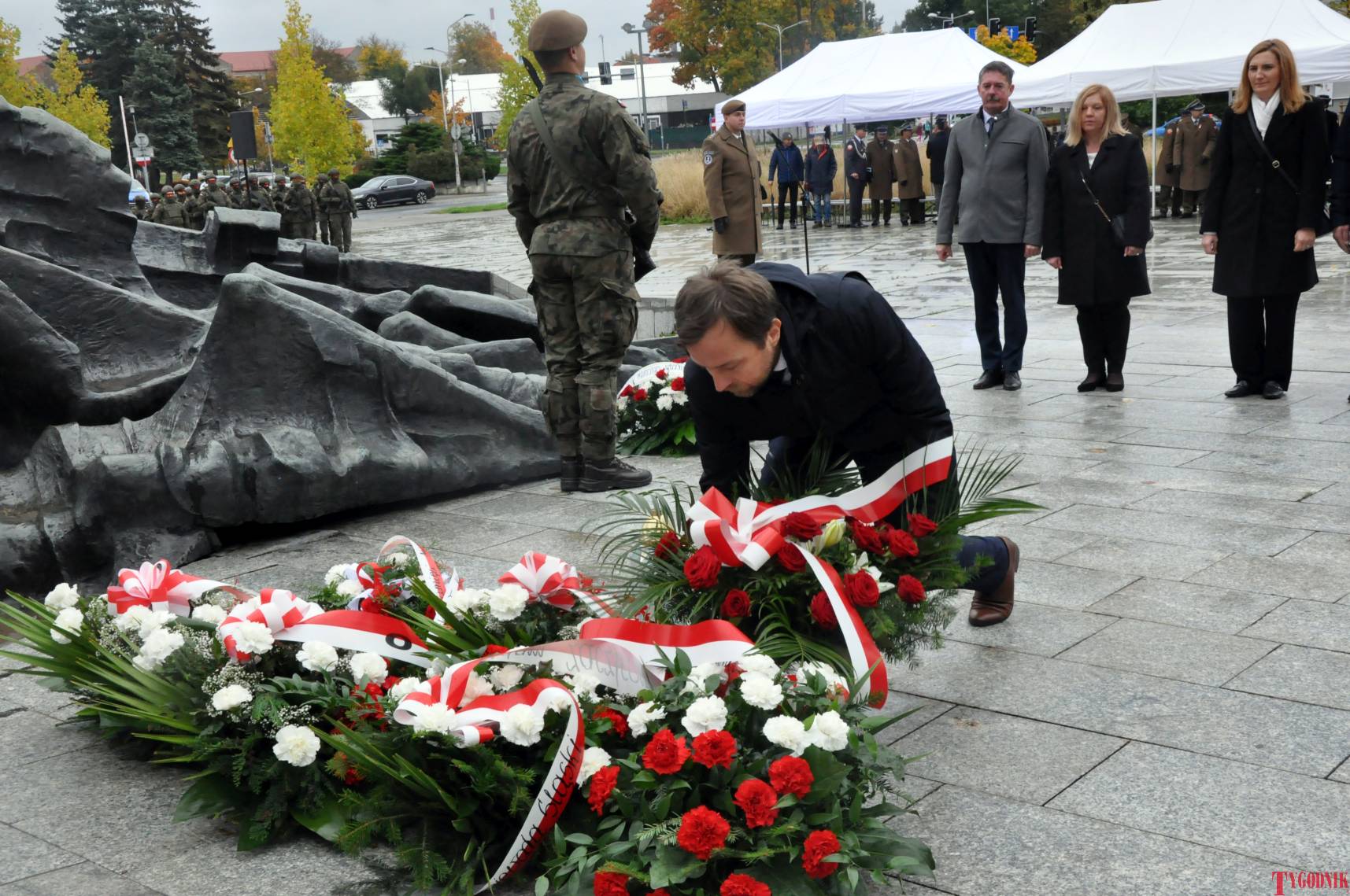 The ceremony began with military precision. The honor guard was provided by the 132nd Light Infantry Battalion from Częstochowa, part of the 13th Silesian Territorial Defense Brigade. The ceremony commander was Captain Krzysztof Brusznicki, and the narrator was Lt. Col. (ret.) Cezary Kubiak. The musical setting was provided by the Military Orchestra in Bytom under the baton of Captain Krystian Siwek.