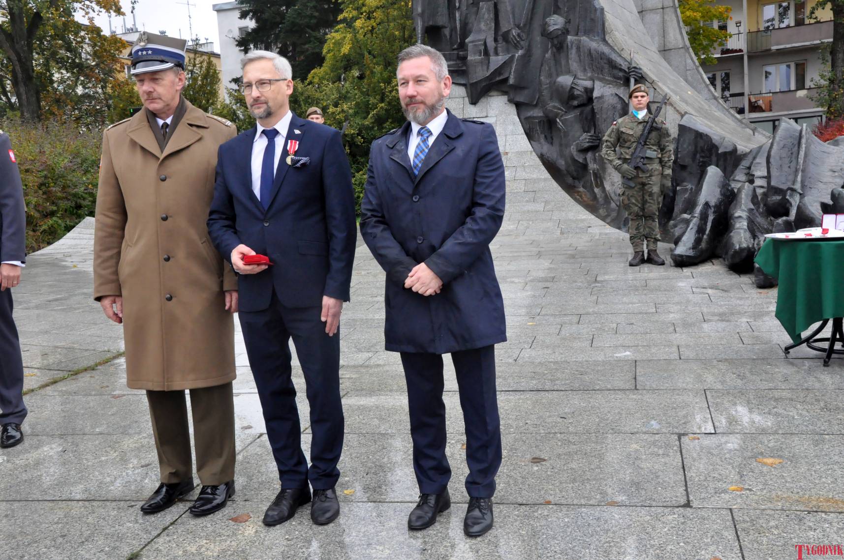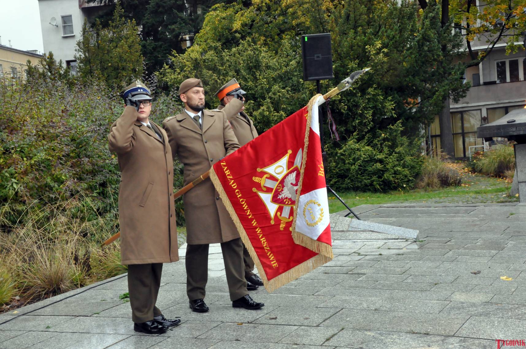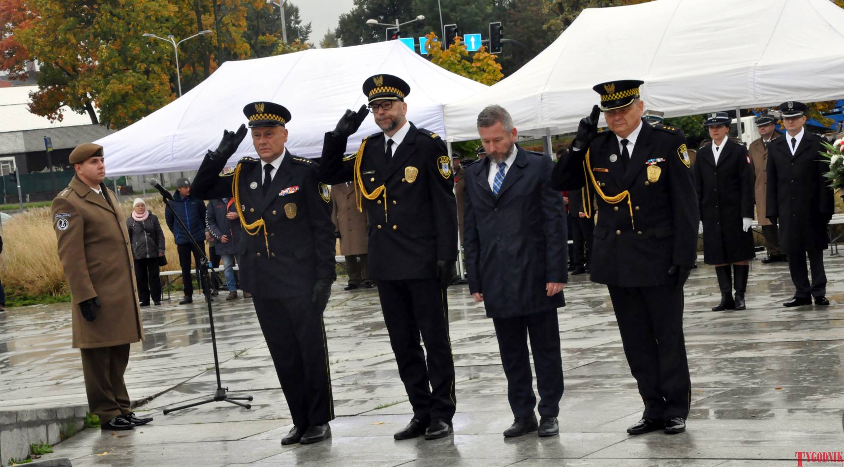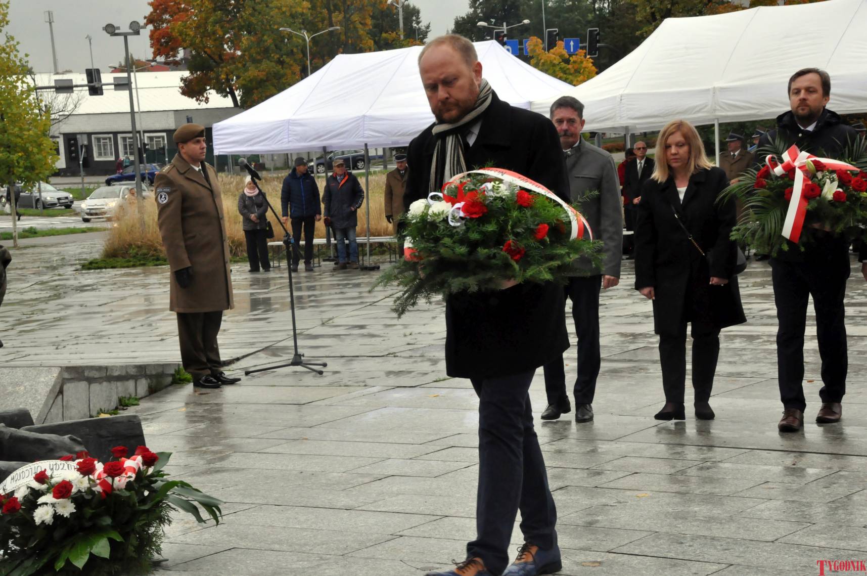 The ceremony began with military precision. The honor guard was provided by the 132nd Light Infantry Battalion from Częstochowa, part of the 13th Silesian Territorial Defense Brigade. The ceremony commander was Captain Krzysztof Brusznicki, and the narrator was Lt. Col. (ret.) Cezary Kubiak. The musical setting was provided by the Military Orchestra in Bytom under the baton of Captain Krystian Siwek.