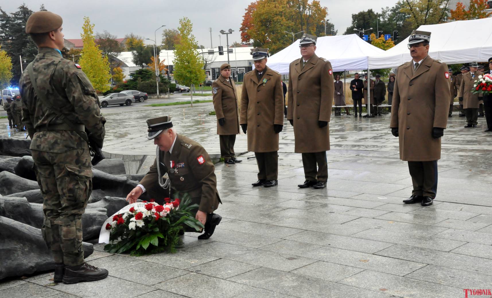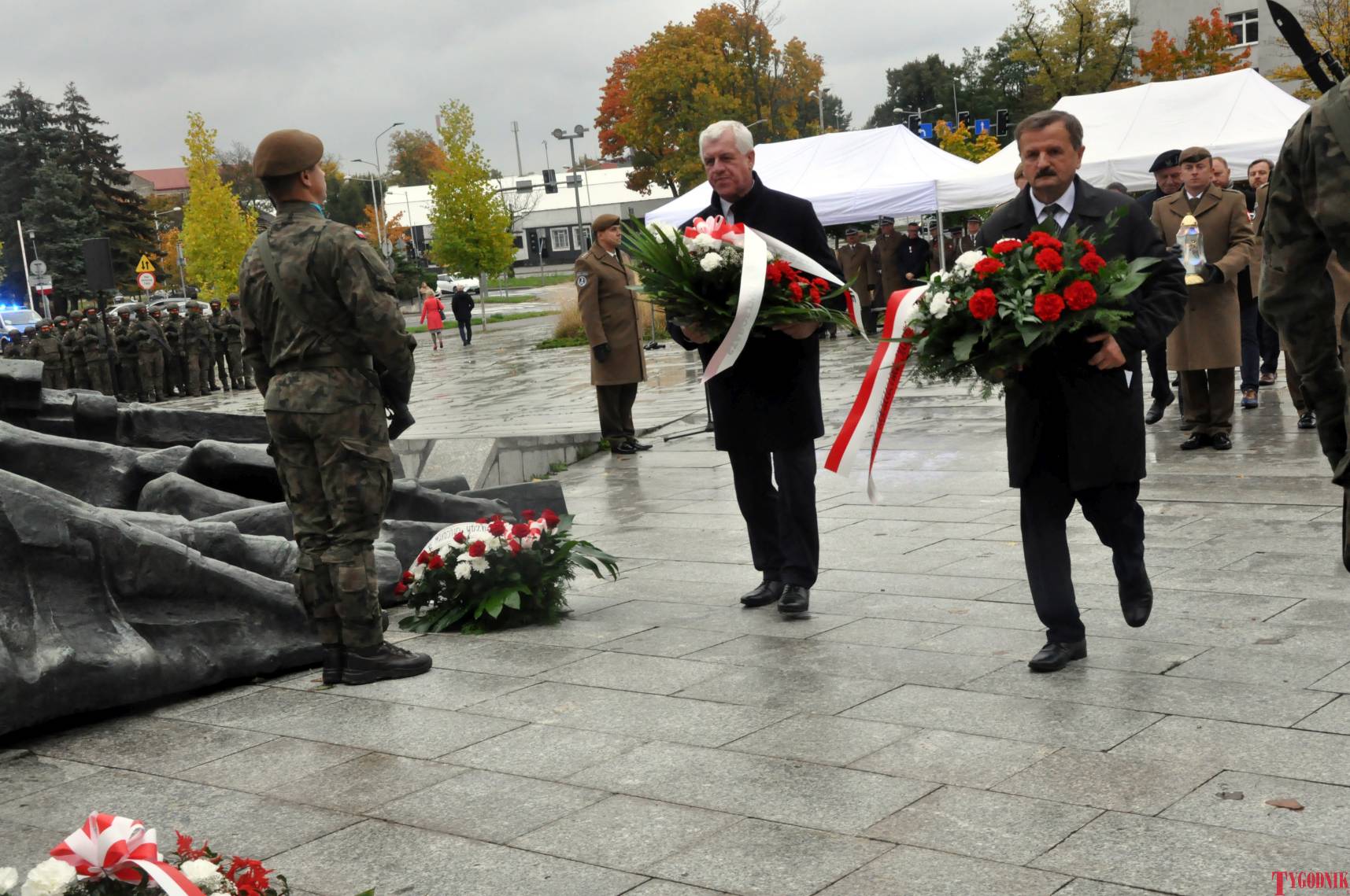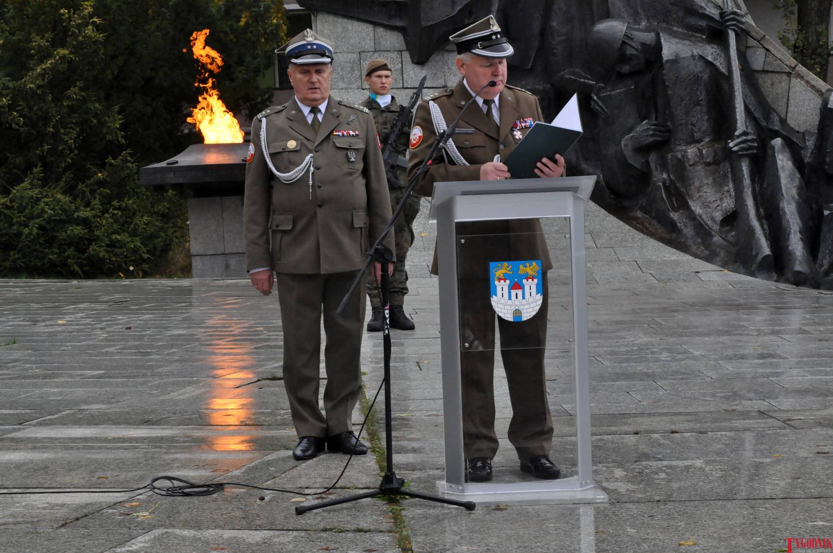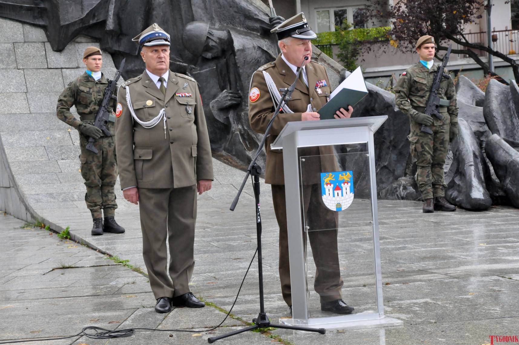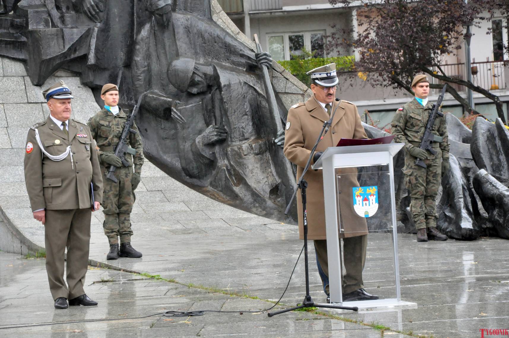 The ceremony began with military precision. The honor guard was provided by the 132nd Light Infantry Battalion from Częstochowa, part of the 13th Silesian Territorial Defense Brigade. The ceremony commander was Captain Krzysztof Brusznicki, and the narrator was Lt. Col. (ret.) Cezary Kubiak. The musical setting was provided by the Military Orchestra in Bytom under the baton of Captain Krystian Siwek.