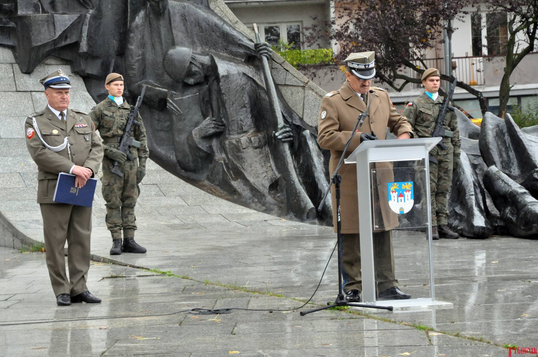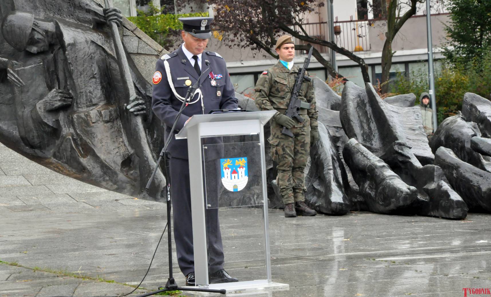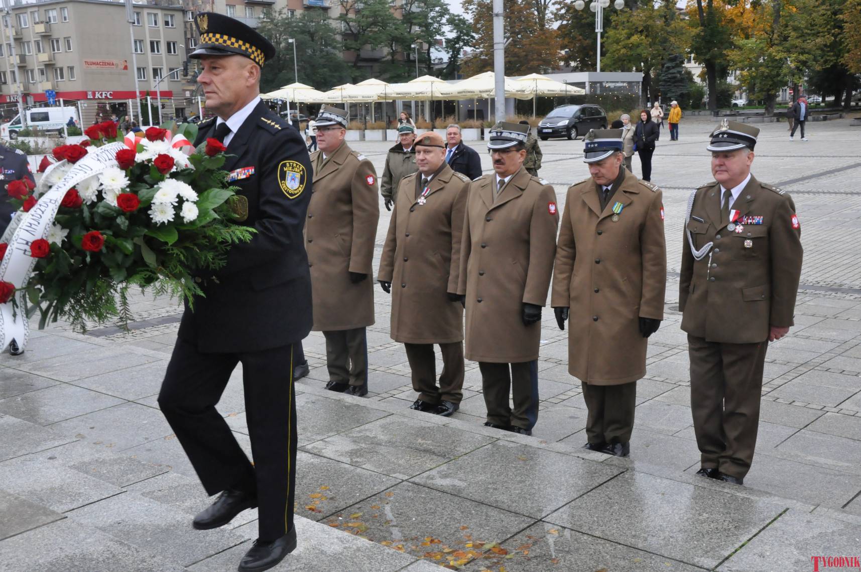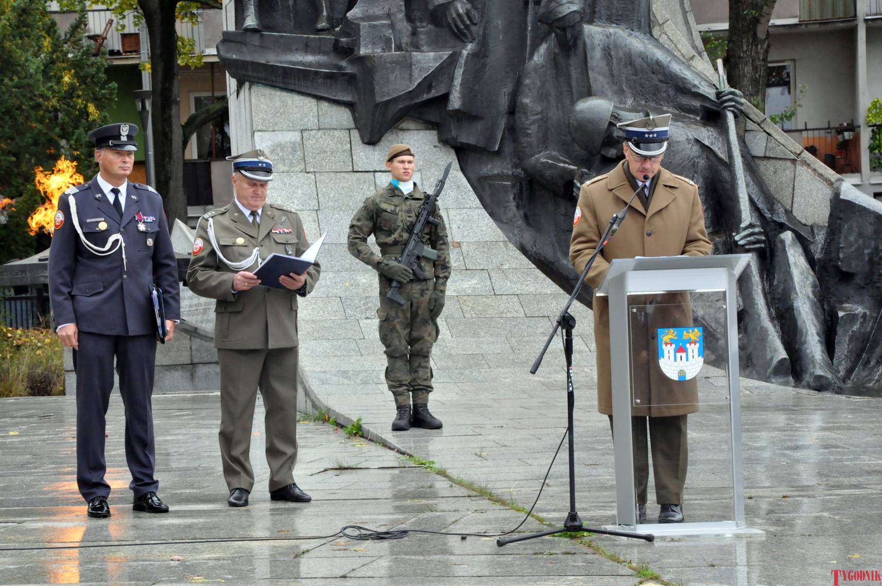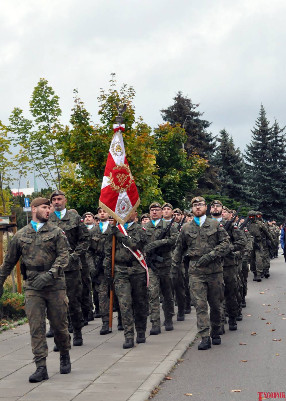 The ceremony began with military precision. The honor guard was provided by the 132nd Light Infantry Battalion from Częstochowa, part of the 13th Silesian Territorial Defense Brigade. The ceremony commander was Captain Krzysztof Brusznicki, and the narrator was Lt. Col. (ret.) Cezary Kubiak. The musical setting was provided by the Military Orchestra in Bytom under the baton of Captain Krystian Siwek.