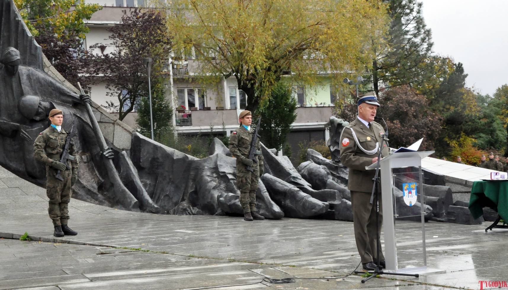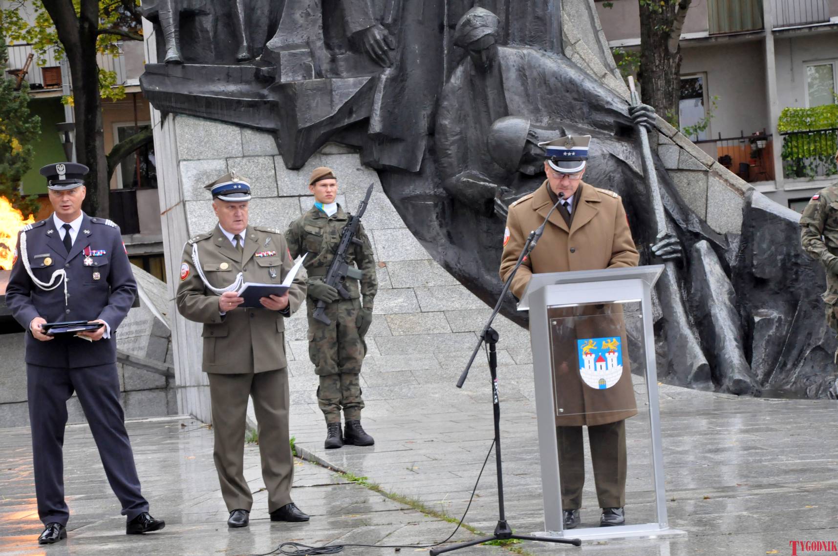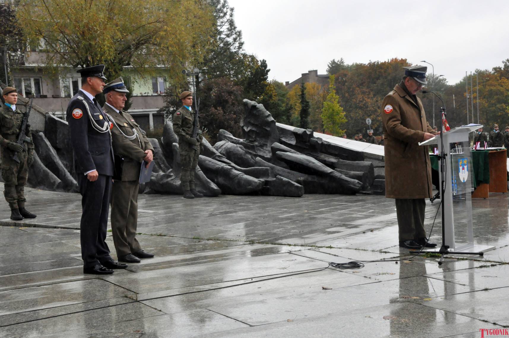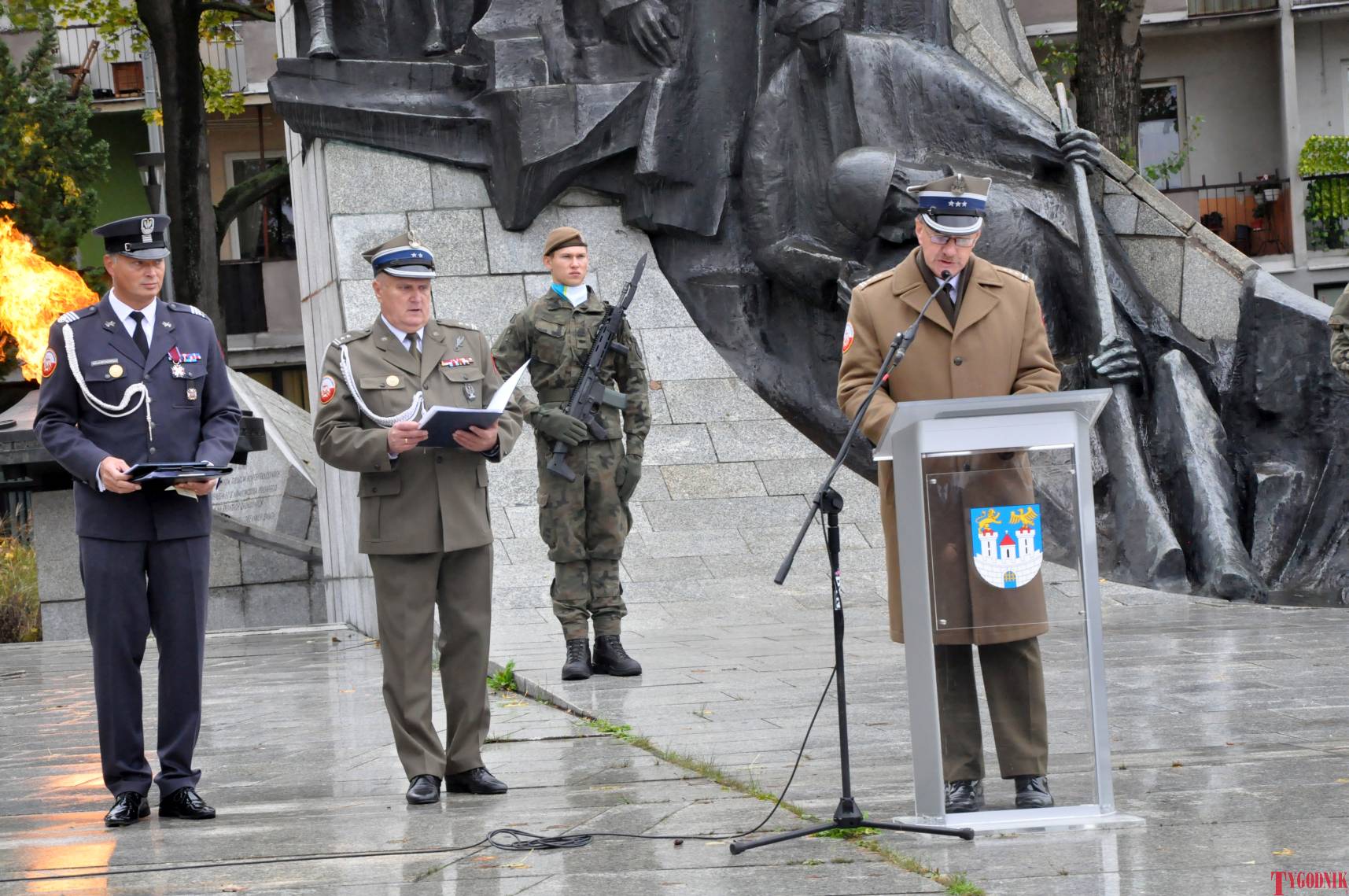 The ceremony began with military precision. The honor guard was provided by the 132nd Light Infantry Battalion from Częstochowa, part of the 13th Silesian Territorial Defense Brigade. The ceremony commander was Captain Krzysztof Brusznicki, and the narrator was Lt. Col. (ret.) Cezary Kubiak. The musical setting was provided by the Military Orchestra in Bytom under the baton of Captain Krystian Siwek.