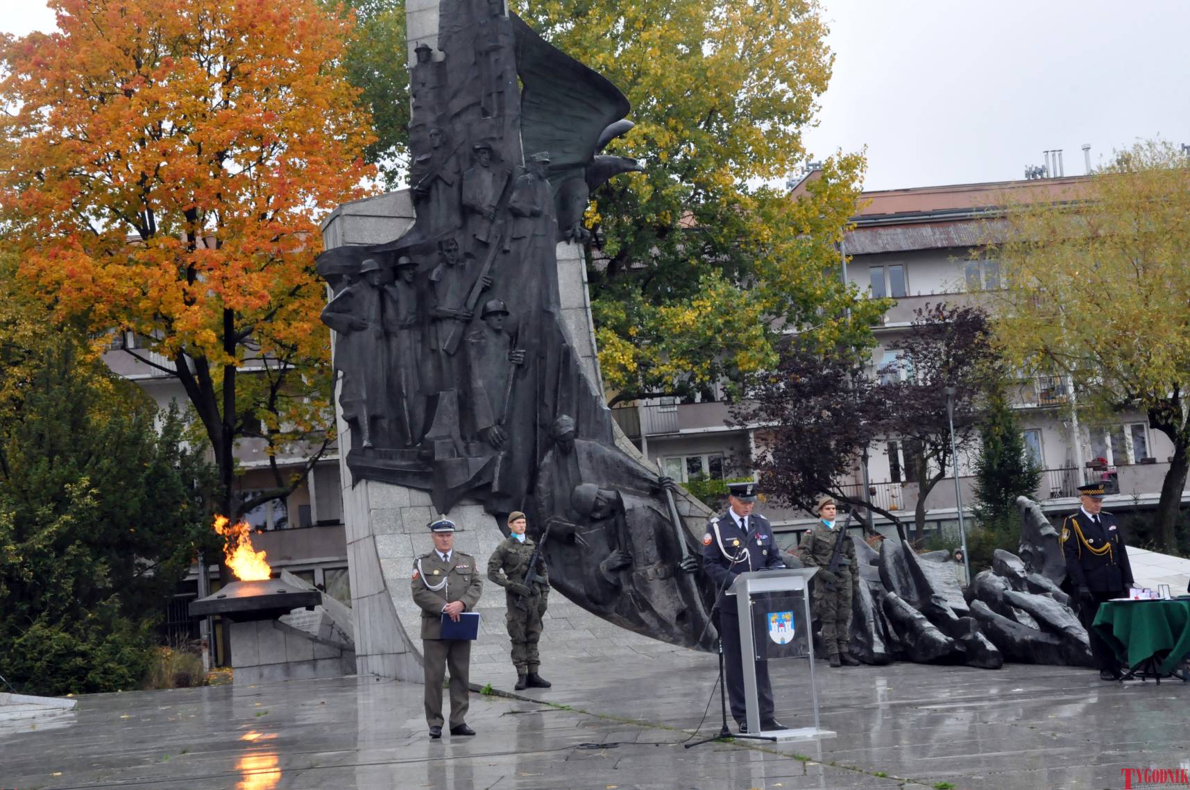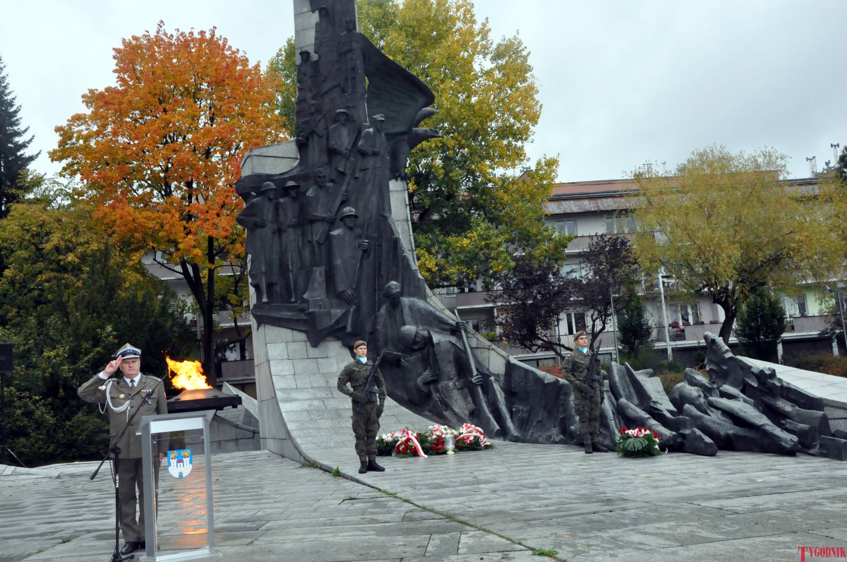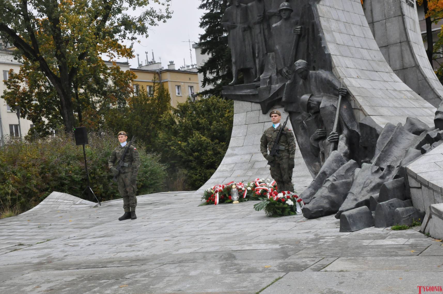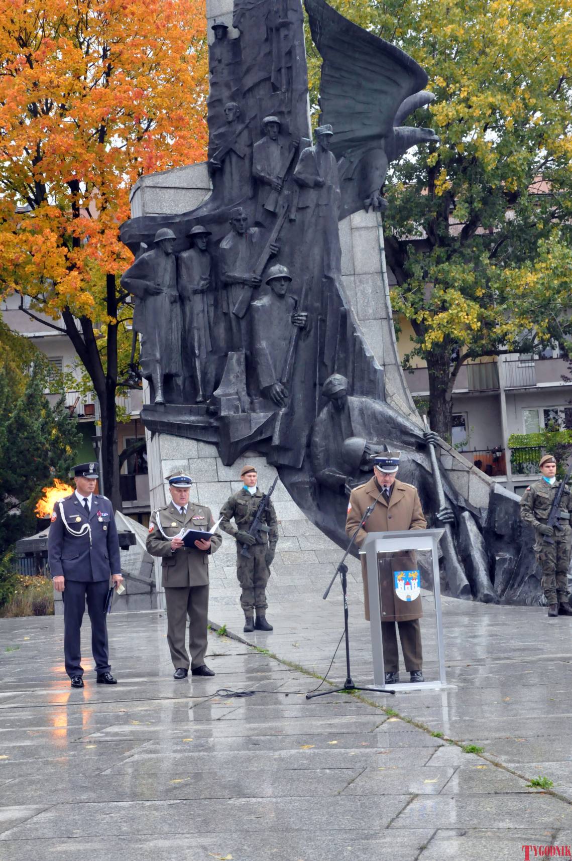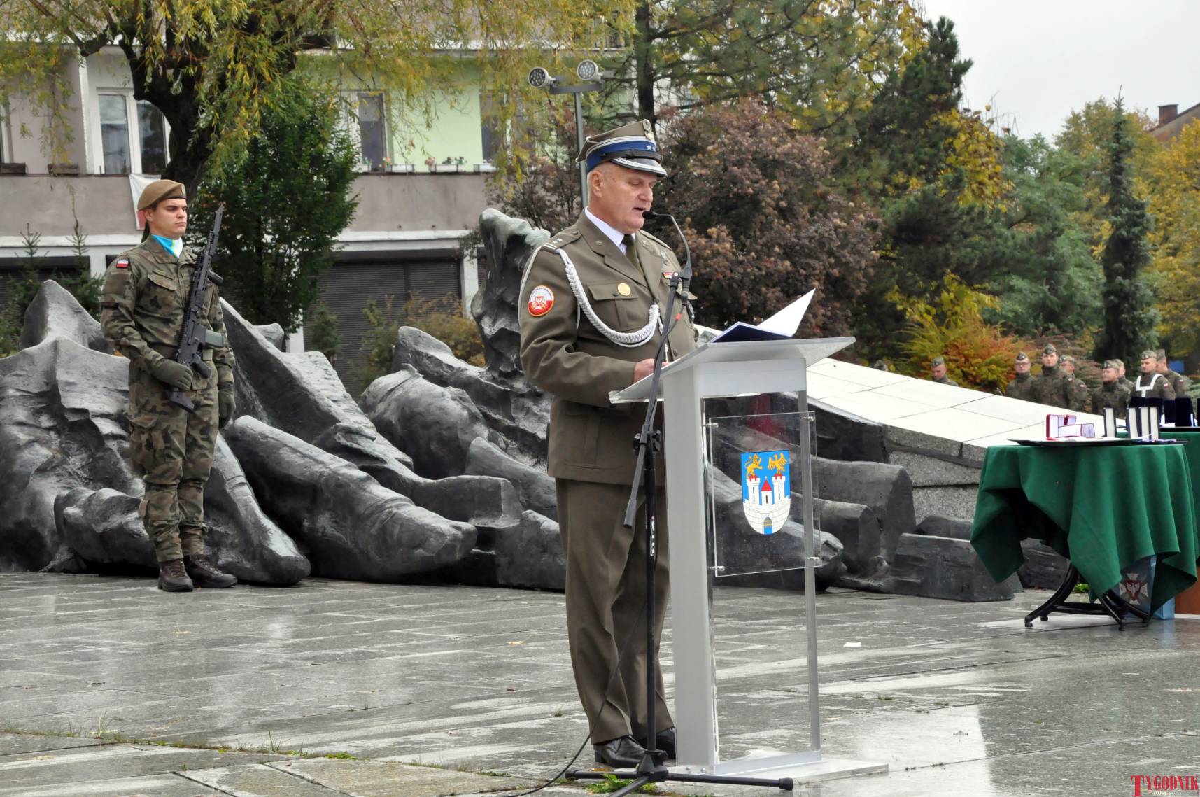 The ceremony began with military precision. The honor guard was provided by the 132nd Light Infantry Battalion from Częstochowa, part of the 13th Silesian Territorial Defense Brigade. The ceremony commander was Captain Krzysztof Brusznicki, and the narrator was Lt. Col. (ret.) Cezary Kubiak. The musical setting was provided by the Military Orchestra in Bytom under the baton of Captain Krystian Siwek.