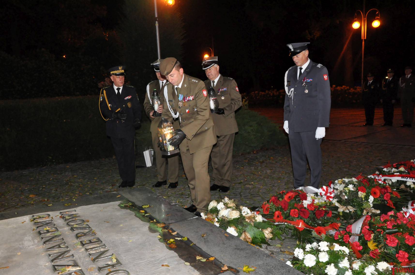 Apel Pamięci odczytał por. Adam Dłużniak, po czym kompania honorowa 132 batalionu lekkiej piechoty oddała trzykrotną salwę honorową. Następnie przystąpiono do złożenia kwiatów pod Pomnikiem Obrońców Ojczyzny. Jako pierwsza kwiaty złożyła delegacja Związku Oficerów Rezerwy RP wraz z gen. bryg. Cezarym Janowskim i gen. bryg. Piotrem Wańkiem. Po złożeniu kwiatów odegrano sygnał „Śpij Kolego” i pieśń reprezentacyjną Wojska Polskiego. Uroczystość na placu zakończyła defilada pododdziałów i uczniów klas mundurowych.