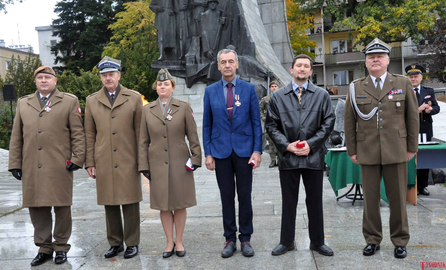 Ceremonia wręczenia odznaczeń była publicznym uznaniem dla zasług. W gronie odznaczonych znaleźli się: Srebrnym Medalem Za Zasługi Dla Obronności Kraju: plut. rez. Damian Liszczyk. Brązowymi Medalami Za Zasługi Dla Obronności Kraju: kpr. rez. Jacek Maduzia i Jarosław Olbrychowski. Medalem Komisji Edukacji Narodowej: Krzysztof Michał Wykowski. Srebrną Odznaką Honorową za Zasługi dla Województwa Śląskiego: Dariusz Sil i Krzysztof Buchajczuk. Medalem „Prawda i Pamięć”: gen. bryg. Cezary Janowski. Wśród odznaczonych znaleźli się także: płk Mariusz Łuszczyński,  Teresa Stroińska – Macińska i Piotr Korycki z 64 blp w Pomiechówku.