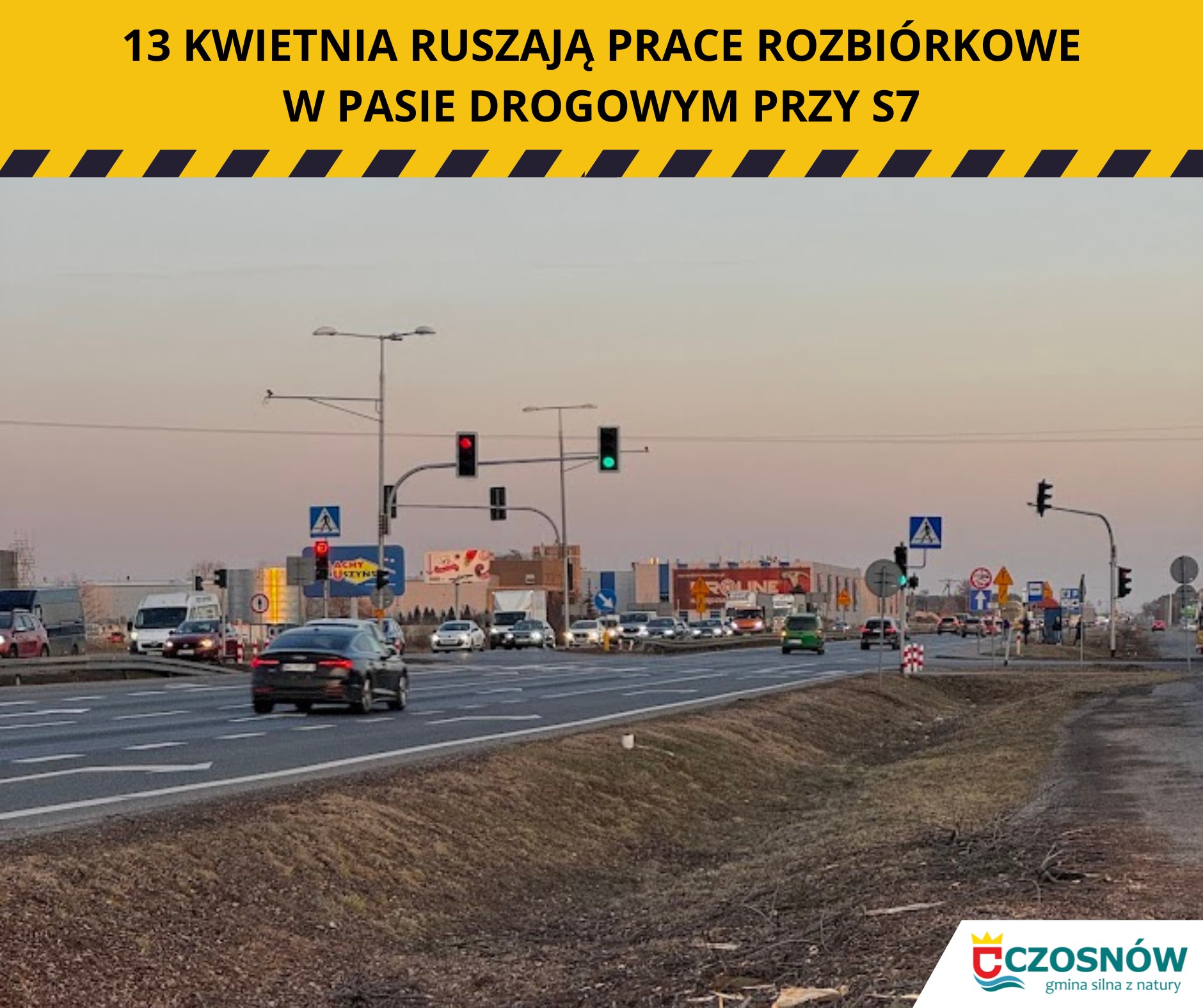 The Czosnów Municipality has informed residents that preparatory works for the S7 expressway section Czosnów–Kiełpin will start on 13 April 2026. Contractor Fabe Polska Sp. z o.o. will begin demolishing existing fences within the road corridor in eight localities: Cząstków Mazowiecki, Cząstków Polski, Czosnów, Izabelin Dziekanówek, Łomna, Łomna Las, Palmiry and Pieńków.