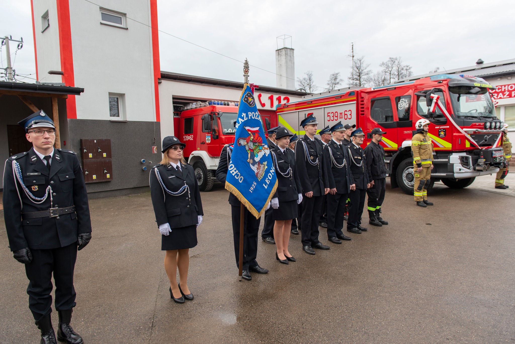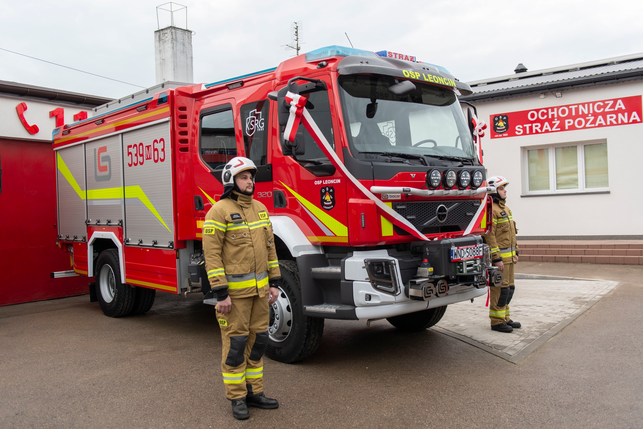 Uroczystość w Leoncinie zamknęła rok jubileuszu, w którym miejscowa Ochotnicza Straż Pożarna świętuje sto lat istnienia. Na placu przed remizą przekazano pierwszy w historii jednostki fabrycznie nowy średni samochód ratowniczo-gaśniczy Volvo FL 320 z napędem 4×4 o mocy 326 KM. Wydarzenie zgromadziło przedstawicieli władz, służb, duchowieństwa oraz mieszkańców.