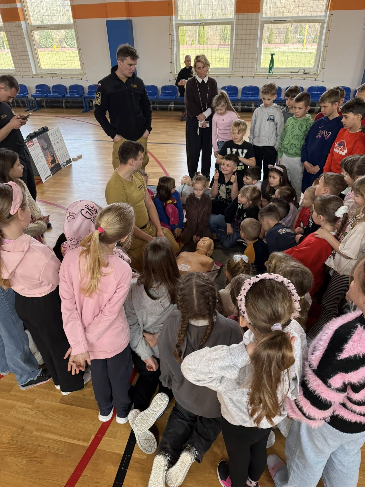 Students of the School and Preschool Complex in Kazuń Nowy took part in a meeting with firefighters from the State Fire Service. The lecture focused on safety and fire-related hazards. The event became an opportunity to learn about first aid and the work of rescue services.