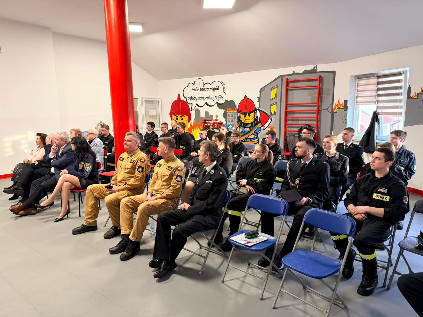 Invited guests attended the event, including Andrzej Hiszpański, President of the County Board of the Union of Volunteer Fire Departments of the Polish Commonwealth in Nowy Dwór Mazowiecki; Sebastian Sosiński, Mayor of Nowy Dwór Mazowiecki; Grażyna Nadrzycka, Chair of the City Council; Magdalena Biernacka, Starosta of Nowy Dwór County; and Zdzisław Szmytkowski, Member of the County Board.