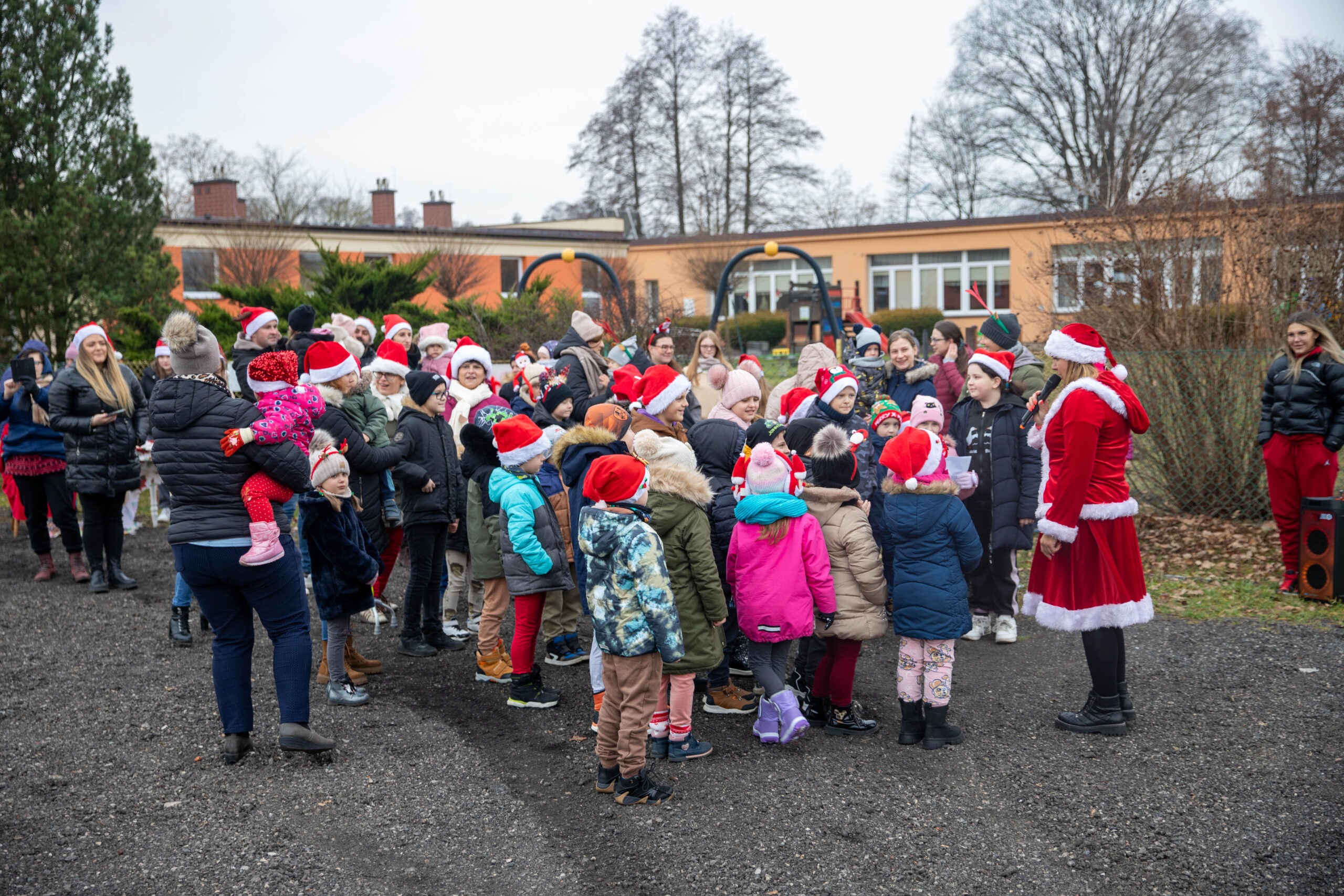 For the second time, a special Christmas bus brought joy and festive cheer to the villages surrounding Nasielsk. The magical vehicle, filled with warmth and holiday spirit, traveled through the area with Santa Claus, his charming companion Mrs. Claus, and two lively elves. Together, they invited children to join in dances, games, and singing holiday songs.