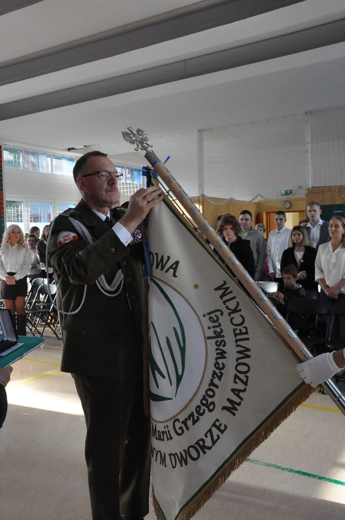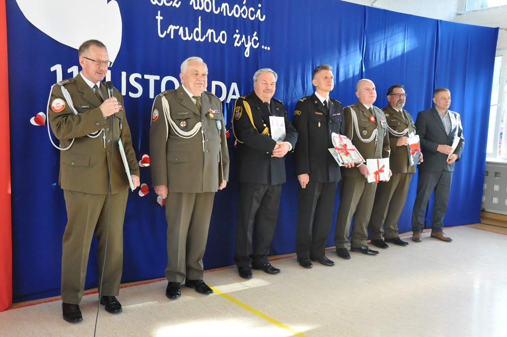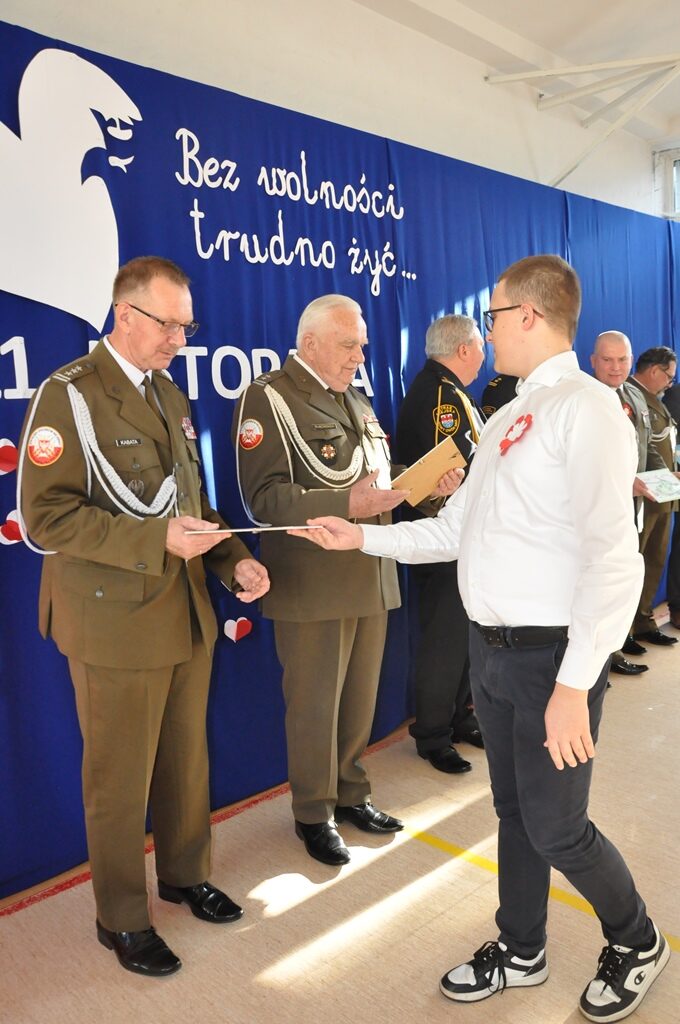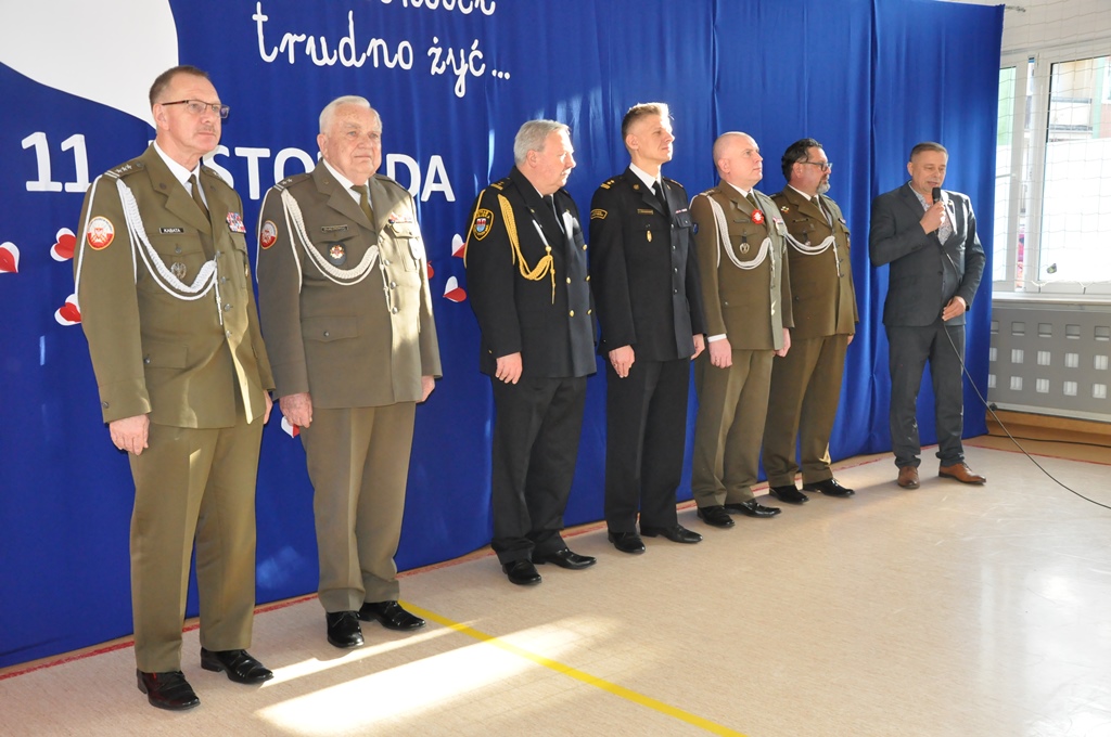 Płk rez. Alfred Kabata zabierając glos podziękował za współpracę i podkreślił, że dyrekcja i nauczyciele Zespołu Placówek Edukacyjnych wykazują duże zaangażowanie w kształtowaniu patriotycznych postaw młodzieży, która uczestniczy w przedsięwzięciach organizowanych w szkole, jak też przez Związek Oficerów Rezerwy RP.