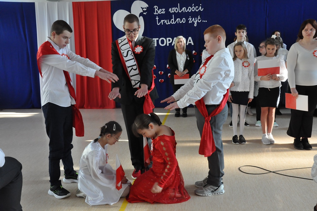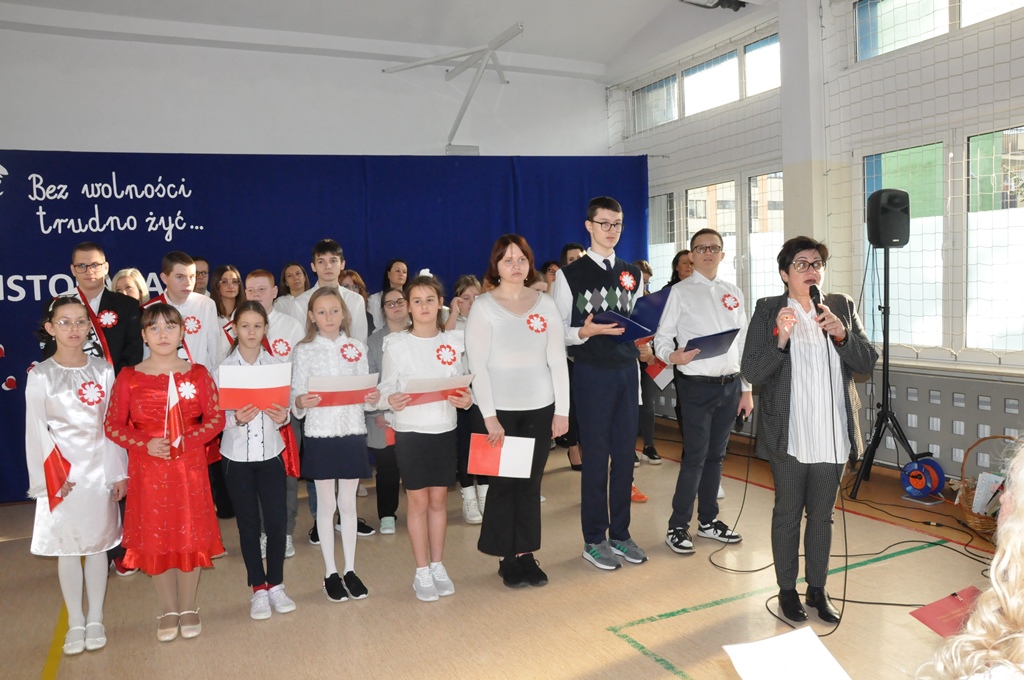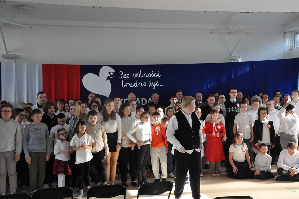 Program artystyczny w wykonaniu dzieci i młodzieży był niezwykle wzruszający, a uczniowie wierszem, tańcem i piosenką upamiętnili niezwykle ważny okres w historii naszego kraju.