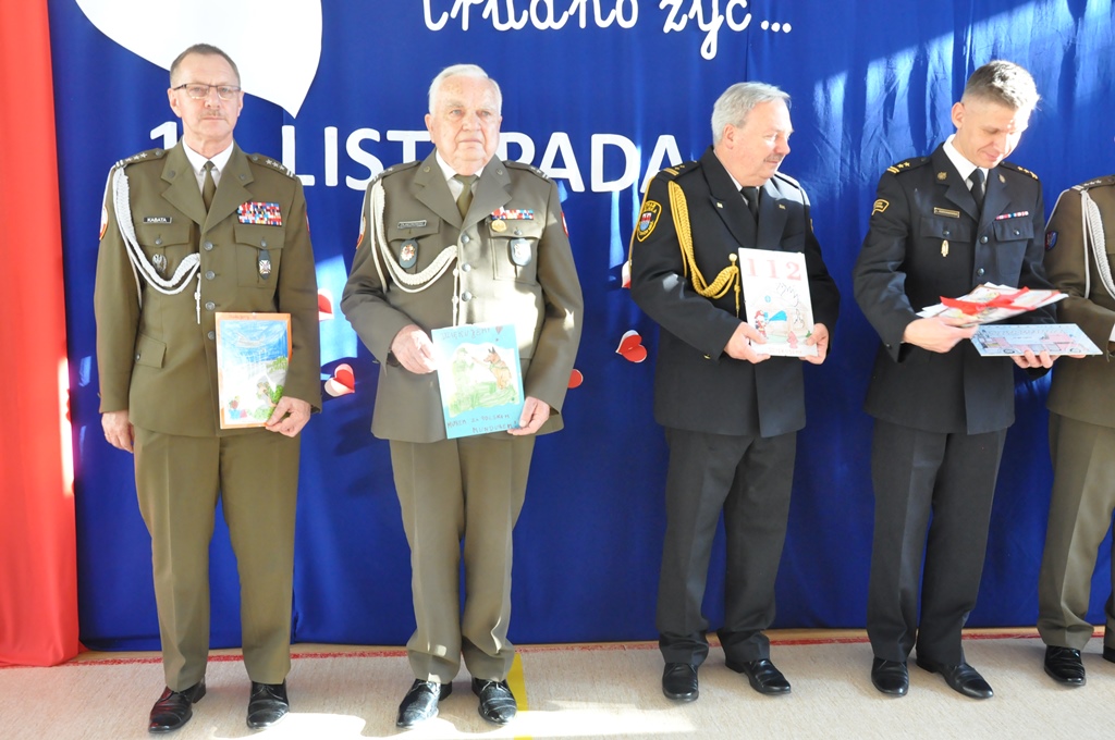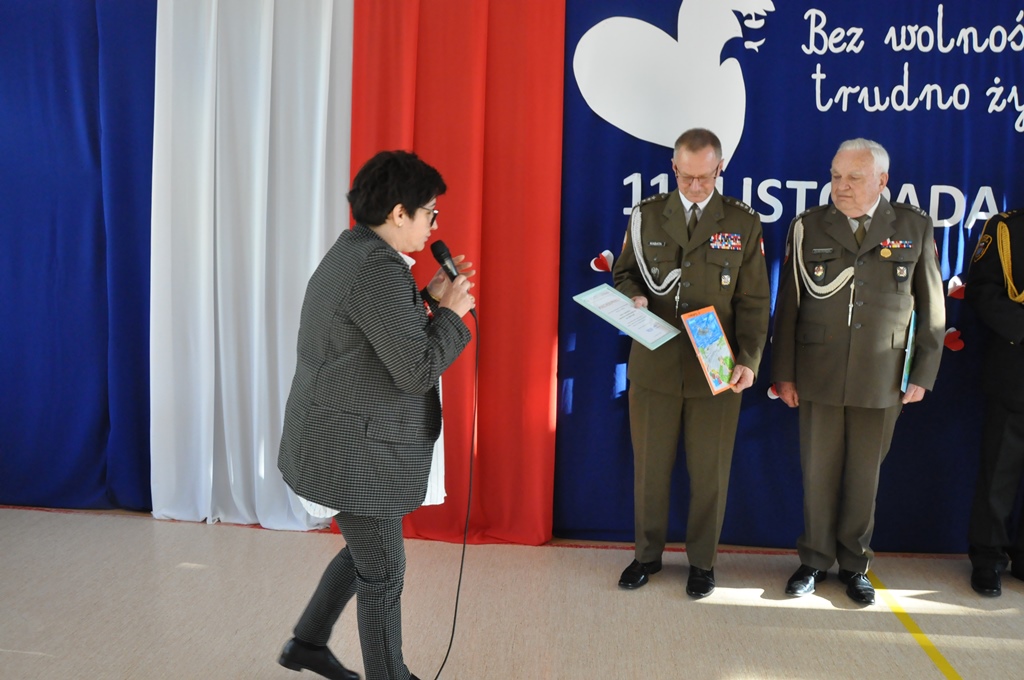 Podczas akademii zaproszeni goście otrzymali prace uczniów wykonane na szkolny konkurs „Murem za polskim mundurem” oraz dyplomy.