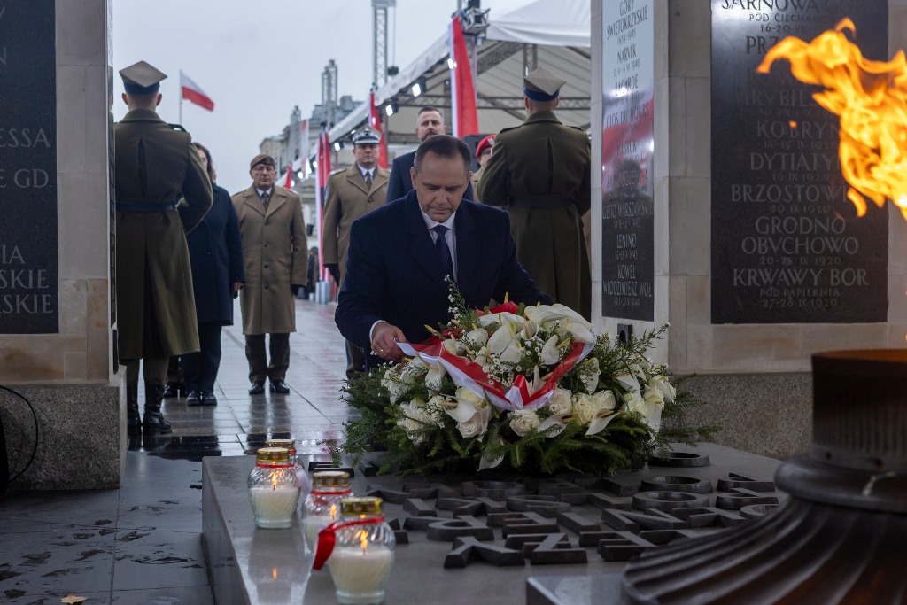 The ceremony was honored with 24 cannon salvos, a ceremonial changing of the guard, and performances by the Garrison Military Orchestra and the Representative Choir of the Polish Armed Forces Artistic Ensemble. The Founding Act of the Tomb of the Unknown Soldier was read by Major Patryk Koroś from the Representative Battalion of the Polish Armed Forces.