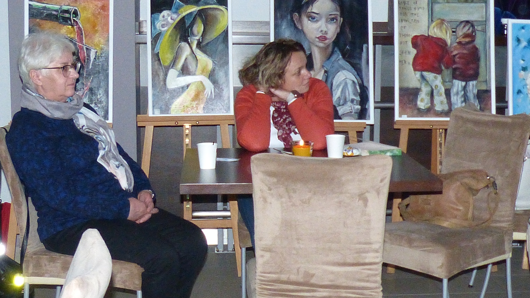 The evening was enhanced by the singing of Antonina Łaszczyk, who performed literary songs. „Mr. Grzegorz Sorbian, a city resident and painting enthusiast, beautified this meeting with a small but beautiful exhibition of his paintings of women and children,” add participants. It was also possible to purchase books published by the Literary Publishing House Białe Pióro with a personal dedication from the author.