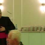 Po programie artystycznym, zaproszeni goście też mieli swoje pięć minut z mikrofonem, na podzielenie się ze swoich świątecznych myśli, złożenia życzeń i upominków dla Koła. I tylko ks.prałat, proboszcz Andrzej Kwiatkowski miał do wykonania największą rolę, skierowania do wszystkich słowa bożego, związanego z Narodzeniem Bożego Dzieciątka w betlejemskiej stajence, znaczenia Świąt w życiu człowieka i poświęcił biały opłatek, którym wszyscy wzajemnie wraz z życzeniami się podzielili.