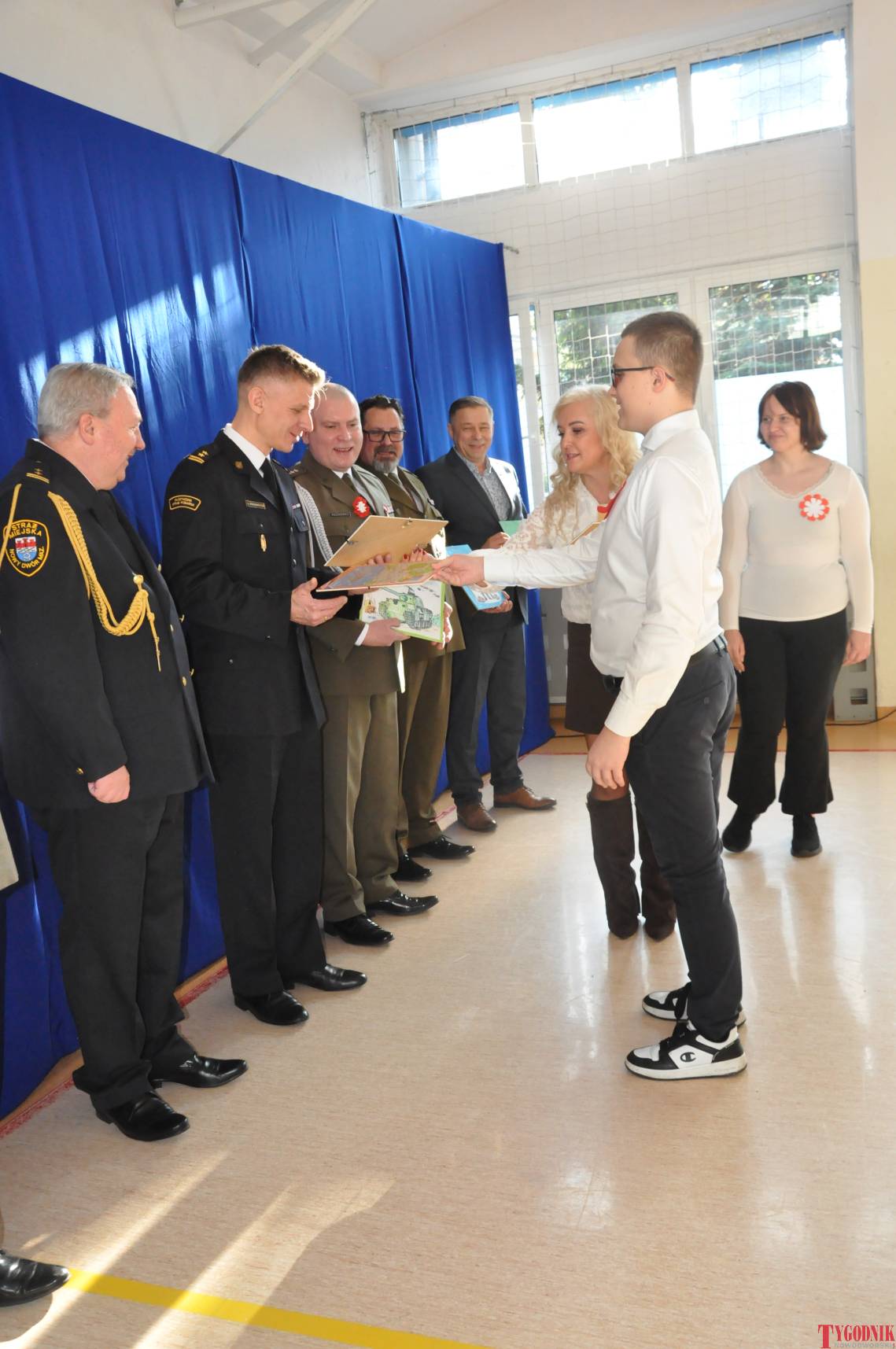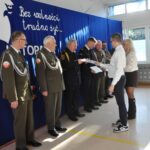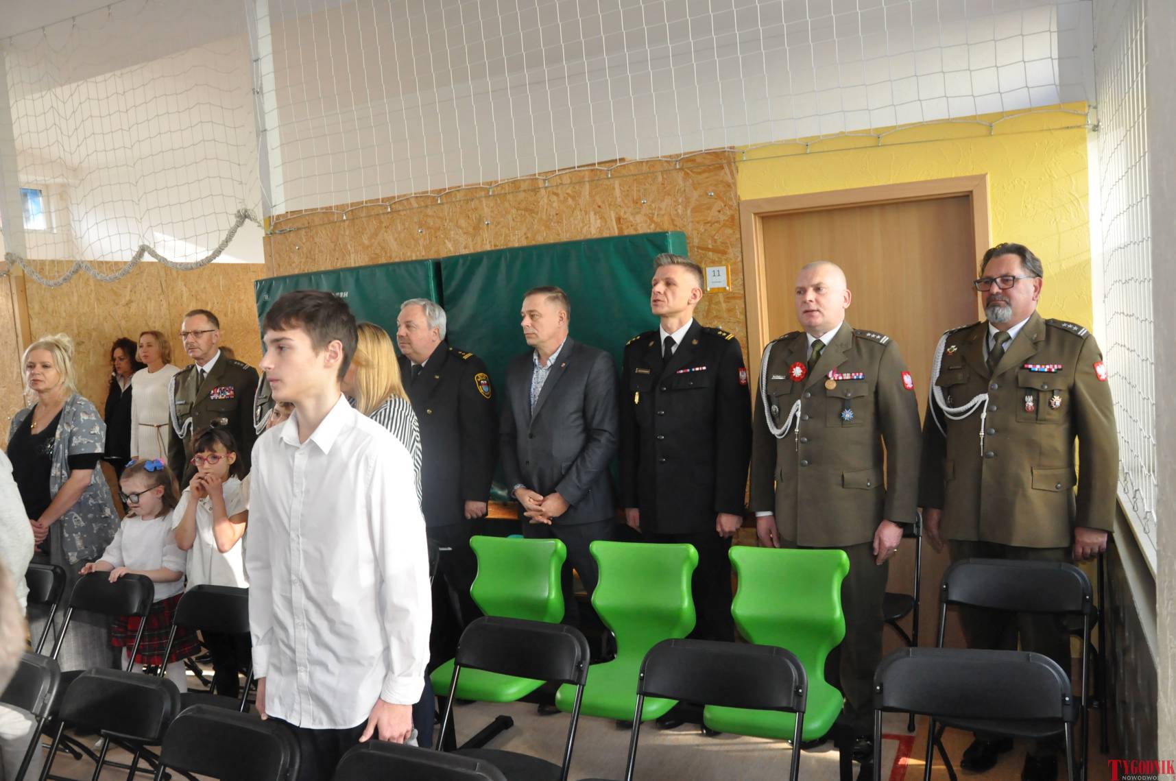 The delegation of the Association of Reserve Officers, which presented the medals, consisted of: ARO President Col. Alfred Kabata, ARO Vice-President of the Nowy Dwór Maz. branch Wiesława Karczmarczyk, and MG ARO member Lt. Col. Janusz Zajączkowski. The ceremony was observed by representatives of other military formations, firefighters, and Nowy Dwór deputy starost Andrzej Pacocha. After the official part, the audience watched a patriotic performance interspersed with songs performed by a choir of students and teachers.