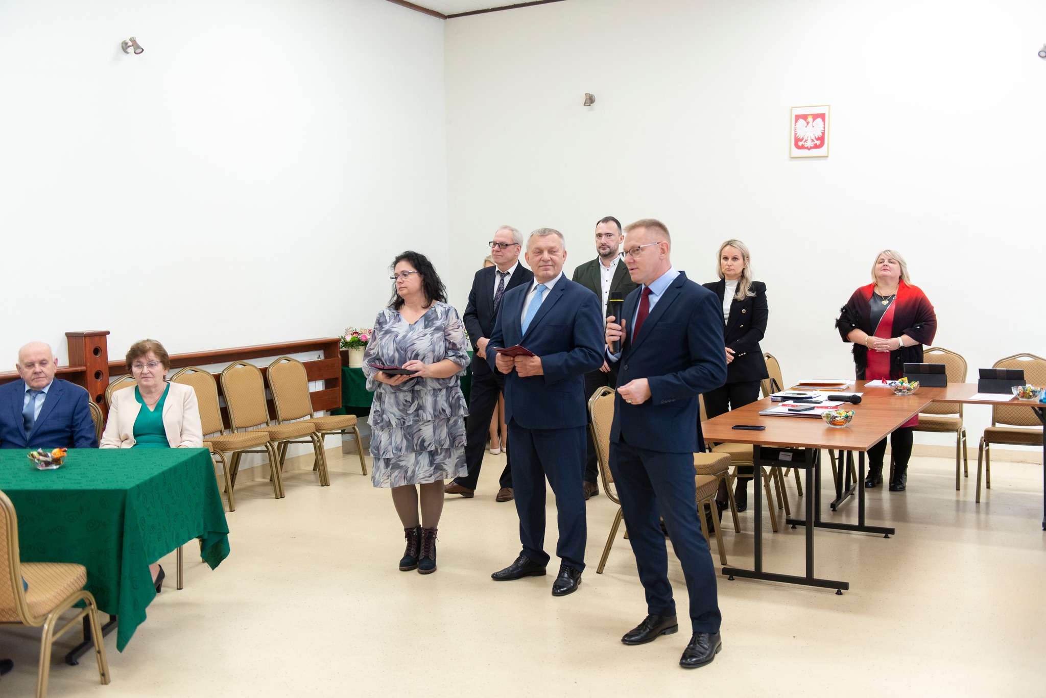 On Wednesday, October 29, 2025, the 26th Ordinary Session of the Leoncin Commune Council was held at the Village Hall in Leoncin. After adopting the agenda and minutes from the previous session, council members and village administrators participated in the ceremonial decoration of married couples celebrating their 50th wedding anniversary.