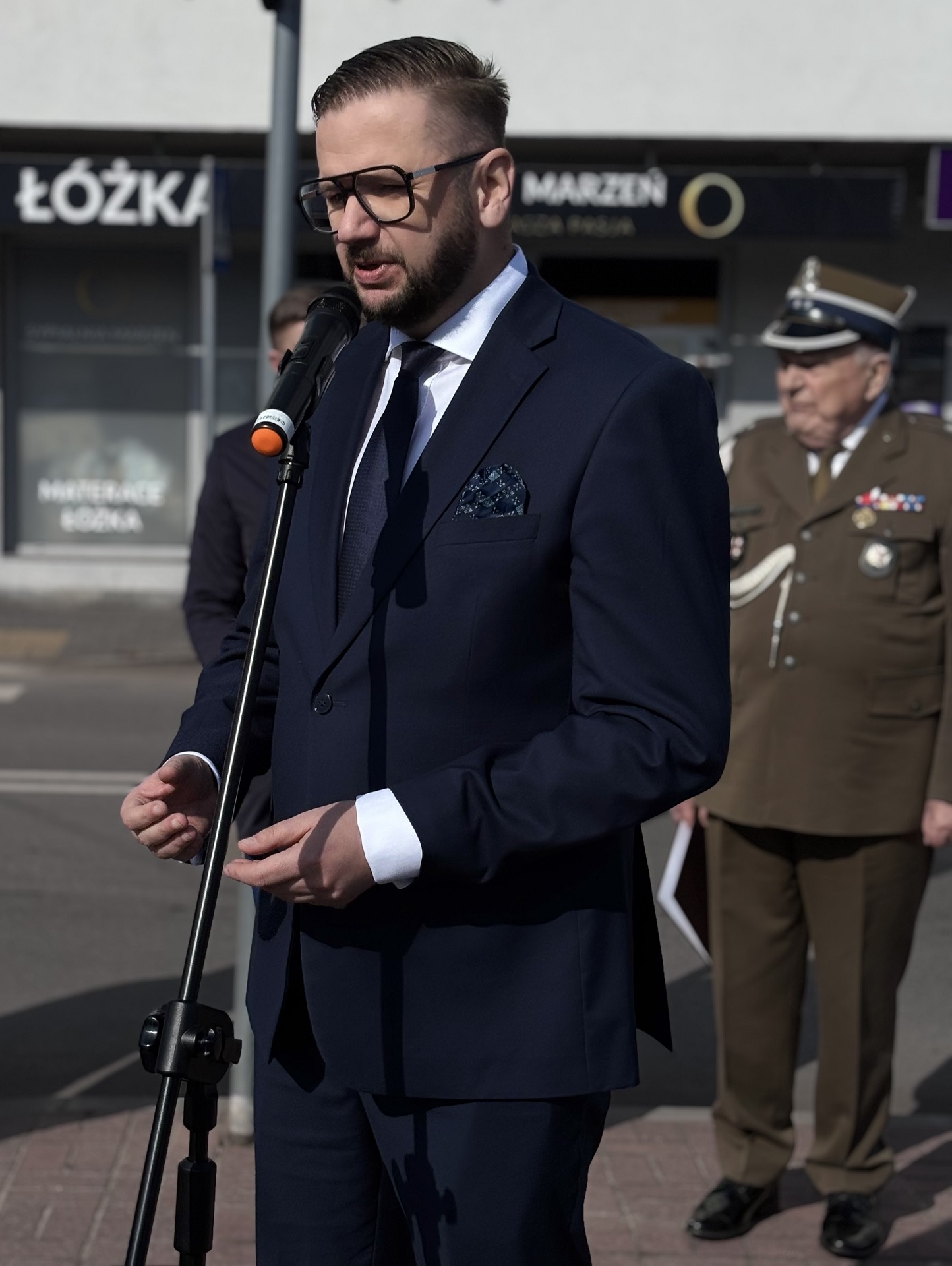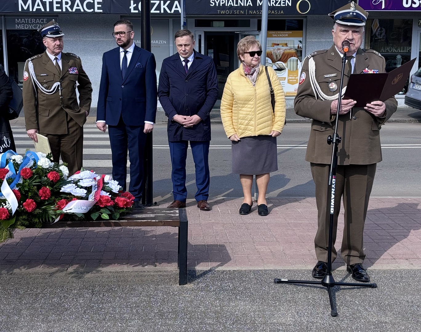 The ceremony began with the national anthem. Then, the master of ceremonies, Lieutenant Colonel (ret.) Janusz Zajączkowski, invited Colonel (res.) Alfred Kabata to speak. He delivered a ceremonial address: “The name day of Marshal Józef Piłsudski was celebrated ceremonially by the military, administration, and social and political organizations. The name day of Marshal Józef Piłsudski (March 19) was a kind of national holiday, celebrated as a day of Polish pride and strength. (…) Although not an official state holiday, it effectively became one. On this day, it was not the individual that mattered most, but the Marshal as a liberator, a hero, a man to whom everything is owed, especially independence. (…) Today, the celebrations of Marshal Piłsudski’s name day are an opportunity to reflect on his legacy and a source of inspiration to continue his work. His ideals, determination, and courage remain extremely important, and the celebration of his name day expresses our respect and gratitude for his contribution to the history of our homeland. (…) A growing sense of national pride, love for the homeland, and unconditional readiness to sacrifice in its name are the best name day gift from contemporary Poles to Marshal Józef Piłsudski.”