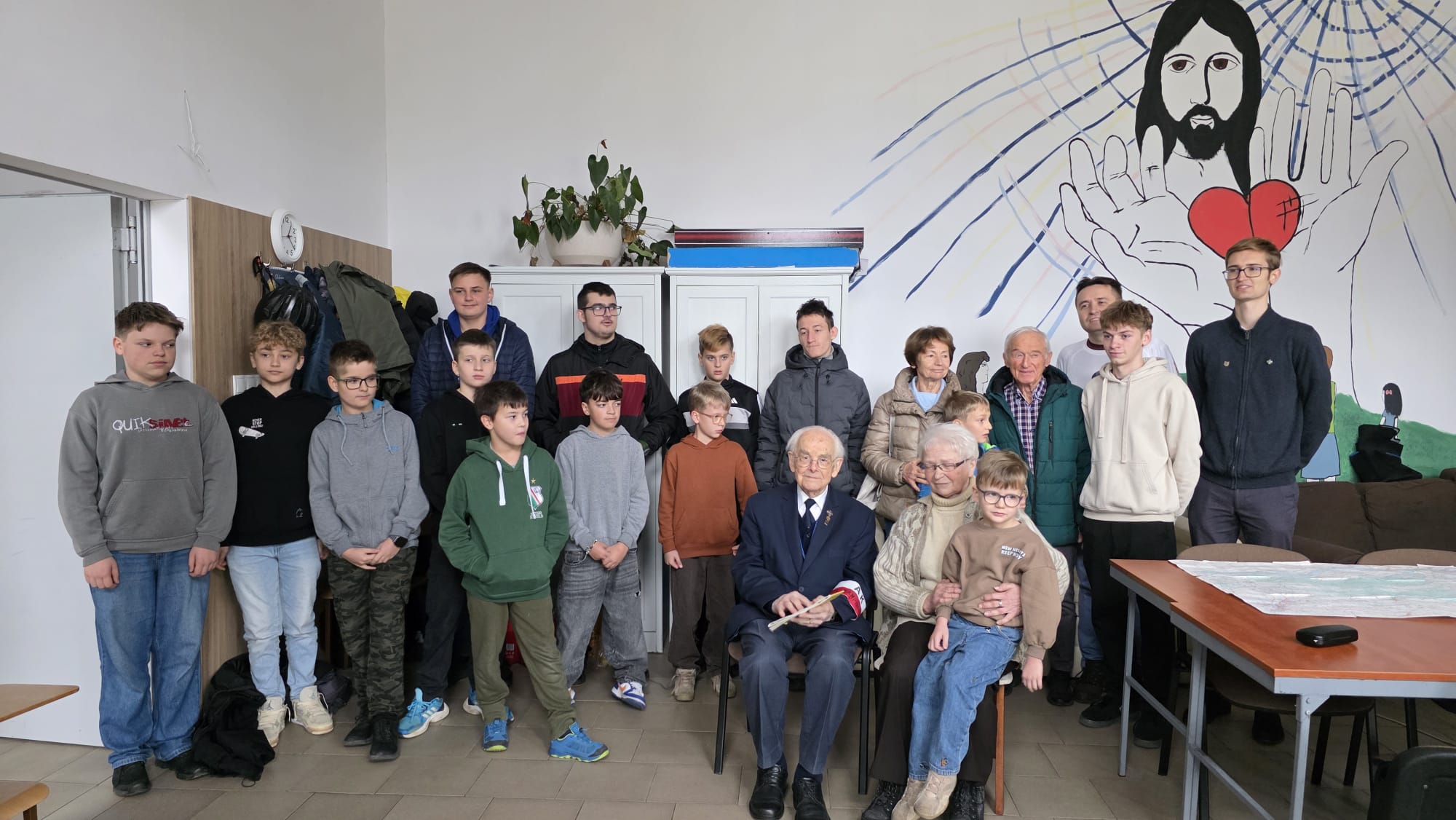 On November 8, at the Parish of the Mother of God, Queen of Families in Dziekanów Leśny, a historical meeting for parish youth groups was organized by the Patriotic Group. It was dedicated to the history of the Independent Kampinos Commonwealth and the „Kampinos” Group – a partisan unit of the Home Army that fought in the Kampinos Forest area in 1944. Participants could meet and talk with distinguished guests: Mrs. Urszula Przymus – the „youngest” courier during the Warsaw Uprising and President of the Memory Council of the Independent Kampinos Commonwealth, Mr. Witold Grzybowski – a 97-year-old partisan from Lt. Adolf Pilch’s unit, codenamed „Góra” and „Dolina”, a participant of the group’s march from the Nowogródek region and the fights of the „Kampinos” Group, and Mr. Tadeusz Kordek – a local community activist and expert on the history of Łomianki and Kampinos. – It was a unique opportunity to encounter the history of our immediate surroundings – it was summarized. The most numerous group of participants was the Liturgical Altar Service. During the meeting, fragments of a documentary film were also screened.